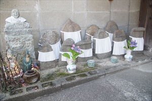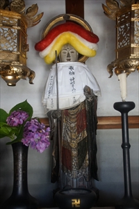 久御山町佐古(さこ)の称名寺(しょうみょう-じ、稱名寺)は、山号は護念山(ごねん-ざん)という。かつての末寺などから仏像が遷されている。 浄土宗知恩院派、本尊は阿弥陀如来を安置している。 ◆歴史年表 平安時代、大同年間(806-810)、創建されたという。かつて天台宗だった。(寺伝) 室町時代、1407年、地震により御堂・仏像が破壊された。(「法蓮寺堂再建記木札」) 1534年、西誉直往大徳の開基によるという。(『称名寺縁起』、1774) 安土・桃山時代、1574年、浄土宗に改宗された。(寺伝) ◆西誉直往大徳 室町時代後期の僧・西誉直往大徳(?-?)。詳細不明。男性。越前国(福井県)の生まれという。諸国で修業した。1534年、称名寺の開基になった。 ◆仏像 佐古の集落は、防御のための環濠(かんごう)集落であり、周囲をほぼ正方形の堀で囲んでいる。その中に称名寺、称名寺末寺・法蓮院(ほうれん-いん、宝蓮院)・観音堂、ほか善林寺、東明寺(とうみょう-じ)なども建てられていた。 後に廃寺になった法蓮院、観音堂、東明寺の本尊が客仏として遷された。諸仏は本堂に安置され、旧檀家により現在も護られている。 ◈本尊「阿弥陀如来坐像」(54.6㎝)(久御山町指定文化財)は、平安時代後期(10世紀末)作になる。京都周辺の地方作であり、日野(伏見区)より遷されたという。 平安時代後期の定朝様完成する少し前に造仏された。表情は童顔で両手は膝上で定印を結ぶ。足の表裏を結んで坐している。表現はやや無骨になっている。内刳は見られない。顔・手など主要部分に後補はない。頭から体にかけての主要部は、縦の一材から彫り出している。 木造、ヒノキ材、一本造、彫眼。 ◈「薬師如来坐像」(138/140㎝)(重文)は、佐古の法蓮院の本尊だった。(「法蓮寺堂再建記木札」、1728)。平安時代後期(12世紀後半)の作とみられている。 半丈六像であり、やや小振りで締まった頭部に、円満な表情をしている。右手は施無畏印、左手に薬壺を持つ。衣文の襞も流麗に表現されている。体躯は厚く頸は太い。顔をやや前に突き出し、「定朝様」の静的な表現から一歩踏み出している。林の西林寺の薬師如来像を手本にしたとみられている。後補は少なく保存も良い。 木造、ヒノキ材、寄木造、金箔押。 ◈「大日如来坐像」(89㎝)は、東明寺の旧仏という。平安時代作になる。胎蔵界の像で、繊細な表現が見られる。 木造、ヒノキ材、一本彫、漆箔。 ◆文化財 ◈「法蓮寺堂再建記木札」は、江戸時代中期、1728年のものになる。室町時代前期、応永14年(1407年)季春に地震により御堂・仏像が破壊されたと記されている。京都周辺で地震が発生したとみられている。 ◈「東明寺文書」(京都府登録有形文化財)は、佐古村にあった浄土宗の寺院で、近代、1868年に廃寺になった。本尊・什物は称名寺に移された。 東明寺旧蔵の文書群は、南北朝時代-江戸時代の142点になる。多くは寺の運営に関し、寺領についての中世文書は注目されている。久御山は、古くより洪水被災が多く、中世の在地文書が残るのは稀少になる。 ◆創建伝承 称名寺の創建時の伝承がある。 西誉直往大徳は、諸国で修業中に、日野(伏見区)の平山家に一泊した。同家先祖が平安時代後期-鎌倉時代前期の鴨長明(1155-1216)から譲られたとう飛鳥時代-奈良時代の行基(668-749)自作の像をもらい受けたという。 西誉は、像を担ぎ久御山旧佐古村の吉岡家に立ち寄った。像はこの地で動かなくなり、西誉は一宇を建てて像を安置した。それが、称名寺の始まりになったという。(『称名寺縁起』、1774) ◆末寺 称名寺の末寺に法蓮院(ほうれん-いん)、観音堂があった。観音堂は城南近在三十三所観音霊場17番札所になっていたとみられる。(法蓮院文書、1870) 近代、1871年1月にともに廃寺になった。(「京都府地誌」)。その後、仏像などは称名寺に遷された。 ❊年号は原則として西暦を、近代以前の月日は旧暦を使用しています。 ❊参考文献・資料 久御山町郷土史会の説明板、『京都府の地名』、『昭和京都名所図会 7 南山城』、ウェブサイト「久御山町」、「くみやま文化・歴史ガイド 久御山」、『京都の災害をめぐる』 ![]() ![]() ![]() ![]() ![]() ![]() |
