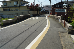 淀の「五番ノ橋(ごばんの-はし)」は納所(のうそ)川に架けられた石橋であり、五番橋とも呼ばれた。 ◆歴史年表 近代、1912年、6月、架橋された。 ◆五番ノ橋 石橋の五番ノ橋は、近代、1912年6月に、鳥羽街道(千本通)の納所(のうそ)川に南北方向に架けられた。川は淀古城の堀跡といわれている。 五番ノ橋の橋名について、鳥羽街道に沿う付近一帯には、一番町から九番町と呼ばれる地名が残っている。この番号は、江戸時代の朝鮮通信使のための番役などの割り振りだったという。その中の一つ五番町に由来しているとみられている。 石橋の構造は2層の積み方になり、上部は大きめの方形・長方形・五角形などの石を谷積みにする。下部はやや小ぶりの方形・長方形の石を煉瓦様に横積みしてアーチを作る。 橋長9 m、幅員6.5m。路線名は千本通。 ❊年号は原則として西暦を、近代以前の月日は旧暦を使用しています。 ❊参考文献・資料 ウェブサイト「京都市橋りょう長寿命化修繕計画-別冊資料京都市管理橋りょう一覧」、ウェブサイト「淀城跡 納所 水垂-京都市埋蔵文化財研究所」 ![]() ![]() ![]() ![]() ![]() ![]() ![]() ![]() |