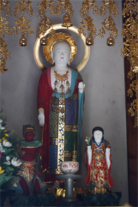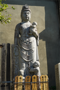 今出川通千本西入ルに護念寺(ごねん-じ)はある。中世には「京都尼寺五山」の一つに数えられた。山号は天照山、院号は慈応院という。 浄土宗、本尊は阿弥陀如来を安置する。 江戸時代、延命地蔵は、洛陽延命地蔵巡りの2番だった。 ◆歴史年表 鎌倉時代前期、天台宗・護念慈応が、父・源為義の菩提のために開創した。 南北朝時代、1346年、藤原利顕が堂宇を建立した。禅宗であり、「京都尼寺五山」の一つに数えられた。(『園太暦』『康富記』) また、鎌倉時代-室町時代、臨済宗の尼寺であり、「京都尼寺五山」の一つに数えられた。 室町時代、応仁・文明の乱(1467-1477)後、衰退する。 安土・桃山時代-江戸時代、慶長年間(1596-1615)/1596年後、重誉により浄土宗に改宗され再興される。(『坊目誌』) 1692年、当寺の延命地蔵は、洛陽延命地蔵巡りの2番だった。 1730年、旧6月、西陣大火で罹災する。 近代、1920年、現在の本堂が再建される。 現代、2018年、地蔵堂が修復された。 ◆護念 平安時代後期-鎌倉時代前期の真言宗の僧・護念(ごねん、1142-1200)。詳細不明。男性。幼名は慈應(応)。護念上人。父・源為義の第20子?。頼朝・義経の叔父。幼くして仏門に入り、比叡山にのぼる。1159年、平治の乱以後、平家に追われ比叡山から下りた。日頃より帰依した比叡山無動寺の最澄請来の不動明王「御頭」のみを笈(きゅう)に納め、諸国を巡錫した。1185年、越後国(新潟県)新発田に真言宗醍醐派の菅谷寺(かんこく-じ)を建立したという。1195年、旧10月、鎌倉を訪れ頼朝に会う。祈祷により頼朝の大姫の病を回復させたという。58歳。 ◆源 為義 平安時代後期の武将・源 為義(みなもと-の-ためよし、1096-1156)。男性。通称は六条堀河に住み六条判官。父・源義親(よしちか)の4男。源義家の孫。1108年、父は乱行により平正盛に追討される。為義は、叔父・源義忠の養子になる。悪左府(あくさふ)・藤原頼長の従者になった。1109年、義忠が殺害され、朝命により義家の弟・義綱一族を追討し、その功で左衛門尉に任官した。祖父・義家を継ぎ河内源氏の当主になる。白河法皇(第72代)から第74代・鳥羽天皇の警護に起用される。1135年、瀬戸内海の海賊追討使の候補になるも、鳥羽上皇は為義を嫌い、平忠盛を任命した。為義は、次第に摂関家・藤原忠実に接近する。1143年、藤原頼長に臣従した。警護・家人取締り・興福寺悪僧の処罰・荘園の管理などを一族と共に担う。1146年、検非違使になった。1150年、忠実が長男・忠通を義絶した際に、為義は東三条殿の警備に当たる。1154年/1155年、為義の子・為朝の九州での乱行により解官された。家督を長子・義朝に譲る。1156年、保元の乱で崇徳上皇(第75代)・藤原頼長方に子・頼賢・為朝らと加わる。第77代・後白河天皇方に付いた義朝と敵対した。夜襲の献策を頼長に退けられ敗北した。潜伏後、延暦寺で出家し義朝への助命嘆願も及ばず、旧7月、義朝により5人の子らと船岡山で斬首される。61歳。 ◆藤原 利顕 南北朝時代の武将・藤原利顕(?-?)。詳細不明。男性。能登守。1346年、京都・護念寺の堂宇を建立したという。 ◆重誉 安土・桃山時代の浄土宗の僧・重誉(?-?)。詳細不明。男性。重誉上人、十誉。慶長年間(1596-1615)/1596年後、京都・護念寺を浄土宗に改宗し再興する。 ◆疋田 芳沼 近代の日本画家・疋田 芳沼(ひきた-ほうしょう、1878-1934)。男性。名は熊吉 。愛知県の生まれ。田中月耕・菊池芳文につく。1907年、第1回文展初入選し、以後文展・帝展に出品した。1931年、帝展に推薦される。愛知県・安久美神戸(あくみ-かんべ)神明社に大額が残る。57歳。 四条派、森田華弘の師。 ◆国井 応文 江戸時代後期-近代の日本画家・国井 応文(くにい-おうぶん、1833-1887)。男性。字は仲質、別号は彬々斎。京都の生まれ。父・医者、母・円山応挙の孫、円山応震の妹。円山応立に師事し、1875年、応立没後は一門の後継者になった。1855年、竣工した内裏造営で小座敷に墨画山水の襖絵を描く。1866年頃、中島来章、塩川文麟らと如雲社を設立した。1880年、京都府画学校に出仕した。京都博覧会でも受賞する。1884年、第2回内国絵画共進会に「桂御所御庭図」「花鳥」を出品し褒状を受けた。1886年、幸野楳嶺らが設立した京都青年絵画研究会の展覧会で審査員を務める。55歳。 円山派、山水花鳥画に優れた。 ◆仏像 ◈本堂安置の本尊「阿弥陀如来」は、上品下生の印を結ぶ。胸に卍字跡がある。 ◈地蔵堂の中央に「延命地蔵」、脇侍右に「掌善童子」、左に「掌悪童子」が安置されている。いずれも現代、2018年に修復されている。 延命地蔵は、安土・桃山時代-江戸時代前期の慶長年間(1596-1615)以前より安置されていたとみられている。江戸時代前期、1692年の「洛陽延命地蔵巡り」では順道は2番だった。因みに1番は東光寺(北野御前通)、3番は上善寺(鞍馬口)、4番は西昌寺(寺町椹[さわら]町)、5番は万年寺(五条下ル寺町)、6番は長圓寺(松原大宮西入ル)だった。 江戸時代末、摺袈裟(すりけさ)地蔵信仰が盛んになり、この