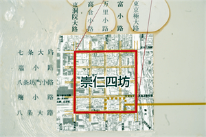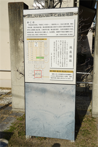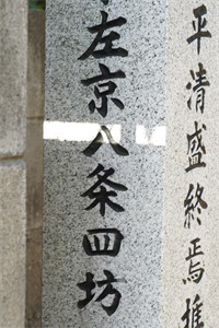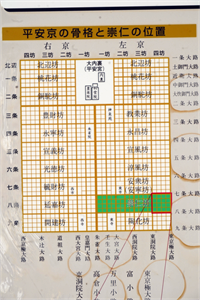 ![]() 「崇仁の名の由来と銭座場跡の碑」 ![]() 平安京の条坊、「八条四坊」は右下の赤枠部分、碑の説明板より ![]() 「崇仁四坊」、碑の説明板より ![]() 碑のすぐ北にある「左京八条四坊」の石標 ![]() 「東之町」の町名板 |