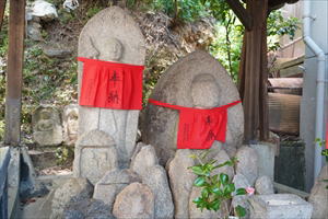 三条通、蹴上の東側石段上に、蹴上大日堂(けあげ-だいにち-どう)と呼ばれる小堂がある。地蔵菩薩などが祀られている。 ◆歴史年表 詳細は不明。 ◆石像 ◈右の「大日如来」(91㎝)とされているものは、薬師如来像ともいう。鎌倉時代後期の作になる。舟形光背(1.33m)を背負い、蓮華座に結跏趺坐する。厚肉彫りであり、右手は胸まで挙げた施無畏印、左手は膝前に垂らし、薬指と中指を稔じているともいう。薬壺を持たない如来の印ともいう。花崗岩製。 ◈左の「地蔵菩薩立像」は、江戸時代前期、「延宝六年(1678年)」作の銘がある。舟形光背を背負い、右手に錫杖を持つ。 ◈周囲に「小石仏」があり、室町時代作ともいう。 ❊年号は原則として西暦を、近代以前の月日は旧暦を使用しています。 ❊参考文献・資料 ウェブサイト「東海道石仏巡り」 ![]() ![]() ![]() ![]() ![]() |