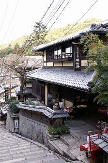 三年坂(さんねん-ざか)は、産寧坂(さんねい-ざか)ともいわれている。八坂から清水寺に通じる急な石畳の坂道(100m)であり、清水寺に通じる清水坂とつながる。付近の地勢は、清水寺の上より流れる轟川が削り出したという。 ◆歴史年表 平安時代、794年、この地は、平安京遷都以前から開けた土地だったという。 奈良時代、730年、清水寺仁王門前に第45代・聖武天皇光明皇后により泰産寺(たいさんじ)が創建された。皇后は、女帝の第46代・第48代・孝謙天皇を産んだ際に、天照大神により授かったという1寸8分(54㎝)の子安観音を子安塔に安置した。以来、産婦が参詣に訪れるようになったという。 1179年、延暦寺下の祇園感神院(現八坂神社)との争いで、清水寺の伽藍などが焼失する。寺は、奈良・興福寺、南都の末寺であり、北嶺の比叡山延暦寺と対峙した。三年坂も戦場になり、境界争いの場になった。 中世(鎌倉時代-室町時代)、この付近は「三本卒塔婆」と呼ばれていた。墓地を意味していた。 室町時代、応仁・文明の乱(1467-1477)により被災した。その後、社寺などが復興され、門前町として栄える。 江戸時代、1685年、「産寧坂」の名が記されている。(『京童』『京羽二重』) 寛永年間(1624-1643)、子安塔は再建され、当初は清水坂を上り詰めた右手にあったという。豊臣秀吉の正妻・北政所も、子の誕生を念じて高台寺から清水寺に参詣したという。「三年坂」は「産念坂」から転訛したともいう。 近代以降、一帯は住宅地として再開発された。 1911年、子安塔は清水寺境内南の現在地に移された。 1915年、「再念坂」の名も記されている。(『京都坊目誌』) 現代、1976年、門前町は国の「重要伝統的建造物群保存地区」に指定された。 ◆光明皇后 奈良時代の光明皇后(こうみょう-こうごう、701-760)。女性。名は安宿媛(あすかべひめ)、光明子、尊号は中台天平応真仁正皇太后(ちゅうだいてんぴょうおうしんにんしょうこうたいこう)。父は藤原不比等(ふじわら-の-ふひと)、母は県犬養三千代(たちばな-の-みちよ)の3女。716年、16歳で首(おびと)皇子(第45代・聖武天皇)妃になる。718年、娘・阿倍内親王(後の第46代・孝謙天皇・第48代・称徳天皇)を産む。724年、聖武天皇の即位により夫人になる。727年、某王(基王とも)を産み、皇太子に立てた。728年、某王が夭逝する。729年、藤原氏による長屋王打倒の長屋王の変後、臣下から初めて皇后になり、「しりへ(後)の政」を行う。父より財、邸宅を継ぎ、邸内に皇后宮職(こうごうぐうしき)を設置く。730年、仏教を尊び、悲田院、施薬院を設立し、病人・孤児を救済した。国分寺、国分尼寺、東大寺の創建を天皇に勧めた。749年、第46代・孝謙天皇の即位に伴い皇太后になる。皇后宮職を拡充し、紫微中台(しびちゅうだい) を設置した。甥・藤原仲麻呂を紫微中台長官に任じて国政を掌握した。754年、大仏殿前で唐僧鑑真より受戒した。756年、聖武天皇没後に、遺愛品を東大寺大仏に献じ、正倉院宝物の起源になる。正倉院に王羲之の書『楽毅(がっき)論』の書写がある。60歳。 陵は佐保山東陵(さほやまのひがしのみささぎ)(奈良市)になる。 ◆三年坂 平安時代前期、808年以前、清水寺の創建前に、仁王門前に泰産寺(たいさん-じ)という寺があった。奈良時代、第45代・聖武天皇光明皇后(701-760)は女帝の第46代・第48代・孝謙天皇(718-770)を産んだ際に、天照大神により授かった一寸八分の子安観音を子安塔に安置した。以来、産婦は安産祈願に参詣した。産寧坂の名の由来は、子安信仰に関わりがあるともいう。お産安泰の「子安さん」信仰があり、産寧(お産を安寧にする意)の語源ともいう。 三年坂は、平安時代前期、大同3年(808年)に坂が開かれたため三年坂と名づけられたともいう。 三年坂で転ぶと3年以内に死ぬという伝承があった。坂の途中に腰下げ用の小さな瓢箪を売る家があった。この瓢箪を腰に下げていると、転んだ際に魂が中に入り死を免れるとされていた。言い伝えは、急坂に気をつけるようにという戒めともいわれている。 中世(鎌倉時代-室町時代)には、付近の清水ノ岡は「三本卒塔婆」と呼ばれた。鳥辺野にあり、経書堂、姥堂、大日堂(真福寺)などか建ち並んでいたことに因む。室町時代後期、応仁・文明の乱(1467-1477)の頃、五条東洞院の足軽が、仲間と清水寺参詣した。三本卒塔婆に差し掛かり、畠山の者多数の待ち伏せにより殺害された。中陰の日、遺族のもとを隣人が悔やみに訪れた。隣人は善光寺参りの道中で、殺されたはずの二人に遭い話し合ったという。その時、足軽の着ていた和服の十徳の袖の切れ端をもらったという。差し出された切れ端は、殺された日に来ていたものに合致した。 ◆京焼 京焼・清水焼は、17世紀(1601-1700)中頃に陶工・野々村清兵衛(仁清)が、産寧坂で窯をつくったのが始まりという。 ◆明保野亭 「明保野(あけぼの)亭」は三年坂にある。料亭の旧明保野亭跡とされている。ここでは、「明保野亭騒動(事件)」が起きている。実際の料亭跡は、現
