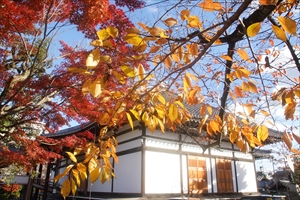 妙蓮寺前町に妙蓮寺(みょうれん-じ)はある。正式には大本山妙蓮寺という。山号は卯木山(うぼく-さん)という。 本門法華(ほんもんほっけ)宗大本山。本尊は十界曼荼羅(法華首題牌とも)。 法華(日蓮)宗の京都二十一か寺の本山、日蓮宗京都16本山の一つ。 ◆歴史年表 創建の詳細、変遷は不明。 鎌倉時代、1294年/1293年/1295年、日蓮の孫弟子・日像により創建された。日蓮の遺命により、日蓮宗最初の京都弘通(布教、帝都弘通宗義天奏)になる。造酒屋「柳屋」仲興(なかおき、中興)法実が日像に帰依し、その未亡人は邸内(下京区西洞院五条、西洞院通仏光寺下る本柳水町)に一宇を建てた。寺名を「卯木山妙法蓮華寺」とし、屋号より「柳寺(やなぎでら)」とも称した。山号の卯木山は、「柳」の字の「木」と「卯」を分けたことに因むという。 また、1309年、仲興が邸内に法華堂を建立し、妙法蓮華寺を建立したことに始まるともいう。寺はその後、破却されたという。 室町時代、応永年間(1394-1428)、日興により大宮四条下ルに再建された。 1420年頃/1405年、宗論により妙顕寺を退出した9歳の日慶、日存、日道、日隆らが、大宮元誓願寺通四条綾小路(綾小路五条とも)に庵を結んだ。伽藍を移築造営したともいう。日慶は3人に師事し、後に3人は布教のために草庵を出た。日慶は残り、本門八品門流として日像の妙法蓮華寺を略して寺号とした。開山は皇室とのゆかり深い日応による。 また、1420年/1423年、日慶により旧柳酒屋の地に、その外護により、廃寺になっていた妙法蓮華経寺を妙蓮寺と改め、再興したともいう。 永亨年間(1429-1441)、柳酒屋の外護により大宮綾小路辺に移るともいう。 1473年、四条堀川(下京区)に移転した。境内に道輪寺学室を設け、常在院日忠を学頭に招く。本化教学の道場を開いた。日応は、公家衆との親交を深め、皇族、将軍・足利義尚などの参詣多く、寺運隆盛になる。京都の日蓮門下21寺の本山になる。 1536年、天文法華の乱で、比叡山衆徒、諸宗の僧俗らにより襲撃され焼かれた。住持は一時、堺に逃れる。 1542年、帰洛勅許により、大宮西北小路(上京区元妙蓮寺町、元誓願寺通大宮西入る)に再興したともいう。 1544年、大宮元誓願寺通に再興されたともいう。 安土・桃山時代、1587年/1583年、豊臣秀吉の聚楽第造営に伴い現在地(妙蓮寺前町)に移された。当時の境内(1k㎡)は広大で、塔頭27院を有する大寺院になる。 江戸時代、法華経の説く、諸天善神の現世利益を求める番信仰が広がる。境内に、鬼子母神、十羅刹女、三十番神を祀る。 1633年、末寺34カ寺あった。 1730年/1725年、西陣焼けにより一部焼失している。 1788年、天明の大火で焼失した。宝蔵・鐘楼は焼け残る。 寛政年間(1789-1800)以来、再建された。 幕末、薩摩藩が利用し、野戦病院と化す。 1864年、禁門の変(蛤御門の変)では、薩摩軍に追われた長州兵が境内に駆け込む。 1867年、在家組織の八品講の一つ長松清風(日扇)の仏立講は、「三途不成論」を唱えた。妙蓮寺もこれを支持したため、本能寺・本興寺と対立が続いた。同年、三山は和解した。 近代、1872年、妙蓮寺、光長寺(沼津)、鷲山寺(千葉)、本能寺、本興寺(尼ヶ崎)は、廃仏毀釈に対処するために、「本門八品五山規則」を制定した。 1876年、五山は一致勝劣二派制より日蓮宗八品派になり、五山一派一管長制を敷く。 1898年、本門法華宗と改称した。 1934年、9月、室戸台風で被災した西陣小学校の児童のために、本堂・方丈で一時授業が再開された。12月、室戸台風で犠牲になった児童41人の供養塔「慰霊塔 西陣校罹災兒(児)童」が墓地に立てられる。 1935年、9月、室戸台風で犠牲になった児童の1 周忌追悼法要が営まれた。 1941年、戦時下の思想統制により本門法華宗は日真門流、日陣門流との三派合流を果たし法華宗を結成した。 現代、1945年、妙蓮寺は法華宗より離脱し独立した。 1946年、合同三派が解散した。 1952年、本門法華宗を立て本山になる。 1789年より、再興が始まる。 1993年、土蔵より平安時代後期の「松尾社一切経」3000巻が発見される。 ◆日像 鎌倉時代中期-南北朝時代の日蓮宗の僧・日像(にちぞう、1269-1342)。男性。肥後房、肥後阿闍梨。下総国(千葉県・茨城県)の生まれ。7歳で日蓮の六大弟子のひとり日朗に師事した。1275年、身延の日蓮の弟子になり、日蓮が経一丸と命名し本尊を授与する。1282年、日蓮没後、日朗に再び師事。北陸を経て1294年、入洛、日蓮の遺命により日蓮宗最初の京都弘通(ぐつう、布教)、宗義天奏(天皇への布教)を行う。松ヶ崎・歓喜寺(妙泉寺)、洛西・真経寺、深草・極楽寺(宝塔寺)を日蓮宗に改宗させた。町衆に信徒拡大し、一時の京都は「法華題目の巷」と呼ばれる。1307年頃、乙訓山崎付近で布教を行う。比叡山延暦寺などの圧力により、1307年、土佐配流、1308年、紀伊流罪、1321年、洛内追放と3度の弾圧と赦免「三黜三赦(さんちつさんしゃ)の法難」を受ける。1311年、妙顕寺を開創し、教団発展の礎を築く。深草・宝塔寺に葬られる。74歳。 一