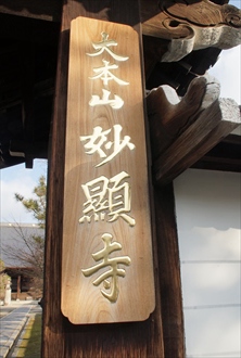 834.7㎡)ある。 山号は貝足山(ぐそく-ざん)という。龍華院の院号もある。正式には四海唱導(しかいしょうどう)妙顕寺という。通称は「竜華(龍華、りゅうげ)」という。 日蓮宗。本尊は釈迦多宝仏。 日蓮宗四大本山の一つ。日蓮宗京都16本山(かつては21本山)の一つ。末寺263。日蓮の孫弟子・日像(龍華樹[寿]院)により開山された「京都の三具足山(龍華の三具足)」(ほかに妙覚寺、立本寺)の一つ。洛中法華宗の二大勢力の一つ。 御朱印(御朱印、御首題「波揺りのお題目」)が授けられる。 ◆歴史年表 鎌倉時代、1294年、旧4月28日、日蓮宗の僧・日像は入洛した。師・日蓮の遺命により、日蓮宗最初の京都弘通(ぐつう、布教)を行った。 1311年、綾小路大宮(下京区)付近に、拠点になる法華堂が建立されたとみられている。 1321年、旧12月8日、日像は、第96代・後醍醐天皇より弘通の勅許を得る。天皇により寺領を与えられ、皇居御溝の傍、今小路(上京区)に法華堂を移した。この地は、安居院(あぐいん)の旧地になる。これが妙顕寺の起源ともいう。京都での日蓮宗最初の道場になる。 南北朝時代、1333年、後醍醐天皇皇子・護良(もりよし/もりなが)親王は、隠岐配流の父・後醍醐天皇の京都還幸を祈る令旨(りょうじ、命を伝える文書)を出した。 1334年、後醍醐天皇の綸旨(りんじ、蔵人が天皇の意を受けて発給する命令文書)により、法華宗号が公許され法華経の最初の勅願寺になった。洛中洛外の宗門の第一位と認められ、「四海唱導妙顕寺」といわれる。京都の16本山を総統した。 1336年、室町幕府将軍家、北朝光厳院の祈祷所になる。 1341年/1340年/1326年、2世・大覚妙実の時、北朝初代・光厳院の院宣(いんぜん、院司が院の命を奉じて出す文書)により、四条櫛笥西頬(しじょう-くしげ-にしづら)(中京区)に移転する。寺名も「妙本寺」と改称した。寺は栄え、以後、「四条門流」と呼ばれる。光厳院祈願所になる。 1352年、比叡山延暦寺衆徒との抗争により破却された。 1358年、大覚妙実は、北朝第4代・後光厳天皇の詔により、衆僧300人で桂川で法華経による祈雨祈祷を行い、すぐに効験が顕れたという。また、第97代、南朝第2代・後村上天皇により大覚妙実は、大僧正に任じられ、日蓮に大菩薩号、日朗・日像に菩薩号が与えられた。その後、寺勢は増した。 1387年、比叡山延暦寺衆徒により破却された。だが、叡山は再興を許さなかった。北朝最後の第6代・後小松天皇により、土地(四条以南、綾小路以北、壬生以東、櫛笥以西)を与えられた。 室町時代、1393年、足利義満により三条坊門堀川(押小路堀川西、押小路以南、綾小路以北、壬生以東、櫛笥以西、中京区)を寄進される。移転するとともに、叡山の干渉があり、「妙本寺」と寺名を改めて再興した。 1411年、室町幕府3代将軍・足利義満の祈願寺になる。比叡山延暦寺衆徒との抗争により破却された。 1413年、比叡山宗徒による破却が行われた。 1483年、三条西洞院に移る。 1511年、二条西洞院町に本妙寺(妙顕寺)の名がある。(『宣胤卿記』同年条) 1519年/永正-大永年間(1504-1528)、16世紀(1501-1600)初頭、「妙顕寺」と寺名を戻している。 1521年、室町幕府10代将軍・足利義稙により、二条西洞院南に再建された。 1536年、比叡山衆徒による洛中洛外の日蓮宗21寺を襲った事件、「天文法華の乱」(天文法乱)により破却される。堺・妙法寺に逃れた。 1542年、帰洛し、二条西洞院南(中京区)に再興され、「法華寺」と改める。 安土・桃山時代、1575年、土地(二条以南、三条坊門北、油小路、西洞院間)を与えられる。 1583年/1584年、羽柴秀吉の妙顕寺城建立(中京区古城町、押小路通小川西入北側)に伴い、その命により寺は現在地(小川寺ノ内)に移転させられた。秀吉は跡地に、政庁になる二条新邸を築いた。 1588年より、「妙顕寺」の旧名に復した。 1595年、方広寺大仏殿千僧供養出仕では受派になり、その拠点寺になる。 江戸時代、1628年、寿福院(千代保)は寿塔を立てた。 1633年、末寺193があった。 1745年、末寺329があった。 1788年、天明の大火により焼失している。 1834年、再建された。 近代に入り、法華各宗派が大合同し、身延山を祖山とする日蓮宗が結成され、大本山として全国に300あまりの末寺を統率した。 1941年、制度改革によって、全ての末寺を解放した。 ◆日像 鎌倉時代中期-南北朝時代の日蓮宗の僧・日像(にちぞう、1269-1342)。男性。俗姓は平賀、通称は肥後阿闍梨、号は竜華寿(樹)院。下総国(千葉県・茨城県)の生まれ。7歳で日蓮の六大弟子の一人・日朗に師事した。1275年、身延の日蓮の弟子になり、経一丸と命名され本尊を授与する。1282年、日蓮没後、日朗に再び師事した。1293年、北陸を経て、1294年、入洛し、日蓮の遺命により日蓮宗最初の京都弘通(ぐつう、布教)、宗義天奏(天皇への布教)を行う。松ヶ崎・歓喜寺(妙泉寺)、洛西・真経寺、深草・極楽寺(宝塔寺)を日蓮宗に改宗させた。柳酒屋仲興(やなぎざかやなかおき)ら町衆に信徒拡大し、一時の京都は「法華題目の巷」と呼ばれた