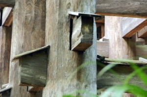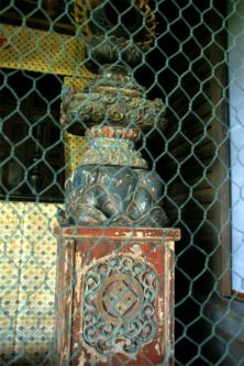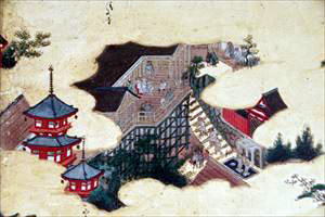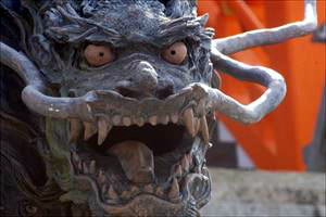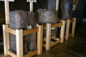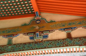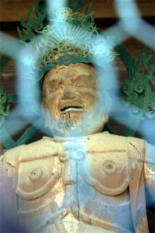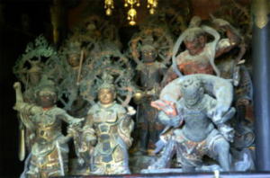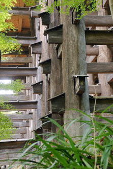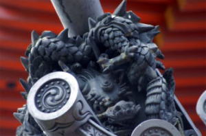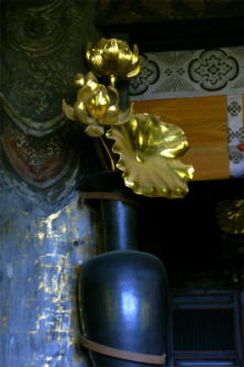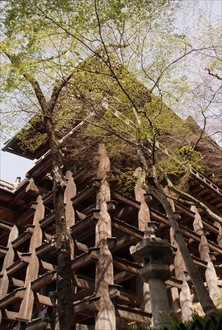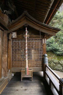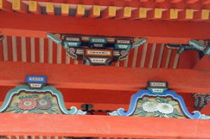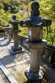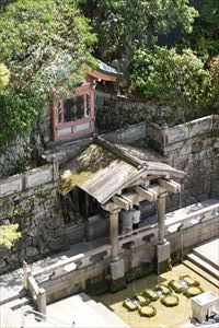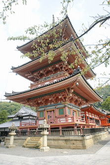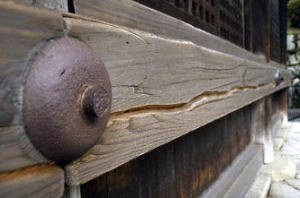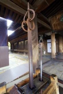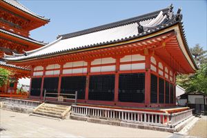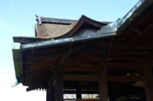 ![]() 1.三重塔東南隅の鬼瓦が水神の龍であり、防火の意味がある。 ![]() そのほかの鬼瓦 ![]() 2.仁王門の狛犬が双方ともに口を開け「阿阿の狛犬」になっている。地主神社の狛犬。 ![]() ![]() 3.鐘楼の柱が通常の4本ではなく6本になっている。 ![]() 4.仁王門の腰貫(木口)の頭を叩くと、斜交の柱に音が伝わる。「カンカン貫き」ともいわれる。参拝者は上の腰貫に耳を当て、下の腰貫を試しに叩く。このため木材がかなりすり減っている。 ![]() 5.轟門前に、川が流れてない橋が架かっている。かつて轟川という小川が流れていたという。橋の中央の板敷きは舌を表し、また、周囲の石敷きは歯であるとして、梟の手水鉢で口を漱ぐと歯痛、頭痛に効験あるものという。 ![]() 6.岸駒の燈籠は、虎が彫られている。夜になると吠えたり、水飲みに抜け出すという。 ![]() 7.平景清の足形石とされ、大きいため弁慶の足形ともいわれている。