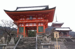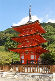 東山三十六峰・音羽山(おとわ-さん、清水山、242m)の西の中腹にある清水寺(きよみず-でら/せいすい-じ)は、13万㎡の広大な境内を有している。 山号は音羽山という。開山の頃は「北観音寺」と称された。音羽の滝が六根清浄の清水、水垢離(みずごり)行場、名水として知られ清水寺を寺号にした。 北法相宗(ほくほっそうしゅう)の総本山、本尊は十一面千手千眼観音立像。 1994年、「古都京都の文化財」17の資産(社寺城)の一つとして、世界文化遺産に登録された。 西国観音霊場三十三所第16番札所。神仏霊場会第117番、京都第37番。法然上人(圓光大師)二十五霊場第13番。 洛陽三十三観音巡礼で、善光寺堂(旧地蔵院)の如意輪観世音菩薩は、第10番札所。奥の院の三面千手千眼観世音菩薩は、第11番札所。本堂の十一面千手千眼観音菩薩は、第12番札所。朝倉堂の十一面千手千眼観音菩薩は、第13番札所。泰産寺の十一面千手千眼観音菩薩(子安観音)は、第14番札所。洛陽四十八願所地蔵めぐり(京都四十八願寺)の第41番札所、札所本尊は、勝軍地蔵。 善光寺堂(旧地蔵院)の阿弥陀三尊は、全国善光寺会に加わる。阿弥陀堂の阿弥陀坐像は、六阿弥陀巡拝(洛陽六阿弥陀めぐり)第3番。 音羽の滝は、無病息災、延命長寿、商売繁盛、縁結び、学業成就、合格祈願、所願成就、安産、航海安全の信仰を集める。 「ミシュラン・グリーンガイド・ジャポン 3つ星観光地(舞台は1つ星)」(改訂第4版)に選ばれている。「美しき日本-いちどは訪れたい日本の観光遺産」(日本交通公社、1999年)の一つに認定された。「京都市のバリアフリー・車椅子の方にもおすすめできる神社・寺院スポット一覧 (10件)」(介護アンテナ)の一つに選ばれている。 ◆歴史年表 創建、変遷の詳細は不明。 奈良時代、この地は、自然智を獲得するために奈良の東大寺、興福寺の僧が入る山林修行の場だったという。 奈良時代末期、778年/798年、奈良・子島(嶋)寺(観音寺)の延鎮(えんちん、賢心)は、夢告により音羽山に庵を結んだという。行叡(ぎょうえ)に会ったともいう。(寺伝、『扶桑略記』) 780年/798年、坂上田村麻呂が音羽山に入り、延鎮により帰依した。田村麻呂は夫人と共に本尊・十一面千手観音像を安置する。また、地蔵菩薩、毘沙門天を加えた三尊を安置したともいう。当初は、北観音寺と称したという。延鎮が仮本殿を建て、観世音菩薩を安置、創建したともいう。(『群書類従本清水寺縁起』) 783年、第50代・桓武天皇は新寺建立禁止令を発布した。平安京内に東寺、西寺の二官寺以外の寺院建立は禁じられる。それ以前に建立された田村麻呂の私寺・清水寺はその例外であり特例になる。 平安時代、798年、旧7月、田村麻呂(延鎮と伴にとも)は仏殿を改造する。長岡京紫宸殿を移したともいう。本尊脇侍の地蔵菩薩(将軍地蔵)、尾車捻転像(毘沙門天像とも)を安置する。 805年、旧10月、田村麻呂は、桓武天皇に奏請し、官符により寺地を施入する。桓武天皇の御願寺になる。(『群書類従本清水寺縁起』)。永く私寺とすることを認める太政官符が発布された。(『扶桑略記』) 807年、延鎮と田村麻呂は伽藍を建立し、妻・三善高子は金色の十一面千手観音像を彫り上げたともいう。また、高子が自邸を寄進、移築し仏堂としたという。(『群書類従本清水寺縁起』)。 810年、鎮護国家の道場になる。第52代・嵯峨天皇により、「北観音寺」の宸筆が贈られる。「清水寺」の額を掲げる。寺域は東は高峯、西は公地、南は尾振谷、北は大道内にあったという。以来、田村麻呂子孫は寺家之職、延鎮の子孫は寺家之司の職に任じられる。 847年、葛井(かどい)親王により三重塔が建立される。(『群書類従本清水寺縁起』)。七堂伽藍が整えられる。 937年、慶兼により轟門(大門)に二天王像が安置される。(『群書類従本清水寺縁起』) 959年、祇園感神院(延暦寺別院)との境相論があり、衆徒間で乱闘がある。これを検非違使が制した。(『日本紀略』) 976年、地震により三重塔が倒壊する。(『日本紀略』) 999年、真言密教も兼学とし、奈良・興福寺の末寺(客末寺院、一乗院門跡支配)になる。以後、南都(興福寺)、北嶺(延暦寺)の抗争が続く。以後、法相宗になる。 1004年、水害があり、修治される。(『御堂関白記』) 1014年、紫式部は、皇太后彰子の病気平癒のために清水寺に参詣する。本堂の局に籠り、伊勢大輔に会い歌を交わした。 1063年、最初の大火により焼失する。観音像は運び出される。以後、200年に8回(10回とも)の火災がある。 1064年、再建される。(『扶桑略記』) 1075年、珍皇寺との境相論がある。(「東寺百合文書」) 1087年、2度、焼失する。 1090年、第73代・堀河天皇が行幸し、参籠する。(『元亨釈書』) 1091年、焼失する。 1094年、再建され、落慶法要が催された。(『中右記』) 1103年頃、一切経堂が建立される。 1109年、別当・定深による祇園神人の凌辱事件が起こる。 1113年、清水寺別当の人選に端を発し、清水寺本寺・興福寺大衆(南都)と延暦寺衆徒(北嶺)が宇治で合戦になる。比叡山