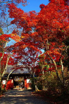 常照寺(じょうしょう-じ)は鷹峯にある。境内は5700坪(1万8000㎡)ある。かつては数万坪を有したという。 檀林の寺と称され、かつて「鷹峯檀林」が置かれた。日蓮宗京都六壇林の一つに数えられた。名妓・吉野太夫に由縁あり「吉野の寺」とも呼ばれている。山号は寂光山という。 日蓮宗、本尊は十界大曼茶羅。 吉野太夫にあやかり、諸芸上達(和歌、茶、書、舞)、合格祈願などの信仰がある。 ◆歴史年表 創建の詳細、変遷は不明。 江戸時代、1615年、徳川家康は本阿弥光悦に、鷹峯の地を野屋敷として与える。光悦は、本阿弥一族、工匠、豪商らとともに移り住む。 1616年、光悦よりこの地に土地寄進を受ける。光悦の養子・光瑳が発願主になり「法華の鎮所」として創建した。 1627年、光瑳の発願により、身延山久遠寺第21世・寂照院日乾(にちけん)を開山として招き、法華の鎮所を建てる。日乾は、「寂光山常照寺」と名付ける。境内に宗僧のための壇林(鷹ヶ峰壇林、講主・智見院日暹)を創設した。学問所として「常照講寺」と呼ばれたともいう。 後に、僧侶を養成する山城六壇林のひとつ「鷹峰壇林」になる。最盛期には30余りの堂宇が建ち並び、厳しい戒律の下で数百人の学僧が学んだ。 1628年、壇林の講主を日揚が引き継ぐ。同年、寛永期(1624-1644)とも、島原の2代目・吉野太夫の巨額の寄進により吉野門(吉野の赤門)が建立される。(『常照寺縁起』) 1711年、当寺は「六所随一なり」と記されている。(『山州名跡志』) 近代、1873年/明治期(1868-1912)初期、壇林は廃止された。 1917年、山門が再建された。吉野太夫の墓が改葬される。 現代、1953年、入寺した奥田恵遠住持により復興される。 1969年、「帯塚」が建立された。 1971年、吉野太夫と灰屋紹益の供養のために「比翼塚」が立てられる。 ◆日乾 室町時代後期-江戸時代前期の日蓮宗の僧・日乾(にちけん/にっけん、1560-1635)。男性。字は孝順、号は寂照院、姓は塚本。若狭(福井県)の生まれ。1569年、長源寺・日欽により出家した。本満寺の日重に師事、天台三大部を修めた。本満寺13世。三井寺、南都に遊学し、1585年、本国寺の学道求法講院(後の求法壇林)講主になる。慶長年間(1596-1615)、摂津国能勢で請雨法を修し霊験あり、覚樹庵(後の無漏山真如寺)創建になる。1602年、身延山久遠寺21世。一時京都に戻り、1609年、久遠寺に再任された。1618年、静岡貞松山蓮永寺を中興する。1627年、鷹峯に檀林を開く。1630年、江戸城での不受不施派との対論(身池対論)では、身延側の一人として勝利した。日蓮宗中興三師のひとり。著『宗門綱格』。76歳。 常照寺(北区)に葬られる。 ◆本阿弥 光悦 室町時代後期-江戸時代前期の文化人・本阿弥 光悦(ほんあみ/ほんなみ-こうえつ、1558-1637)。男性。通称は次郎三郎、号は太虚庵、自得斎、徳有斎など。父・光二(刀剣の鑑定[めきき]、磨礪[とぎ]、浄拭[ぬぐい]、工芸を家職にした京都の本阿弥家分家)、母・本阿弥妙秀の長男。京屋敷は現在の実相院町(上京区)にあり、熱心な法華信者だった。加賀・前田家から200石の食知を父・光二に継ぎ受けた。1615年、徳川家康より洛北の鷹ヶ峰の地を与えられ、一族、工人を集め芸術村を開く。 書は光悦流を興し、「寛永の三筆(ほかに近衛信尹、松花堂昭乗)」の一人とされ、書画、漆芸、作陶、築庭にも秀でた。茶の湯は古田織部、織田有楽斎につき、千宗旦とも交わる。角倉了以の子・素庵(1571-1632)に協力し、出版した嵯峨本(典籍や謡本を雲母摺りした料紙に書を印刷)、琳派(りんぱ)の俵屋宗達の下絵に揮毫した和歌巻、色紙、蒔絵、彫刻、茶碗などもある。作品に楽茶碗「不二山」、「雨雲」、蒔絵「舟橋蒔絵硯箱」、墨跡「立正安国論」など。80歳。 島原の吉野太夫を身請けした紺灰業の豪商・灰屋(佐野)紹益は、光悦の甥になる。吉野太夫を妻として迎えた際には光悦が仲介している。一族の位碑所は後に光悦寺(北区)になった。 ◆本阿弥 光瑳 安土・桃山時代-江戸時代前期の工芸家・本阿弥 光瑳(ほんあみ-こうさ、1578-1637)。詳細不明。男性。本阿弥光悦の養子、後継者。家業の刀剣研磨・鑑定、書も光悦弟子中で随一とされた。 59歳。 ◆日暹 安土・桃山時代-江戸時代前期の日蓮宗の僧・日暹(にっせん、1586-1648)。男性。俗姓は浦井、字は隆恕、号は智見院、智見院日暹上人。身延山久遠寺の心性院日遠(にちおん)の弟子。小西檀林7世、本満寺11世、1627年、鷹峰壇林の2世講主になる。1628年、身延山久遠寺26世。1629年、日樹ら不受不施派の取締りを幕府に訴える。江戸城の対論(身池対論)で受派の代表者になり勝利した。著『西谷名目標条』『不受不施論』。63歳。 ◆日揚 江戸時代前期の僧・日揚(にちよう、?-1639)。詳細不明。男性。立性院日揚上人。日乾の弟子。小西檀林9世。1628年、鷹峰壇林の3世講主。 ◆灰屋 紹益 江戸時代前期の豪商・灰屋 紹益(はいや-じょうえき、1610-1691)。男性。姓は佐野、名は重孝、清定、通称は三郎左衛門。京都の生まれ。父・本阿弥光悦の甥・光益。のち佐野紹由の養