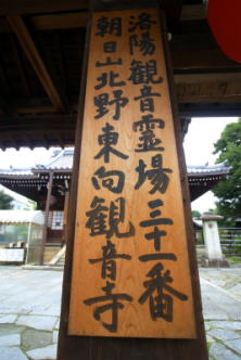 北野天満宮境内、二の鳥居の西にある観音寺(かんのん-じ)は、「東向観音(ひがしむき-かんのん)」、「東向観音寺」とも呼ばれる。「東向きの観音さん」と親しまれている。堂舎が東を向くことから称された。山号は朝日山という。 この地で、菅原道真が幼い頃に勉学に励んだという。かつて、神仏習合時代の北野天満宮の神宮寺だった。 真言宗泉涌寺(せんにゅうじ)派、準別格本山。本尊は菅原道真の自作、念持仏という十一面観音菩薩(東向観音)。 洛陽三十三所観音巡礼第31番札所(十一面観音菩薩)。 開運、災難厄介、除病、白衣観音は子授け、世継、安産、愛児健祥、子育てなどの篤い信仰がある。 ◆歴史年表 創建、変遷の詳細は不明。 年代不明、山本左大臣が願主になり建立したという。また、「観音寺」と呼ばれ、東西両向の堂があった。その後、早くに西向堂が廃される。東向堂は残り、本尊を「東向観音」と呼んだ。また、「朝日観音」とも呼ばれる。北野天満宮の神宮寺だったともいう。(寺伝、『雍州府志』) 平安時代初期、806年、第50代・桓武天皇の勅願により、大納言・藤原小黒麿(藤原家の祖・藤原不比等の孫)らが皇城鎮護のために建立し、当初は「朝日寺」といわれたという。 947年、朝日寺の僧・最鎮(最珍)らが北野天満宮を建立する。 天暦年間(947-957)、最珍(さいちん)が太宰府より道真の霊を遷し、祀ったという。 961年、菅原道真が、幼少期に勉学に励んだという筑紫・観世音寺より、道真自作という十一面観音菩薩を請来し安置した。 鎌倉時代、1311年、無人如導宗師(むにん-にょどう-すうすう)により中興される。(『雍州府志』)。真言宗泉涌寺の律院になり、筑紫・観世音寺とともに「観世音寺」「観音寺」と改称された。本尊は天神本地仏として信仰を集める。北野天満宮の神宮寺、奥之院になる。 鎌倉時代、第95代・花園天皇(在位1308-1318)、第96代・後醍醐天皇(在位1318-1339)の信仰を得た。 南北朝時代、北朝初代・光厳天皇(在位1331-1333)、北朝第2代・光明天皇(在位1336-1348)の信仰を得る。 室町時代、初代征夷大将軍・足利尊氏(在職1338-1358)の信仰を得る。本尊は、天神の化身とされ、「天満宮御本地仏」「北野神宮寺」ともいわれた。東向の堂と、一夜松の観世音菩薩が安置されていた西向の堂、東向観音堂などが建立された。 応仁・文明の乱(1467-1477)により焼失している。 その後、東向観音堂のみが再建される。本堂が東を向くことから「東向観音」と称された。 1550年、五輪石塔に、足利義晴の四十九日の仏事に、代官として高師宣が参詣した。(『万松院殿穴太記』) 1596年、本堂が再興される。 江戸時代、神宮寺を離れた。 1607年、豊臣秀頼による北野天満宮再建に際して、現在の本堂が建立された。(『坊目誌』) 1656年まで、御土居掘の一部は幕府により同寺に預けられていた。 1694年、礼堂と造合(つくりあい)が増築される。 一条家の祈願所になり、「天満宮之奥之院」とも称された。藤原氏北家摂関家九条流の一条家出身で明治天皇皇后・昭憲皇太后(1849-1914)が一時当寺で勉学したという。 近代、1868年以降、神仏分離令後の廃仏毀釈により、北野天満宮の仏教建物の多くは破却される。東向観音だけは残された。その後、北野天満宮より独立する。 1871年、北野天満宮三の鳥居付近より石造五輪塔が本堂に遷される。 1901年、五輪石塔が現在地に遷された。 1924年、旧地の土地整理に伴い、蜘蛛塚が境内に遷されたという。 2005年、「平成洛陽三十三所観音」が復興された。 ◆藤原 小黒麿 奈良時代後期-平安時代前期の官人・藤原 小黒麿(ふじわら-の-おぐろまろ、733-794)。男性。藤原家の祖・藤原不比等の孫。藤原北家嫡流。大納言。781年、陸奥出羽・按察使(あぜち)として任じられるが実効なかった。794年、平安京遷都を和気清麿とともに主導した。同年、第50代・桓武天皇の命により左大臣・紀古佐美とともに猿田彦神社を創建したという。東一色大谷神社(小黒宮、三重県員弁郡)に伝承あり、小黒麿は蝦夷征討の際に当社に参詣し、この地で病死したという。62歳。 ◆最鎮 平安時代中期の僧・最鎮(さいちん、?-?)。詳細不明。最珍。940年、菅原道真の乳母だったという多治比文子(たじひ-の-あやこ)が、西ノ京に道真追悼の堂宇を建立し、その開祖になる。947年、北野に遷座、文子は、朝日寺僧・最鎮らと共に霊祠を造営している。 ◆菅原道真の母 平安時代前期の菅原道真の母(? -872)。詳細不明。女性。伴氏(ともうじ)の出身。845年、道真を出産した。道真には2人の兄がいたという。道真元服の際に母が贈ったという歌「ひさかたの月の桂も祈るばかり家の風をも吹かせてしがな」がある。仏教を篤く信仰した。北野天満宮境内の伴氏社は、道真の母を祀る。北野天満宮隣の東向観音寺には伴氏廟が立つ。 ◆無人 如導 鎌倉時代後期の僧・無人 如導(むにん-にょどう、?-?)。詳細不明。男性。北野社への千日参籠を契機に出家した。泉涌寺などで活動し、律・浄土教学も学ぶ。1308年/1293年、一条安居