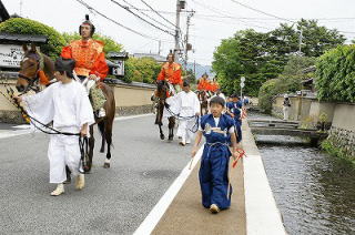 ![]() 社家町周辺の町並み、土塀と明神川に架かる各旧社家の社家橋 ![]() 社家の土塀と明神川、土塀は泥土で黄土色になっている。 ![]() 草橋、秋にはススキが生える社家橋もある。 ![]() 明神川に架かる社家の橋 ![]() ![]() 賀茂競馬(5月5日) ![]() 浜殿井堰付近、内川橋(左)と明神川