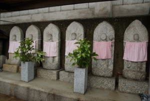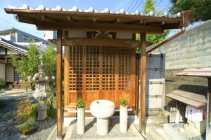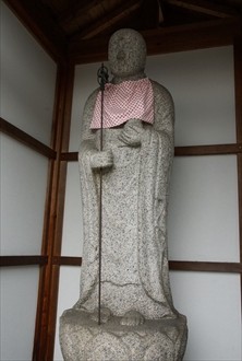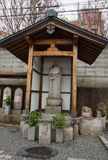 山端(やまばな)より修学院離宮に向かう道筋に、帰命院(きみょう-いん)がある。地蔵堂の山端地蔵で知られ、疫病平癒の信仰がある。山号は無量山という。 浄土宗西山禅林寺派の別院。本尊は阿弥陀如来。 ◆歴史年表 創建の詳細、変遷は不明。 平安時代、保元年間(1156-1159)、僧・西光が、七道の辻に7つの地蔵尊を安置したとされる。山端地蔵はそのうちの西坂本、雲母坂の登り口にあった雲母寺の地蔵堂に安置されていた地蔵尊ともいわれる。(『源平盛衰記』『山州名跡志』) 年代不詳、その後、山端地蔵は音羽川の氾濫により流出した。山端の理即院(左京区山端)に遷された。 江戸時代、1622年、帰命院は現在地に移された。 近代、1868年頃、帰命院は理即院(りそくいん)を吸収合併したともいう。 1885年以降、地蔵菩薩は帰命院に遷されたともいう。以来、山端地蔵と呼ばれる。 大正期(1912-1926)初め、廃寺になった理即院(りそくいん)より、当寺に山端地蔵が遷されたともいう。 ◆西光 平安時代後期の僧・西光(さいこう、?-1177)。男性。藤原家成の養子。藤原師光。信西(藤原通憲)の乳母子。阿波国在庁官人、内舎人、滝口、院北面、左衛門尉を歴任した。1159年、平治の乱に敗れた信西の死に際し、出家し西光と称した。その後も、後白河法皇(第77代)の近臣になる。1173年、浄妙寺を建立する。1174年、法皇・建春門院の厳島参詣に同行し、七条殿を造営した。1177年、子・加賀守師高、目代近藤師経と延暦寺との争いから師高が流罪になる。西光は法皇に告げ、延暦寺座主明雲も配流になる。同年、鹿ケ谷事件で平清盛に捕らえられ、法皇らの謀議を白状し斬首された。 ◆仏像 本堂に本尊の「阿弥陀如来像」を安置している。 ◆地蔵 地蔵堂に安置されている「山端地蔵」は、右手に錫状、膝上の左手に宝珠を載せる。蓮華座に趺坐している。円頭光の光背、極彩色、像高1m。 地蔵尊はかつて、現在地の東、雲母坂の登り口、音羽谷にあった雲母寺(きららじ/うんもじ)に安置されていたという。平安時代、保元年間(1156-1159)、僧・西光が七道の辻に、7つの地蔵尊を安置したとされ、そのうちの一つの西坂本に置かれた地蔵尊といわれる。(『源平盛衰記」)。 また、地蔵尊はかつて現在地の南西に存在した理即院(りそくいん、左京区山端)にあり、大正期(1912-1926)の初め、その廃寺に伴い当寺に遷されたともいう。 また、「京の七口」の一つ、大原口に置かれた地蔵ともいう。 ◆文化財 近代の日本画家・富田渓仙(とみた-けいせん、1879 - 1936)筆の衝立「竜虎図」、障壁画「山水図」がある。 ◆理即院 理即院(りそくいん)の詳細不明。左京区山端川端町(森本町とも)にあり、境内に地蔵堂、行者堂、方丈、庫裏などの伽藍が建ち並び、恵心僧都(源信、942-1017)作という地蔵尊坐像(4尺、1.2m)を本尊として安置していた。(『拾遺都名所図会』)。近代、1868年頃、また、大正期(1912-1926)初めに、廃寺になったともいう。 ◆雲母寺 雲母寺(きららじ/うんもじ)は、平安時代末期の元慶年間(877-884)、天台宗の相応(831-918)により創建された。比叡山延暦寺に属した。 雲母坂の登り口、音羽谷にあり、門、堂は南面し、2600坪の境内を有したという。江戸時代初期の文人・石川丈山(1583-1672)筆による「雲母寺」の横額が掲げられていたという。 近代以降、荒廃する。1885年に滋賀県に編入され、延暦寺直轄になる。その後廃寺になった。廃寺に伴い、西光が京の七口に建立した地蔵堂の一つがあった。その本尊・地蔵菩薩は帰命院に遷され、いまは山端地蔵と呼ばれている。 *年号は原則として西暦を、近代以前の月日は旧暦を使用しています。 *参考文献・資料 『新版 京のお地蔵さん』、『京都・山城寺院神社大事典』、『京都大事典』、『昭和京都名所図会 3 洛北』、『史跡探訪 京の七口』 、ウェブサイト「コトバンク」 ![]() ![]() ![]() ![]() ![]() ![]() ![]() ![]() |
