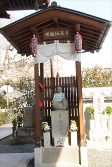 椿寺(つばき-でら)は、散椿(ちりつばき)の銘木が境内にあり寺号の由来になった。正式には昆陽山(こや-さん/こんよう-さん)地蔵院(じぞう-いん)という。昆陽山とは地蔵菩薩が摂津国昆陽寺より遷されたことに因む。 浄土宗、本尊は阿弥陀如来。 本堂脇壇の聖観世音菩薩は、洛陽三十三観音巡礼第29番札所。江戸時代、洛陽四十八願所地蔵めぐり(京都四十八願寺)の第12番札所、札所本尊は昆陽野地蔵(鍬形地蔵)。京の通称寺霊場8番、椿寺。 禁酒祈願、痔治療祈願、地蔵尊には安産祈願、子授けなどの篤い信仰がある。御朱印(3種)が授けられる。 ◆歴史年表 奈良時代、726年、行基が第45代・聖武天皇の勅願により創建したという。当初は、摂津国昆陽池畔(兵庫県伊丹市)に一宇を建てたことに始まるという。(寺伝、『山州名跡志』) 平安時代、京都の衣笠山南麓、内野に移されたという。七堂伽藍が建てられたという。(寺伝)。当初は八宗兼学だった。 南北朝時代、1391年/1392年、内野合戦(明徳の乱)の兵火により全焼失している。 1397年、足利義満は、北山殿(金閣寺)建立の際の余材で、地蔵院を再建したという。仮堂に地蔵菩薩を安置した。(『雍州府志』) 室町時代、1577年、清道が中興した。 安土・桃山時代、1582年、本能寺の変の際に、明智光秀は当寺の寺域に本陣を張ったという。 1587年、豊臣秀吉の北野大茶会の際に、散り椿を当寺に献木したという。秀吉の別荘として使われたともいう。 1589年/天正年間(1573-1591)、秀吉の命により現在地(一条紙屋川西)に移された。 江戸時代、寛文年間(1661-1673)、昆陽野地蔵(鍬形地蔵)は、第112代・霊元天皇の命により、僧・宝山が洛外・六地蔵以外の48か寺の地蔵尊を選んだ洛陽四十八願所の霊場の一つになる。 1671年、住持・善曳の時、知恩院末と改め浄土宗になる。本尊は五却思惟阿弥陀如来とした。 ◆行基 飛鳥時代-奈良時代の僧・行基(ぎょうき/ぎょうぎ、668/667-749)。男性。百済系の渡来人・高志(こし)氏。河内国(大阪府)の生まれ。父・高志才智、母・蜂田古爾比売。681年/682年、出家、官大寺で法相宗などを学ぶ。691年、高宮寺で具足戒を受けた。畿内に道場、寺を建立し、溜池、溝・堀、架橋、困窮者の布施屋建設などの社会事業を行う。704年、生家を家原寺とし住した。717年、民衆煽動と僧尼令に反した寺外活動の咎で、詔により弾圧を受ける。731年、弾圧を解かれた。732年、河内国狭山下池の築造に関わる。734年、東大寺大仏建立の詔が発布、勧進の任を務めた。736年、インド出身の僧・菩提僊那一行来日に際し太宰府で迎えた。738年、朝廷より行基大徳の称号が授与される。740年以降、東大寺大仏建立に協力する。741年、聖武天皇と恭仁京郊外の泉橋院で会見した。743年、東大寺大仏造営の勧進になった。745年、朝廷より日本初の大僧正位を授けられる。菅原寺(喜光寺)で亡くなる。地図の行基図を作成したという。東大寺「四聖」の一人。 80/82歳。 ◆早野 巴人 江戸時代中期の俳人・早野 巴人(はやの-はじん、1676-1742)。男性。通称は甚助、別号は夜半亭など。下野国(栃木県)の生まれ、江戸へ出る。榎本其角、服部嵐雪らに師事、高野百里、稲津祇空らと交わる。享保年間(1716-1735)半、京都へ移る。1737年、江戸に戻った。日本橋石町に夜半亭を結び、与謝蕪村、砂岡雁宕らを指導した。67歳。 ◆天野屋 利兵衛 江戸時代中期の商人・天野屋 利兵衛(あまのや-りへえ、1662頃-1727)。男性。名は直之。代々九郎兵衛を称した。後に松永土斎と称した。元禄年間(1688-1704)、熊本藩細川家、岡山藩池田家大坂屋敷に出入りした。1694年、天野屋九郎兵衛を襲名した。北組惣年寄になり、1695年、罷免される。72歳。 理兵衛は総年寄で大坂思案橋東詰に住み、奉行咎めにより所払いになる。地蔵院の隅に庵を建て松永士斎と名乗り、茶道三昧の余生を送ったという。 墓は地蔵院(北区)にある。 ◆仏像 ◈本堂に本尊の秘仏「阿弥陀如来像」を安置する。五劫思惟(ごこうしい)阿弥陀如来像であり、「お多福(おたふく)阿弥陀」とも呼ばれている。東大寺の俊重坊重源を招来し、江戸時代前期、1671年に浄土宗に改宗して後の本尊になる。 ふくよかな顔立ちをし胸前で合掌する。五劫思惟とは、阿弥陀如来が一切の衆生を済度するための願を起こし、五劫(劫は極めて長い時間。古代インドでの時間単位のうち最長)という計り知れない長時間にわたり思惟を続けたことをいう。このため、螺髪(らほつ)は伸びきり、後ろ髪は背中まで達した。 正月三カ日のみ一般公開される。 ◈観音堂中央厨子内に、秘仏の「十一面観世音菩薩立像」を安置している。平安時代の慈覚大師(794-864)作という。当初は南都にあり、霊告により地蔵院に遷されたという。(『山城名跡志』)。金箔押、右手を垂れ、左手に宝瓶を持つ。翻波式衣紋、一木造、五尺三寸(1.6m)。 ◈御前立の観音菩薩がある。脇侍は雨宝童子、春日龍神を安置する。 ◆地蔵 地蔵堂には「昆陽野(こやの)地蔵」、「木納屋(このや)地蔵」、「鍬形(くわがた)地蔵」