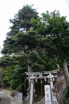 ![]() ![]() 拝殿 ![]() 拝所 ![]() モミの巨木 |