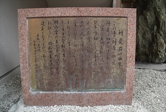 弁慶石町の三条通北側、ビルの一角に弁慶石(べんけいいし)と呼ばれる緑色の大石が立てられている。 石にはさまざまな伝承がある。男子が石を触ると力持ちになれる、火魔・病魔から逃れることができるともいう。 ◆歴史年表 変遷の詳細不明。 平安時代末期、武蔵坊弁慶は三条京極に住み、この石を好んだという。五条大橋より三条京極まで石を投げたという。 1189年、弁慶は、源義経を守護し共に奥州に逃れ、高館(たかだち、岩手県平泉)で最期を遂げる。弁慶のために弁慶石も高館へ移されたという。 室町時代、享禄年間(1528-1532)、石が「三条京極に往かん」と発声鳴動したという。その頃、高館に熱病蔓延したため、人々は恐れ石は京都へ戻された。(『山城名勝志』) 1453年、山科より石を移し南禅寺に置く。石は奥州衣川の底にあったという。弁慶はこの石の上に立ち最期を遂げたという。石は京の五条橋に行きたいと告げ、石が川から出ると川の水は3日間逆流した。石は山科まで来たという。縦横一尺、7.8寸、紫色で同じ色の小石が3つ付いていたという。(『臥雲日件録抜尤』) 1454年、石は高館より三条京極へ戻され、町名を弁慶石町と改めたという。 1528年、石は奥州平泉の衣川(ころもがわ、岩手県)より三条京極に移されたともいう。 1530年、石は奥州より京極律寺(京極寺、三条京極の西)に移されたともいう。以来、弁慶石町の町名も生まれたともいう。(『山城名勝志』『山州名跡志』) 安土・桃山時代、三条河原(三条京極)に「弁慶石」があった。人々は力試しのための力石として使っていた。かつて、弁慶が鞍馬口(上京区)で腰掛に使っていた石が、洪水によってこの地まで流されてきた。また、衣川から運ばれてきたともいう。この周辺で、人々により相撲も興じられた。(『洛中洛外図屏風』『京雀』『京羽二重』) 後、石は鞍馬口より洪水で流され現在地に来たともいう。また、一時、水薬師(下京区西七条石井町)に移されたともいう。(『京雀』『扶桑京華志』) 江戸時代、1637年、「弁慶石丁」の町名がある。(洛中絵図) 1788年、誓願寺に預けられ、方丈庭に置かれたともいう。(『都花月名所』) 近代、1892年、石はいつの頃よりか、誓願寺(中京区)方丈の庭に置かれていた。弁慶石町の人々が返還を求め、旧地の現在地に移して保存したという。(『京都坊目誌』) 1893年、弁慶石町の有志より現在地に移されたともいう。洋服店の店先にあったという。 1929年、現在地に移されたともいう。 1934年、銀行が土地を買い取り、石を移動させた。延暦寺の僧侶が祈祷したところ、直後に室戸台風が襲い京都に大きな被害を与えたという。 ◆弁慶 平安時代後期-鎌倉時代前期の伝説的な僧・弁慶(べんけい、?-1189)。詳細不明。男性。武蔵坊。幼名は鬼若、鬼若丸。熊野社別当の子として熊野に生まれる。幼時に比叡山西塔桜本僧正に預けられる。乱行により放逐、自ら剃髪し弁慶と名乗る。播磨書写山に籠るが、乱行により再び放逐になる。京都で1000本の太刀を奪う悲願を立て、最後の1本をめぐり源義経(牛若丸)に五条天神で出会う。清水観音境内で義経と闘い、負けて郎従になる。以後、義経の平家討伐に従い、陸奥国衣川の合戦で義経に殉じたという。 三条通麩屋町東入付近に住んでいたという。 ◆弁慶石 弁慶石は、結晶片岩、高さ1.5m。 ◆アニメ ◈アニメーション『名探偵コナン 迷宮の十字路』(原作・青山剛昌、制作・トムス・エンタテインメント、2003年4月)の舞台になった。コナンと服部平次が訪れる。 *年号は原則として西暦を、近代以前の月日は旧暦を使用しています。 *参考文献・資料 『京都歴史案内』、『昭和京都名所図会 5 洛中』、『京都大事典』、『ワールドミステリーツアー13』、『京都市の地名』、『京都の自然ふしぎ見聞録』、案内板 、ウェブサイト「アニメ旅」、ウェブサイト「コトバンク」 ![]() ![]() ![]() ![]() ![]() ![]() |