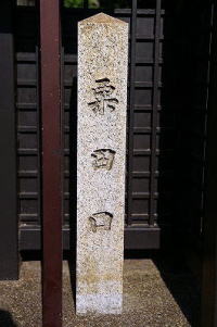![]() 白川小学校校門脇に立つ「粟田口」の石標 |