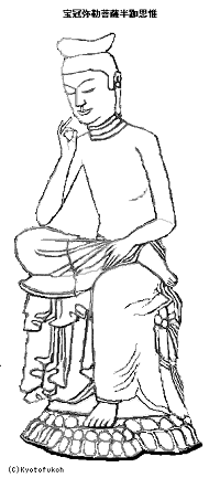 広隆寺(こうりゅう-じ)は、京都最古の寺といわれている。飛鳥時代、厩戸王(うまやどのおう、聖徳太子)が建立したとされ、王が建立した七大寺の一つになる。「太子堂」、「太秦の太子さん/お太子さん」ともいわれている。 かつて「秦寺(はたでら)」、「太秦公寺」、「秦公寺(はたぎみでら/うづまさでら)」、「太秦寺」などと呼ばれ、秦氏により建立された氏寺だった。「蜂岡寺」、「葛野寺(かどのでら)」、「桂林寺(けいりんじ)」、「三規寺」とも呼ばれた。山号は蜂岡山という。蜂岡とは、「蓮華の寺ある岡」として現在地を示すともいう。 真言宗御室派。本尊は変遷し、かつては国宝指定第1号の弥勒菩薩像だった。その後、薬師如来を経て、現在は厩戸王(聖徳太子)立像を安置する。 厄除け、疾病除けの信仰がある。 「ミシュラン・グリーンガイド・ジャポン 2つ星観光地(弥勒菩薩半跏像は3つ星)」(改訂第4版)に選ばれている。 ◆歴史年表 創建、変遷の詳細は不明。 飛鳥時代、603年、旧11月、新羅系渡来人氏族・秦河勝が、厩戸王(聖徳太子)より譲られた弥勒菩薩を本尊として建立したという。蜂岡(はちおか)寺」と称したという。(『日本書紀』)。当初は葛野の九条河原里-九条荒見里にあったとも、北野廃寺の地(紙谷川上流右岸、北野白梅町)にあったともいう。 616年、新羅より金銅救世観音像を贈られたという。 622年、19年間の歳月をかけ、堂塔、伽藍が完成した。また、同年に厩戸王(聖徳太子)が亡くなり、その供養のために創建されたともいう。この頃、「葛野秦寺」と呼ばれた。(「広隆寺縁起」・『朝野群載』所収)。第33代・推古天皇より水田、山野を寄進される。 623年、新羅、任那より使者が訪れ、葛野秦寺は仏具、舎利、仏像を贈られたという。(『日本書紀』) 奈良時代以来、厩戸王(聖徳太子)建立七寺、八寺の一つに数えられた。 724年、勅願により伝法会を毎年修するようになる。 平安時代、794年、現在地に移されたという。 797年、勅願により本尊を薬師如来にする。 818年、大火により焼失した。南大門、東大門、西大門、築地は焼失を免れた。 824年、勅願により仏名会を宮中で修した。 836年/承和年間(834-848)、道昌僧都は別当になり再興する。中興の祖になった。 承和年間(834-848)、再興されたという。金堂、歩廊、中門、講法堂、鐘楼、食堂、僧房、宝蔵、政所庁屋、厨房、大炊屋、湯屋、厩屋、客房などが建てられていた。(「広隆寺縁起資財帳」「広隆寺資財交替実録帳」) 860年、第56代・清和天皇の命により薬師如来を勅封(勅命によって封印する)にしたという。 864年、清和天皇が別当・道昌に勅し、願徳寺の薬師仏(七薬師像)を迎え祈願し、病が平癒したという。以後、薬師如来が本尊になるともいう。 873年、「広隆寺資財帳」が作成された。 890年、「広隆寺資財交替実録帳」が作成される。 899年、第60代・醍醐天皇により近江国水田が寄進された。 947年、第62代・村上天皇により水田が寄進される。 980年、第64代・円融天皇により近江国・犬上荘が寄進された。 1012年、恵心僧都は常行堂念仏を3日間修し、中日の夜に摩多羅神を祀る。牛祭りの始まりになる。 1016年、三条上皇(第67代)が行幸し、9日間の参籠をした。 1104年、第72代・白河天皇が行幸する。 1123年、第74代・鳥羽天皇は松原荘を寄進した。 1127年、鳥羽天皇が行幸、参籠する。 1132年、鳥羽天皇が再び行幸、参籠した。 1150年、焼失している。 1165年、勅命により公家・藤原信頼が再建した。金堂(現在の講堂、赤堂)、阿弥陀堂、常行堂、回廊、中門、鐘楼、経蔵も再建される。 鎌倉時代、1248年以来、勅願により毎年、法華会を修する。 1251年、中観上人(澄禅)は桂宮院を再興する。足利尊氏は安堵状を下付する。 1254年、第88代・後嵯峨天皇が行幸、参籠した。 1262年、第90代・亀山天皇は近江森尻荘を寄進する。 1265年、後嵯峨天皇が行幸、参籠した。 1266年、後嵯峨院が行幸、参籠した。 1291年、第92代・伏見天皇の母・洞院愔子(とういんいんし、玄輝門院)が落髪する。 1302年、伏見天皇は山城・安養寺荘、近江・世理荘を寄進する。 1307年、第94代・後二条天皇は山城・安養寺荘、近江・世理荘を寄進する。 1311年、第95代・花園天皇は山城・安養寺荘、近江・世理荘を寄進した。 1315年、院宣(上皇・法皇の命により、院庁の役人が出す公文書)により和泉国・秦寺を管領する。 室町時代、文明年間(1469-1487)、現在の薬師堂が建立された。 1490年、第103代・後土御門天皇は大和・仲居荘、丹波・桐野荘を寄進する。 1532年、後土御門天皇は、厩戸王(聖徳太子)像に天皇即位の御衣を贈る。 1565年、講堂が修理され、規模縮小になり、檜皮葺より瓦葺に替える。 安土・桃山時代、1577年、織田信長は朱印状を下付する。 1585年、豊臣秀吉は600石の安堵状を下付する。 江戸時代、徳川家康以来、歴代将軍は600石黒印状を安堵した。 1662年、第111代・後西天皇は厩戸王(聖徳太子)像に天皇即位の御衣を贈る。 1701年、第113代・東山天皇は厩戸王(聖徳太子)