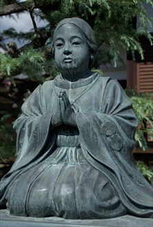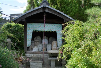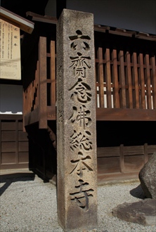 田中上柳町(たなか-かみやなぎ-ちょう)に光福寺(こうふく-じ)はある。門脇に「六斎念仏総本寺」の石標が立つ。六斎念仏弘通(ぐずう)の寺として知られる。 「干菜寺(ほしな-でら)」ともいわれる。正式には「干菜山斎教院安養殿光福寺」という。 浄土宗知恩院派、本尊は阿弥陀如来像。 ◆歴史年表 鎌倉時代、寛元年間(1243-1247)、道空は、乙訓郡西山安養谷(あんようがたに、長岡京市浄土谷)の東善寺を中興した。それを前身にするという。その後、衰微した。 室町時代、永正年間(1504-1521)、草創されたともいう。 天文年間(1532-1554)、4世・信光により再興される。併せて斎教院が開かれた。 安土・桃山時代、1582年、丹波国の7世・月空宗心(げっくう-そうしん)により現在地に移される。丹波国(北桑田郡宇津[うつ]、京北町)の武蔵寺(ぶぞうじ)を合併し、「斎教院武蔵寺」といわれたという。 1593年、豊臣秀吉は鷹狩の際に当寺に立ち寄る。住職・宗心が干菜(ほしな)を供し、秀吉は「干菜山光福寺」の称号を与えたという。 江戸時代、1645年、光福寺の八幡宮再建のため、糺河原で相撲興業が行われた。勧進相撲の始まりになる。(『古今相撲大会』) ◆道空 鎌倉時代後期の僧・道空(?-1315)。詳細不明。男性。12世紀(1101-1200)中頃、六斎念仏を興し広めた。常行院(じょうぎょういん)を春日通烏丸に建て、六斎念仏を興した。寛元年間(1243-1247)、乙訓郡西山安養谷・東善寺を中興した。1264年、宮中に召され、第90代・亀山天皇に六斎念仏勤行の勅命を受けたという。干菜寺の中興開山、西方寺を中興したともいう。 ◆仏像 本尊「阿弥陀如来像」は、鎌倉時代後期、1313年に、第95代・花園天皇から贈られたという。閉目している。 ◆干菜寺 干菜寺の別号についての伝承がある。 干菜(ほしな、乾菜)とは、大根や蕪の葉を干したもので、味噌汁の具材、漬物にもした。菜を入れた風呂の干菜湯もあった。 安土・桃山時代、1593年、豊臣秀吉は聚楽第に在住の頃、鷹狩の際に当寺に立ち寄った。住職・宗心は、貧しい寺であるため何も供することができなかった。干菜(ほしな)一把を出すと、秀吉は感服し、「干菜山光福寺」の称号を与えたという。 また、高野河原での念仏踊りが秀吉の目にとまる。寺に秀吉を招いて干菜を供すると、秀吉は大いに喜んだともいう。 ◆六斎念仏 道空は、常行院(じょうぎょういん)を春日通烏丸に建て、六斎念仏を興している。鎌倉時代中期、1264年、道空は宮中に召され、第90代・亀山天皇に六斎念仏勤行の勅命を受けたという。 寺は、室町時代、第104代・後柏原天皇(在位1500-1526)により、「六斎念仏総本寺」の勅号を受けた。安土・桃山時代、秀吉の頃、六斎念仏総本山に定められたという。 当寺の六斎念仏は、念仏本来の姿を伝えているという。知恩院で50年毎に催された法然大遠忌には、寺の支配下にある僧により六斎念仏が演じられてきた。当寺は、芸能系の空也堂系と並ぶ京都の六斎念仏の拠寺になっている。 ◆庭園 枯山水式庭園がある。豊臣秀吉より贈られた聚楽第の名石が移されたという。臥牛(がぎゅう)石、片山石、諸眉(もろまゆ)石などの名が挙がる。 植栽により深山から枯滝が落ち、流れに水分石が配されている。大河は白砂の曲がりくねった流れにより表現されている。河には低く抑えられ切石の橋が架かる。河岸に石が敷かれ、石が配されている。 ◆文化財 『六斎念仏興起書』など六斎念仏関係資料がある。 秀吉寄進という陣太鼓、秀吉画像などもある。 *年号は原則として西暦を、近代以前の月日は旧暦を使用しています。 *参考文献・資料 『京都・山城寺院神社大事典』、『昭和京都名所図会 5 洛中』、『秀吉の京をゆく』、『京都大事典』、『親と子の下鴨風土記』、『京都 阿弥陀の寺と庭』、光福寺案内板、ウェブサイト「コトバンク」 ![]() ![]() ![]() ![]() ![]() ![]() |
