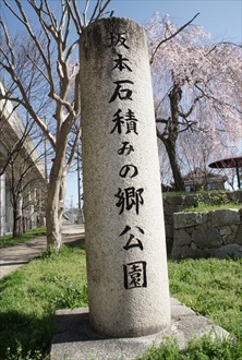![]() 坂本石積みの郷公園 ![]() 鐘楼 ![]() 破鐘 ![]() 「若き日の寂澄(最澄)像」 ![]() 【参照】穴太積衆積みの石垣、穴太衆積みを手掛けた石工集団の穴太衆は大津市坂本穴太を本拠地として活躍した。穴太衆による石垣の積み方には3種あるという。 1.自然石を加工しないままに積み上げる「野面積み」。2.石面を槌で叩き大雑把に加工したものを組み合わせる「打ち込みハギ」。3.ノミで加工した石を隙間なく組み合わせた「切り込みハギ」。 代表的な野面積は、石垣表面から3分の1奥まった点に比重(重力)をかける。石垣奥には栗石層があり、奥に小石を積める。これは排水を工夫することで、土の水ぶくれによる石垣崩壊を防いだという。 |