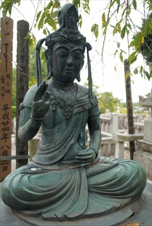 化野(あだしの)は、古くより葬送地になっていた。化野念仏寺(あだしの-ねんぶつ-じ)は、正式には念仏寺という。号は華西山東漸院(かさいざん-とうぜんいん)という。 浄土宗。本尊は阿弥陀如来像を安置している。 水子供養、死者供養の信仰がある。 ◆歴史年表 平安時代、弘仁元年(810-924)、空海(弘法大師)が、付近にあった庶民の野晒しの遺骸を埋葬したことに始まるという。小倉山寄りを金剛界、曼荼羅山寄りを胎蔵界とし、千体の石仏をこの地に集めたという。さらに、中央を流れていた曼荼羅川の河原には、五智如来(ごちにょらい)の石仏を立てた。五智如来とは密教の5つの知恵を如来に当てたものをいう。一宇は当初、五智如来寺といわれ、大覚寺所轄の真言宗の寺だったという。(寺伝) 平安時代後期以降、この地は埋葬地になったともいう。 中世(鎌倉時代-室町時代)以降、石仏、石塔が立てられる。 鎌倉時代初期、浄土宗開祖・法然(1133-1212)が寺を念仏道場とした。以来、浄土宗に改宗し、寺名も「念仏寺(五智山念仏寺)」に改められる。 江戸時代、1712年、寂道(じゃくどう)により、現在の本堂が再建されている。 1787年、小石塔、石仏群はまだなく、本堂、庵、鐘楼、天神社、稲荷社のみが描かれている。(『拾遺都名所図会』) 近代、1903年/1904年、念仏寺近くの福田寺の住僧が、石塔を土中より掘り出し、無縁墓地にしたという。 明治期(1868-1912)中期/1903年-1904年、地元の人々の協力を得て、周辺の石塔、石仏を集めた。釈尊宝塔説法を聴く人々になぞらえ祀り、賽(さい)の河原に模して「西院(さい)の河原」と名付けたという。 ◆空海 奈良時代-平安時代前期の真言宗の開祖・空海(くうかい、774-835)。男性。姓は佐伯氏、幼名は真魚(まお) 、諡号は弘法大師。讃岐国(香川県)の生まれ。父・豪族の佐伯田公(義通)、母・阿刀氏。788年、15歳で上京し、母方の叔父・阿刀大足に師事し儒学を学ぶ。791年、18歳で大学明経科に入るが、中途で退学し私渡僧(しどそう)として山岳修行を始め、四国の大滝岳や室戸崎などで山林修行した。797年、『聾瞽指帰(ろうこしいき)』を著す。798年、槙尾山寺で沙弥になり、教海と称する。804年、東大寺戒壇院で具足戒を受ける。遣唐使留学僧として唐へ渡り、805年、長安・青竜寺の恵果(けいか)により両界、伝法阿闍梨の灌頂を受ける。806年、当初の20年の義務期間を2年に短縮して帰国、多くの経典、密教法具などを持ち帰る。入京できず大宰府・観音寺に住した。809年、入京を許される。810年、高雄山寺(神護寺)を経て、811年、乙訓寺に移り、約1年間任に当たった。別当になる。812年、乙訓寺を訪れた天台宗開祖・最澄は、空海と会っている。その後、空海は高雄山で最澄らに金剛界結界灌頂を行った。後、二人は決裂し、断絶する。813年、東大寺別当、819年頃/818年、高野山を開く。822年、東大寺に灌頂道場(真言院)を開く。823年、東寺を真言密教の道場にした。824年、高雄山寺を神護寺と改名する。神泉苑で祈雨の修法を行う。827年、大僧都になる。828年、綜芸種智院を創立した。832年、高野山で万灯会、834年、正月、宮中中務省で後七日御修法を営む。830年、『秘密曼荼羅十住心論』を著す。高野山で亡くなり、比叡山東峰に葬られた。62歳。 ◆法然 平安時代後期-鎌倉時代前期の僧・法然(ほうねん、1133-1212)。男性。諱は源空、号は法然房、幼名は勢至丸。美作国(岡山県)の生まれ。1141年、9歳の時、父・漆間時国は、夜襲により殺される。1145年、13歳で比叡山に上り、西塔北谷の持法房源光に師事、黒谷慈眼坊叡空の庵室に入った。1147年、皇円の下で出家受戒する。1156年、比叡山を下り清凉寺に参籠、南都学匠も歴訪する。再び比叡山に戻り黒谷報恩蔵で20年に渡り一切経を5回読む。1175年、唐の浄土宗の祖・善導の「観経疏」の称名念仏を知り、比叡山を下りた。西山、広谷(後の粟生光明寺)の念仏の聖・遊蓮房円照に住した。吉水に草庵(吉水の善坊)に移り、阿弥陀仏を崇拝し、ひたすら南無阿弥陀仏を口で唱える専修念仏の道場になる。1186年、大原談義。1190年、東大寺で浄土三部経を講じる。1204年、延暦寺衆徒による専修念仏停止を天台座主に要請した 「元久の法難」が起きた。1206年、後鳥羽上皇(第82代)の寵愛した女官(鈴虫、松虫)らが出家した事件「承元(建永)の法難」により、専修念仏の停止になり、1207年、法然は四国・讃岐に流罪となる。10カ月後に赦免されたが入洛は許されず、摂津・勝尾寺に住み、1211年、ようやく帰京した。草庵は荒れ果て、青蓮院の慈円僧正により、大谷の禅房(勢至堂付近)に移り、1212年、ここで亡くなった。80歳。 ◆角倉 素庵 室町時代後期-江戸時代前期の豪商・文化人・角倉 素庵(すみのくら-そあん、1571-1632)。男性。名は光昌、玄之(はるゆき)、字は子元、通称は与一、別号に貞順・三素庵。父・角倉了以、母・吉田栄可の娘の長男。父の朱印船貿易、河川開発事業を継承した。1588年、藤原惺窩より儒学を学ぶ。後に林羅山を知り、二人を引き合わ
