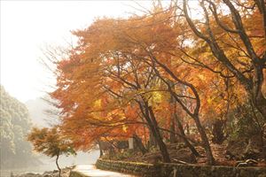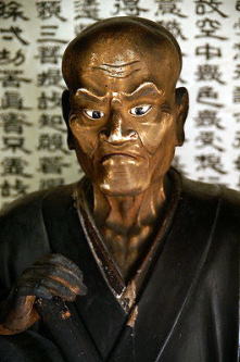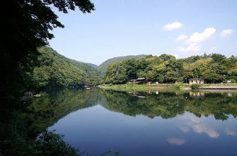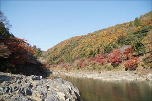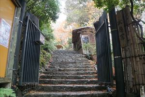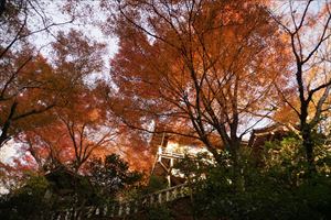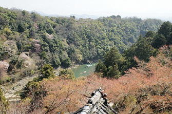 千光寺(せんこう-じ)は、嵐山(382m)北麓、渡月橋の大堰川(保津川、桂川)上流の右岸(南岸)1.2kmにある。 千鳥ヶ淵より、急峻な九折の参道(門道、石段は約200段)を登った中腹に建つ。客殿の名称から院号は大悲閣(だいひかく)とも呼ばれている。その名は「菩薩の大きな慈悲」に因んでいる。「嵐山大悲閣(あらしやま-だいひかく)」、正しくは「大悲閣千光寺」と呼ばれている。山号は嵐山という。 黄檗(おおばく)宗単立の禅寺。本尊は千手観世音菩薩を安置する。 角倉了以ゆかりの寺であり、角倉家一族の一人である江戸時代初期の和算家・吉田光由に因み、算盤(そろばん)上達、数学・理学向上の寺としても知られている。 ◆歴史年表 鎌倉時代、千光寺は、第99代・後嵯峨天皇(1220-1272)の祈願寺だった。当初は、中院(右京区嵯峨釈迦堂前南中院町)にあり、大悲閣の前身になる。禅宗の鎌倉・建長寺に属した。その後、衰退する。 江戸時代、1614年、土倉(どそう)・角倉了以(すみのくら-りょうい)は、嵯峨釈迦堂西の千光寺の旧地を得る。その本尊・千手観世音像を念持仏にした。現在地(嵐山の別業の地)に移す。二尊院の僧・道空了椿(どうくう-りょうちん)を中興開山として建立した。寺号は、観音の「大慈大悲」より「大悲閣」と名付けた。当初は天台宗だった。了以はすでに病床にあった。大堰川開削犠牲者の菩提を弔うために、観音堂を建て移り住んだという。了以は同年、旧7月、没した。その後、衰微、荒廃する。 了以の子・角倉素庵(1571-1632)は、父の像を安置し、以後、角倉家の菩提所になる。 1808年、了以200年忌にあたり、子孫の角倉玄寧、黄檗僧・大顚(だいてん)により中興された。日野黄檗宗正明寺の末寺になる。(「角倉文書」)。京都の豪商・風間八左衛門により復興されたともいう。 江戸時代末期、再び衰微した。 近代、1868年、8代・角倉関岳が萬福寺末にした。境内、堂宇、寺領山林、什宝など多くを失い、荒廃した。大悲閣は残る。 1871年、9代・戒岳が再興した。 1887年、戒岳の時、開基家分家には廃寺の意図があった。思想家・岡倉天心(1863-1913)らが復興に協力し、その後も整備が続けられた。 1912年頃、角倉了以の300年忌に客殿(大悲閣)が新築された。 現代、1959年、9月、伊勢湾台風の被害により、本堂(観音堂)、大悲閣などが損傷する。その後、仮補修で凌いだ。 1978年、12月、本堂が解体される。その後、仏殿(仮本堂)が建てられ、本尊などが遷された。 2013年、1月-10月、客殿(大悲閣)の修復工事が終わる。 ◆角倉 了以 室町時代後期-江戸時代前期の海外貿易家・豪商・土木事業家・角倉 了以(すみのくら-りょうい、1554-1614)。男性。与七、諱は光好、法号は了以。京都嵯峨の生まれ。父・土豪(高利貸)・医者・吉田宗桂(そうけい)、母・中村氏の娘の長男。。父は勘合貿易により薬も扱った。了以は算数・地理を学び、角倉家5代として家業を引き継ぐ。1592年、豊臣秀吉から朱印状を与えられた。1604年以降、徳川氏から朱印状を与えられた。1603年-1613年、弟・宗恂、長男・与一(素庵)らの協力により、安南国(ベトナム)トンキン(東京)との御朱印船(角倉船、400人乗り、800t)貿易により富を得る。1606年、豊臣秀吉の命により、大堰川開削(丹波-山城)を行う。保津峡に船を渡し、亀岡と京都間の木材輸送を拓いた。安南貿易により得た火薬を工事に用いたという。通舟料を得て莫大な利益を得る。1608年、幕府の命により、富士川(駿河岩淵-甲府)疏通を完成させる。同年、天竜川(遠江掛塚-信濃諏訪)開疏は失敗した。1609年以降、貿易は子・与一に譲る。1610年、方広寺大仏殿造営の材木運搬のために、鴨川開削(水路化)を行う。1611年-1614年、高瀬川(京都二条-伏見)開削を行う。二尊院の道空に師事し仏道を極めた。晩年は、大悲閣(西京区)に隠棲し、開削川の通船の便益を念じたという。 薬物の輸入に尽力した。土木工事の技術に長けた。琵琶湖疏水(勢多-宇治)計画では、舟行、新田開発の腹案もあった。角倉家は河川通船支配権、倉庫料徴収での特許を得て有力材木商になる。京の三長者(ほかに、後藤四郎兵衛家、茶屋四郎次郎)の一人といわれた。61歳。 墓は二尊院(右京区)にある。 ◆角倉 素庵 安土・桃山時代-江戸時代前期の豪商・文化人・角倉 素庵(すみのくら-そあん、1571-1632)。男性。名は光昌、玄之(はるゆき)、字は子元、通称は与一、別号に貞順・三素庵。父・角倉了以、母・吉田栄可の娘の長男。父の朱印船貿易、河川開発事業を継承した。1588年、藤原惺窩より儒学を学ぶ。後に林羅山を知り、二人を引き合わせる。本阿弥光悦より書を習う。後に「寛永の三筆」の一人とされた。1599年、『史記』の刊行以降、1601年頃まで、光悦の協力を得て嵯峨本を刊行する。1603年から、父・了以の安南国東京(インドシナ半島)との朱印船貿易に関わり、日本国回易大使司を称し、角倉船を海外派遣した。父の大堰川、富士川、天竜川の開削、鴨川水道、高瀬川の運河工事を補佐した。1606年-1609年、甲斐、伊豆鉱山の巡視、1614