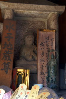 轆轤町(ろくろ-ちょう)界隈の六道の辻は、古くより鳥辺野の入口に当たり、葬送地に送られる亡骸の無常所になっていた。周辺に、かつて6つの仏堂があり現在は3つが残っている。 西福寺(さいふく-じ)は、正式には桂光山敬信院という。 浄土宗鎮西派。本尊は阿弥陀如来坐像。 四十八願寺(四十八願巡り)の第31願。子育地蔵は子どもの健康、病平癒の信仰篤い。末広不動尊は商売繁盛の信仰がある。 ◆歴史年表 平安時代初期、この地に弘法大師(空海)(774-835)が辻堂を建立し、土仏地蔵尊を安置したのが始まりとされる。 第52代・嵯峨天皇皇后の橘嘉智子(786-850)は、地蔵堂に参詣し空海に帰依したという。 814年、空海は、嵯峨天皇皇子・正良親王(810-850、54代・仁明天皇)の病平癒を祈願し、以後、子育て地蔵と呼ばれたという。 鎌倉時代初期、第77代・後白河天皇(1127-1192)は、熊野詣千日修行に際し不動尊堂に籠り、地蔵尊に道中の安全祈願を行う。帰京後、那智の不動尊を勧請し、地蔵尊の守護神として、不動堂に末廣不動明王が安置された。 室町時代以後、熊野比丘尼達が付近に移住し、絵解きし、熊野詣を勧めた。 安土・桃山時代、1603年、毛利家家臣・井上安芸守(五左衛門)は、関ヶ原の戦い(1600)で斬首刑になった安國寺恵瓊を悼み、地蔵堂に籠りその菩提を弔う。蓮性を開山として堂宇を建立した。寺号は桂光山敬信院とし、南都六宗、平安二宗(真言宗、天台宗)の兼学道場にした。 その後、衰微する。 江戸時代、1678年、日向の僧・念故が中興している。 1726年/1727年、関白・二条綱平が父・九条兼晴(禅門円学、1641-1677)のために再興する。 ◆橘 嘉智子 奈良時代-平安時代前期の橘 嘉智子(たちばな-の-かちこ、786-850)。女性。檀林皇后(だんりんこうごう)。京都の生まれ。父・贈太政大臣・橘清友(たちばな-の-きよとも)、母・贈正一位田氏。美貌の人だったという。809年、第52代・嵯峨天皇の親王時代に妃になる。?年、業良(なりよし)親王、809年、正子(まさこ)内親王(第53代・淳和天皇皇后)、810年、正良(まさら)親王(第54代・仁明天皇)を産む。815年、嵯峨天皇の皇后になる。817年、秀良(ひでなが)親王を産む。823年、嵯峨天皇は譲位し、仁明天皇が即位した。皇太后になり冷然院(冷泉院)、嵯峨院に住む。836年頃、仏教を深く信仰し、唐の禅僧・義空(ぎくう)を招き、禅院檀林寺を創建した。日本で禅が唱えられた初めという。檀林皇后とも呼ばれた。842年、嵯峨天皇の死後、太皇太后になる。伴健岑(とも-の-こわみね)、橘逸勢(たちばな-の-はやなり)らが謀反を企てたとして流罪になり、仁明天皇の皇太子・恒貞(つねさだ)親王が廃された。藤原良房の陰謀とされ、事件後、良房の甥・道康(みちやす)親王が皇太子になる。この承和(じょうわ)の変に嘉智子も関わったという。844年-847年頃、兄・橘氏公(うじきみ)とともに、橘氏の教育のために学館院を設立した。 橘氏としては最初で最後の皇后になり、皇太后、太皇太后として勢威を振るう。仏教を深く信仰し、唐の五台山に僧慧萼(えがく)を遣わし仏具の宝幡(ほうばん)、繍文袈裟(しゅうもんげさ)などを寄進したという。梅宮大社を井手より遷し、橘家の氏神として祀ったという。 嵯峨院で亡くなる。65歳。遺言により薄葬とされた。深谷山陵(嵯峨陵)(右京区)に葬られた。 ◆安国寺 恵瓊 安土・桃山時代の僧・安国寺 恵瓊(あんこくじ-えけい、?-1600)。男性。恵瓊は法諱、道号は瑶甫(ようほ)、号は一任斎・正慶、俗姓は武田、幼名は竹若丸。安芸国(広島県)の生まれ。父・守護武田伸重。4歳の時、一族が毛利一族により滅亡し、竹若丸は銀山城より脱出し、安芸国・安国寺に逃げた。1553年、安国寺で東福寺塔頭・退耕庵主・竺雲恵心(じくうん-えしん)に師事した。京都に上り退耕庵などに住した。1569年、安国寺の住持になる。使僧(外交顧問)として毛利氏と京都の調停に当たる。1573年、足利義昭と織田信長の争いでは、毛利輝元の依頼で調停のため上洛した。1582年、信長と毛利の争いで、豊臣秀吉の備中高松城攻めで双方の講和を結ぶ。その後、秀吉の使僧として四国平定により、1585年、伊予国に所領を与えられ僧でありながら大名になる。文禄・慶長の役(1592-1593・1597-1598)にも加わる。石田三成に与し、毛利家内の吉川広家と対立した。1598年、東福寺224世・住持、1599年、東福寺退耕庵主になる。1600年、南禅寺住持、建仁寺再興に際して、住持をしていた安国寺方丈、東福寺仏殿を移し、それぞれ方丈と仏殿にあてた。関ヶ原の戦では毛利家に与し、小早川秀秋の寝返りという内部分裂もあり西軍が敗北した。京都で捕えられ六条河原で斬首、三条大橋に晒された。五条橋上の腰輿の中で切腹したともいう。 多くの塔堂伽藍の修築を行った。安芸・安国寺、備後・安国寺、厳島・大経堂、東福寺、退耕庵、建仁寺の方丈再建などに尽力した。 首は、建仁寺の僧が持ち帰り、建仁寺に葬ったという。墓は建仁寺の方丈裏にある。 ◆二条 綱平 江戸時代前期-中期の公卿・二条 綱平(に