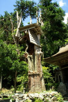 花背(はなせ)の峰定寺(ぶじょう-じ)は、大悲山(だいひざん、746m)の南西麓中腹にある。峰床山の西に位置し、桂川の源流の一つ寺谷(てらたに)川が境内南を流れている。 急峻な連山は聖地、修験道場であり、奈良の大峰山に対し、北大峰(きたおおみね)と呼ばれてきた。山が深いことから、古くは「鞍馬の奥」といわれ、落人の隠れ里になっていた。山号は大悲山という。 本山修験宗、本尊は十一面千手観音坐像。 ◆歴史年表 平安時代後期、1154年、2月、大峰、熊野の山岳修験者・三瀧上人観空西念の創建によるという。千手観音を石窟中に安置したことに始まるという。同年、鳥羽上皇(第74代)により勅願所になる。(『大悲山峰定寺縁起』) 1156年、護法殿、五所明神、宝蔵、湯屋なども建てられた。 1159年、平清盛は仏舎利、唐羅漢十六体を奉納している。 鎌倉時代後期、衰微する。 室町時代、鞍馬寺の末寺になる。 1326年、鞍馬寺との間で本末争論になる。比叡山延暦寺と園城寺(三井寺)信徒間での峰定寺支配を巡る諍いも起きた。一時は本山修験宗聖護院派に属したともいう。 南北朝時代、1350年、本堂(観音閣)が再建された。 江戸時代、1676年/延宝年間(1673-1680)、第111代・後西上皇の勅により、聖護院宮道祐親王が元快に命じて再興したともいう。 享保年間(1716-1736)、貴船成就院の元快により中興されたともいう。聖護院の支配下になり、修験道練行の道場になった。 天保年間(1830-1844)、庫裡が焼失し、寺宝の多くが失われた。 ◆三瀧上人観空西念 平安時代後期の天台宗の修験者・三瀧上人観空西念(?-?)。詳細不明。男性。武家の子に生まれた。25歳で剃髪し、聖になる。1156年、鳥羽法皇(第74代)の危篤の際に、召し出される。妃・美福門院の戒師になる。平清盛も心服した。1154年、大悲山の石窟中に千手観音を安置し、峰定寺を創建したという。 鳥羽法皇の受戒の師であり、護持僧だった。 ◆鳥羽天皇 平安時代後期の第74代・鳥羽天皇(とば-てんのう、1103-1156)。名は宗仁(むねひと)、法諱は空覚。京都の生まれ。父・第73代・堀河天皇、母・苡子(いし) (贈太政大臣・藤原実季の娘)。1103年、生後7カ月で立太子になる。1107年、5歳で即位する。祖父・白河法皇による院政が敷かれた。藤原忠実が摂政になる。 1113年、元服する。1123年、祖父・白河上皇により、子・顕仁(あきひと)親王(第75代・崇徳天皇)に譲位されられた。顕仁親王は白河上皇と鳥羽上皇中宮・待賢門院璋子との間の子と噂された。鳥羽上皇は、崇徳天皇を「叔父子」として嫌う。「新院」と呼ばれ、鳥羽離宮を居所にする。1129年、白河法皇の没後、治天の君(院と天皇の二重権力の競合併存)として院政を始める。1141年、出家し、空覚と称した。崇徳天皇に譲位させ、1142年、待賢門院璋子を遠ざけ、寵愛した家格の低い美福門院(藤原得子)との間の子・躰仁(なりひと)親王(第76代・近衛天皇)を3歳で即位させた。1155年、崇徳上皇と対立し、美福門院、藤原忠通らと謀り、異母兄・雅仁(まさひと)親王(第77代・後白河天皇)を皇位につけた。以後、皇位継承をめぐる朝廷内を二分しての対立になる。1156年、鳥羽天皇の没後9日目に、保元の乱が起きた。崇徳方は敗れ、崇徳上皇は讃岐に流される。 崇徳天皇(在位:1123-1142)、近衛天皇(在位:1142-1155)、後白河天皇(在位:1155 -1158)の3代28年にわたり院政を行う。藤原忠実の政権再登用後、摂関家を院近臣として従属させた。荘園公領制を確立し、荘園などを集積した。伊勢平氏を政権の基盤に取り込む。仏教に深く帰依し、最勝寺、六勝寺などを創建する。熊野参詣は23回行う。催馬楽(さいばら)、音律に通じた。京都で没した。54歳。 陵墓は安楽寿院陵(伏見区)になる。 ◆俊寛 平安時代後期の真言宗の僧・俊寛(しゅんかん、1143? -1179?)。山城(京都府)の生まれ。父・木寺法印寛雅。村上源氏源雅俊の孫。僧都になり、仁安年間(1166-1169)、父を継いで法勝寺執行になる。法勝寺領を管掌し、院関係の仏事を勤めた。1174年、八条院の御堂供養を行う。後白河院(第77代)の近習僧として仕えた。1174年、八条院の御堂供養なども行い、子・俊玄を法橋にした。1177年、平家横暴に抗し、藤原成親、成経父子、西光らと共に平氏打倒計画を企てる。謀議に、京都鹿ヶ谷の山荘を提供する。多田(源)行綱の密告で、平清盛によって捕らわれた。成経、平康頼とともに薩摩国・鬼界ケ島(硫黄島)に配流された。1178年、中宮徳子の御産に伴う大赦で成経、康頼は許され帰京した。俊寛は一人赦されず、その地で没した。(鹿ヶ谷事件)。37歳。 『平家物語』、能、浄瑠璃、歌舞伎などの題材になった。 鹿ヶ谷事件の際に、俊寛と妻子は一時、峰定寺境内に隠れ住んだという。潜んだという岩穴「獅子岩」も境内に残されている。一家は3年余り暮らし、冬の寒さのために妻と男児が近くの「なめら谷」(僧都谷)で亡くなった。生き残った娘は、奈良の寺に預けられたという。(『源平盛衰記』『平家物語』)。僧都もついに都に還ることはかなわず、流された島で亡く