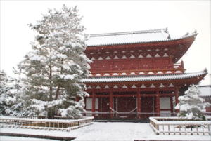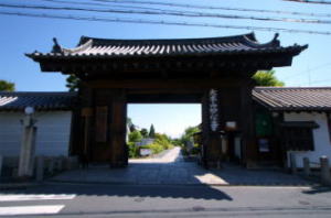 双ヶ丘の東、衣笠(きぬがさ)山の南に位置する妙心寺(みょうしん-じ)は、山号を正法山(しょうぼう-ざん)、法山ともいう。 豊かな自然環境のため、「西の御所」と呼ばれている。境内は10万坪(13万坪とも、33万㎡、東西500m、南北619m)の広大な敷地を有している。京童の囃子言葉では、「妙心寺の算盤面」といわれた。健全な禅は、安定した寺院経済を基礎にして成立するという伝統がある。 全国・世界に3400の末寺、在籍僧数7000人を数える。臨済宗妙心寺派の大本山であり、臨済宗14派の中でも最大の教団(全体の6割)を形成する。境内、境外には48の塔頭(子院)がある。このうち、山内塔頭は38院、境外塔頭は龍安寺を含めて10院ある。 臨済宗妙心寺派の大本山。本尊は釈迦如来像。 「ミシュラン・グリーンガイド・ジャポン1つ星観光地」(改訂第4版)に選ばれている。 ◆歴史年表 鎌倉時代、かつてこの地には、花園上皇(第95代、1297-1348)の離宮「萩原殿(はぎわらどの)」「萩原御所」「仁和寺花園御所」)が営まれていた。 南北朝時代、1337年/1335年/1338年/少なくとも1342年以前、開基の花園法皇は、譲位後に落飾し、禅寺に改める。勅願により美濃山中より関山慧玄(かんざん-えげん)を招いて開山とした。(『正法山妙心禅寺記』『開山国師別伝』『妙心寺六百年史』『祖伝考彙』・『六祖伝別考』)。山号寺号の由来は、慧玄の師・大徳寺開山の宗峰妙超(大燈国師)の拈華微笑(ねんげみしょう)の逸話から「正法山妙心寺」と命名された。釈尊が嗣法の弟子・摩訶迦葉(まかかしょう)に向かって述べた「正法眼蔵涅槃妙心」より採られている。法皇は、玉鳳院を建て、慧玄に参禅した。当初は大徳寺末寺だったという。 1338年、 花園法皇は、玉鳳院を建て、慧玄に参禅した。 1342年、花園法皇は仁和寺花園御所(萩原殿)跡を禅苑とし、慧玄に管領させた。(「妙心寺文書」・「院宣」)。妙心寺が開創になる。 1347年、花園法皇は死の前年に、寺の造営を願う「往年の宸翰(しんかん、直筆文書)」をしたためる。(「玉鳳院文書」・「往年の宸翰」)。寺領紛争が起こる。 1348年、旧11月、 花園法皇が亡くなる。 1351年、旧8月、光厳上皇(北朝初代)の院宣により、慧玄が帰山する。(「妙心寺文書」・「光厳上皇院宣」) 1360年、旧12月、慧玄が亡くなり、開山堂(微笑庵)に祀られた。 1361年、 慧玄の弟子、授翁宗弼(じゅおう-そうひつ)が住持になる。 室町時代、1398年、室町幕府3代将軍・足利義満の祈願所になった。 1399年、義満への謀反「応永の乱(大内義弘の乱)」が起る。住持の6世・拙堂宗朴(せつどう-そうぼく)が、乱に関与した守護大名・大内義弘と師壇関係にあり、義満の怒りを買う。宗朴は、その後も義弘との関係を解消しなかった。このため、宗朴は青蓮院に幽閉の身になる。寺領・寺地は、青蓮院の義円、南禅寺の徳雲院・廷用宗器(ていよう-そうき)に移された。宗器は寺名を「龍雲寺」に改め、徳雲院付属とし妙心寺は中絶した。 室町時代、妙心寺は大徳寺とともに、在野の寺院、「林下(りんか)」の代表にされた。 1432年/永亨年間(1429-1441)、南禅寺・宗器より根外宗利に寺領が返還される。尾張犬山・瑞泉寺から入寺した後の7世・日峰宗舜は、管領・細川持之の外護により開山堂を再興し、中興の祖になった。方丈、開山堂の微笑堂を復興する。 文安年間(1444-1449)、8代将軍・足利義政により寺領が寄付されている。 1448年、細川持之は養源院(日峰塔所)を建立した。 1450年、細川勝元は龍安寺を建立する。 1462年、9世・雪江宗深(せっこう-そうしん)は、妙心寺、龍安寺の住持になる。宗深は、妙心寺の再中興開山になる。 1467年、応仁・文明の乱(1467-1477)で多くの堂塔を焼失した。 文明年間(1469-1487)、中興事業がなり、大徳寺と対抗するまでに栄えた。 1476年、会計簿(米銭納下帳、日単簿)が作成され、財政の立て直しが行われる。 1477年、旧閏1月、宗深が第103代・後土御門天皇の綸旨を奉じて再興した。細川勝元・政元親子らの援助を得る。(「妙心寺文書」)。方丈が上棟される。宗深は中興の祖になった。 1480年、政元は衡梅院(雪江宗深塔所)を建立した。 1481年、政元は四派の一つ龍泉庵を建立する。 1484年、利貞尼(りていに)は境内地を寄進し、四派の一つ東海庵を建立した。 1486年、政元は妙心寺を再興する。 永正年間(1504-1521)、17世・鄧林宗棟(とうりん-そうとう)の時、大徳寺より独立している。(「妙心寺文書」・「正法山誌」) 1507年、宗棟は、勅許により、奉勅入寺式を挙行した。妙心寺の大徳寺からの独立を意味した。細川澄元の軍勢がこれを警護した。 1509年、第104代・後柏原天皇の綸旨により、独立本山とし、紫衣勅許の禅寺、大徳寺と同格の寺になる。宗棟が住し、奉勅入寺の制が始まるともいう。妙心寺と大徳寺は絶交する。 美濃加茂城主・斎藤利国の妻の利貞尼が、仁和寺真乗院領の土地を買い求め、妙心寺に寄進、境内は3倍に広がる。賦課金制度が始まる。(「妙心寺文書」) 1516年、大休が住した。 1523年、塔頭の龍泉庵、東海