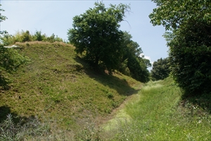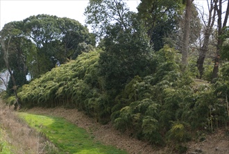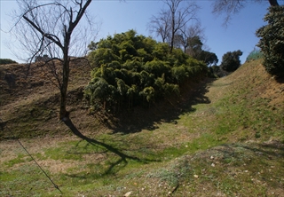 鷹ヶ峯(たたがみね)周辺に、大宮御土居(おおみや-おどい)の遺構が国の史跡として保存されている。 御土居(お土居)は、安土・桃山時代に豊臣秀吉が築造させた。 ◆歴史年表 安土・桃山時代、1591年、豊臣秀吉により御土居は築造された。 近代、1919年、「史蹟名勝天然祈念物保存法」が施行される。 1930年、京都市内の御土居8カ所が国史跡指定地になる。 ◆豊臣秀吉 室町時代後期-安土・桃山時代の武将・豊臣秀吉(とよとみ-ひでよし、1537-1598)。男性。幼名は日吉丸、初名は木下藤吉郎。小猿と呼ばれた。父・尾張国(愛知県)の百姓、織田信秀の足軽・木下弥右衛門、母・百姓の娘・なか(天瑞院)。1551年、家出し、後に今川氏の家臣・松下之綱、1554年、織田信長に仕える。1561年、浅野長勝の養女・ねねと結婚し、木下藤吉郎秀吉と名乗った。戦功を重ね、1573年、小谷城主、羽柴姓と筑前守、信長の天下統一にともない西国転戦した。1582年、備中高松城の毛利軍と戦いの最中に本能寺の変が起こり和睦した。軍を返し山崎で明智光秀を討つ。1584年、小牧・長久手で織田信雄、徳川家康の連合軍に敗れる。1585年、紀州根来と雑賀、四国・長宗我部元親を服した。関白に進む。1586年、聚楽第、広寺大仏造営に着手し、太政大臣に昇り豊臣の姓を賜わる。1587年、九州征討、聚楽第が完成する。10月、北野天満宮で北野大茶湯を催した。1588年、第107代・後陽成天皇が聚楽第を行幸する。検地、刀狩を行う。1590年、小田原の北条氏直らの征討、朝鮮使を聚楽第に引見した。1591年、利休を自刃させる。1592年、文禄の役を始めた。甥の養子・秀次に関白職を譲り、太閤と称した。1593年、側室淀殿に秀頼が生まれると、1595年、秀次を謀反人として切腹させ、妻妾子女らも処刑した。1597年-1598年、朝鮮を攻めた慶長の役に敗れた。1598年、3月、醍醐寺で「醍醐の花見」を行う。8月、伏見城で没した。62歳。 「普請狂」と称された。京都で「都市改造」を行う。1585年-1591年、洛中検地・洛中地子免除(1591)、1586年よりの方広寺大仏建設、1586年-1587年、聚楽第・周辺の武家邸宅街建設、1589年、禁裏・公家町の修造整備、1590年、新町割建設(短冊形町割)、1590年、三条大橋などの橋梁・道路建設、1591年、御土居築造、寺院街(寺町・寺之内)建設、1595年、方広寺大仏、1597年、伏見城を建てた。ほか、関所廃止、楽市・楽座制、重要都市・鉱山直轄、貨幣鋳造、太閤検地・刀狩、伏見の城下町化、宇治川の整備、倭寇取締、朱印貿易などを進めた。没後、豊国廟に豊国大明神として祀られた。 ◆大宮御土居 「大宮御土居」(北区大宮土居町玄琢下)は、御土居の北西端になる。北東から南西方向にあり、保存状態が最も良い遺構になる。 起伏ある傾斜地に250 mにわたり保存されている。大規模な堀・土塁構造が見渡せる。土塁には竹、樹木などが生い茂り、堀の一部は湿地化している。 ◆御土居 室町時代後期、応仁・文明の乱(1467-1477)後、高倉より東、松原以南は、相次ぐ鴨川の氾濫により荒地になった。 安土・桃山時代、1591年に、豊臣秀吉(1536-1598)は京都の再興・改造を手がける。細川幽斉(1534-1610)、前田玄以(1539-1602)などに命じ、洛中の周囲をめぐらせる堤防・惣構施設の「御土居」の築造させた。諸国大名らにより同年1月に着工になり、閏1月に2カ月で完成したという。(近衛信尹『三藐院記[さんみゃくいんき]』)。また、2-4カ月/5カ月の突貫工事で完成させたともいう。 御土居は、北は上賀茂・鷹ヶ峰、西は紙屋川(天神川)・東寺の西辺、南は東寺南の九条通、東は鴨川西岸の河原町通まで築かれた。当時存在していた聚楽第、京都御所も土塁内側に取り囲んでいる。規模は、東西3.5km、南北8.5km、総延長は22.5kmにもなった。 御土居は、当初「土居堀」と呼ばれた。ほかに「京廻りノ堤」、「新堤」、「惣曲輪(そうぐるわ)」、「土居」などとも呼ばれ、江戸時代には「御土居」と称されるようになる。 御土居の構造は外側に堀(濠)、内側に台形状の土塁を築いた。工法は「掻揚城(かきあげしろ)」が採られ、掘った堀の土を積み上げて土塁を築き、積石・石垣で地盤を固めた。墓石・地蔵なども「礎石」として使われている。なお、当時の構築物では一般的なことだった。掻揚だけでは、土塁を築く土量が不足したとの見方もある。 土塁規模は一定しておらず、高さ3.6-5.4/6m、基底部幅10-20m、頂上部幅4-8m、犬走り1.5-3mあった。土塁頂上は、盛土の保護・強度を増すために竹林が植えられ覆われていた。このため、竹薮の伐採は厳禁された。土塁の外には、堀(幅3.6-18m/12.5-20m、深さ1.5-2.5m)が設けられていた。堀は河川・池・沼などの自然地形も利用して築造されている。堀には水が溜められ、江戸時代には、農業用水としても利用されている。 御土居には「京の七口」と呼ばれる出入口が開けられ、主要な街道に通じていた。出入口は特定されず、当初は10カ所あり、江戸時代前期には40カ所にも増えたという。 「普請太閤」といわれた秀吉の御土居築造の意図は、複