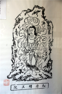 石不動之町(いしふどうの-ちょう)の東南隅に明王院(みょうおう-いん)はある。「明王院不動寺」、「不動寺」とも、「南岩倉」、「北向き不動尊」ともいう。松原通にあるため「松原不動(まつばら-ふどう)」「松原の不動さん」ともいわれている。山号は青蓮山という。 真言宗東寺派。本尊は石仏不動明王を安置する。 無病息災、交通安全の信仰を集める。 ◆歴史年表 創建、変遷の詳細は不明。 飛鳥時代、朱雀年間(684-685)/691年、道観大徳が開基した。当初は法相宗(ほっそうしゅう)の寺だった。開創当時、一帯には鬱蒼とした松林があり、丘があったという。寺域については不明。 平安時代、794年、平安京遷都の際に第50代・桓武天皇は、詔勅により王城鎮護のために平安京の東西南北に四つの磐座を定めた。明王院はその一つとされ、「南岩倉」と称されたという。空海(弘法大師、774-835)は石仏を造り丘に安置したという。また後に、空海作という石仏不動明王を安置し、現在の宗派・真言宗東寺派に改宗したともいう。 平安時代前期、石不動之町南は、藤原良相(813-867)の崇親院(すうしんいん)の敷地内にあったという。(『拾芥抄』) 天暦年間(947-957)、鴨川氾濫により堂宇が流される。その後、勅を受けて比叡山の天台宗・苔莚(たいえん)法師により再興されたという。 室町時代、応仁・文明の乱(1467-1477)後に荒廃し、石像も塵芥に帰したという。 安土・桃山時代、1586年、豊臣秀吉は、当寺の苔むした本尊・不動明王を知り、聚楽第に遷したという。不動明王が夜な夜な霊光を放ったため、再び旧地に還された。この地に堂舎を建て奉安したという。 江戸時代、1637年、寺域は現在地、「石不動丁」にある。(「洛中絵図」) 近代、1945年末期、太平洋戦争(1941-1945)の空襲に備え、本尊は本堂下の磐座に遷された。 現代、2012年、牛若丸・弁慶の旧「五条大路」活性化の一環として、ご開帳を盛大に執行した。 ◆道観大徳 飛鳥時代の法相宗の僧・道観大徳(?-?)。詳細不明。朱雀年間(684-685)/691年、明王院を開基したという。 ◆空海 奈良時代-平安時代前期の真言宗の開祖・空海(くうかい、774-835)。男性。俗姓は佐伯氏、幼名は真魚(まお) 、諡号は弘法大師。讃岐国(香川県)の生まれ。父・豪族の佐伯田公(義通)、母・阿刀氏。788年、15歳で上京し、母方の叔父・阿刀大足に師事し儒学を学ぶ。791年、18歳で大学明経科に入るが、中途で退学し私渡僧(しどそう)として山岳修行を始め四国の大滝岳や室戸崎などで山林修行した。797年、『聾瞽指帰(ろうこしいき)』を著す。798年、槙尾山寺で沙弥となり、教海と称する。804年、東大寺戒壇院で具足戒を受ける。遣唐使留学僧として唐へ渡り、805年、長安・青竜寺の恵果(けいか)により両界、伝法阿闍梨の灌頂を受ける。806年、当初の20年の義務期間を2年に短縮して帰国、多くの経典、密教法具などを持ち帰る。入京できず太宰府・観音寺に住した。809年、入京を許される。810年、高雄山寺(神護寺)を経て、811年、乙訓寺に移り、約1年間任に当たった。別当になる。812年、乙訓寺を訪れた天台宗開祖・最澄は、空海と会っている。その後、空海は高雄山で最澄らに金剛界結界灌頂を行った。後、二人は決裂し、断絶する。813年、東大寺別当、819年頃/818年、高野山を開く。822年、東大寺に灌頂道場(真言院)を開く。823年東寺を真言密教の道場にした。824年、高雄山寺を神護寺と改名する。神泉苑で祈雨の修法を行う。827年、大僧都となる。828年、綜芸種智院を創立した。832年、高野山で万灯会、834年正月、宮中中務省で後七日御修法を営む。830年、『秘密曼荼羅十住心論』を著す。高野山で亡くなり、東峰に葬られた。62歳。 ◆藤原 良相 平安時代前期の官僚・藤原 良相(ふじわら-の-よしみ/よしすけ、813-867)。父・藤原冬嗣(ふゆつぐ)、母・尚侍(ないしのかみ)藤原美都子(みつこ)の第5子。兄は良房。仏教に帰依し、東六条の崇親院(すうしんいん)に貧困の一族の子女を収養した。蔵人、左近衛(さこのえ)少将になる。842年、承和の変で兵衛の兵40人を率いて行動した。848年、参議、右大弁、陸奥出羽按察使(あぜち)、春宮大夫(とうぐう-だいぶ)を経て、中納言から大納言近衛大将になった。857年、右大臣になる。866年、応天門の変後に致仕を願ったが許されず没した。54歳。 良房政権を支えた。『貞観格式(じょうがんきゃくしき)』『続日本後紀』の編纂に加わる。 ◆苔莚 平安時代?の天台宗の僧・苔莚(たいえん)。詳細不明。苔莚法師。勅により明王院を再興したという。 ◆本尊 本尊「石像不動明王」は、平安時代初期の空海(774-835)作という。空海は石仏を造り、丘に安置したという。また後に、空海作という石仏不動明王を安置し、真言宗東寺派に改めたともいう。 近代、1945年末期、太平洋戦争(1941-1945)による空襲に備え、本尊は本堂下の磐座に遷された。現在もそのまま安置されている。 ◆岩倉 平安時代前期、794年の平安遷都の際に、都の東西南北にそれぞれ岩倉(磐座)が設けられた。各岩倉(四岩倉)に
