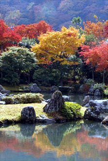 天龍寺(てんりゅう-じ)は、境内10万㎡を有する。日本で最初に史跡・特別名勝に指定された。山号は霊亀山(れいきさん)という。百人一首の小倉山別称の亀山に由来する。正式には天龍資聖禅寺(てんりゅう-ししょうぜんじ)という。 臨済宗天龍寺派の大本山。本尊は釈迦如来。 1994年に、「古都京都の文化財」として、「世界遺産条約」に基づく世界文化遺産に登録されている。「ミシュラン・グリーンガイド・ジャポン1つ星観光地(庭園も1つ星)」(改訂第4版)に選ばれている。天龍寺庭圉は、「美しき日本-いちどは訪れたい日本の観光遺産」(日本交通公社、1999年)の一つに認定された。「京都市のバリアフリー・車椅子の方にもおすすめできる神社・寺院スポット一覧 (10件)」(介護アンテナ)の一つに選ばれている。 ◆歴史年表 平安時代初期、承和年間(834-848)、この地には、第52代・嵯峨天皇皇后・橘嘉智子(檀林皇后)の旧嵯峨院別館があった。皇后は別館を日本初の禅寺・壇林寺に改める。 その後、第60代・醍醐天皇皇子・前中書王兼明親王(さきのちゅうしょおう-かねあきら-しんのう、914-987)の亀山の山荘が営まれている。 第66代・一条天皇(在位: 986-1011)の頃、荒廃した。 鎌倉時代、1255年/建長年間(1249-1256)、後嵯峨上皇(第88代)により、仙洞御所(仙洞亀山殿、嵯峨殿)が営まれた。権大納言・西園寺実雄が造営の指揮をとる。広大な土地を有し、北は野宮神社、南は大堰川にまで及んだ。(『古今著聞集』巻8) 亀山上皇(第90代、1249-1305、在位:1259-1274)の離宮「亀山殿」が建てられる。第96代・後醍醐天皇(1288-1339)は、幼少期をこの地で過ごし修学する。 南北朝時代、1335年、第96代・南朝初代・後醍醐天皇は、亀山殿内に臨川寺を建立し、開山に夢窓疎石を迎えた。 1338年、後醍醐天皇の没後、足利尊氏は、夢窓疎石の勧めにより天皇の菩提を弔うために、亀山殿の地を新寺の建立地にする。 1339年、旧10月、光厳上皇(北朝初代)による院宣が下される。(「天龍寺重書目録」)。夢窓を開山、尊氏を開基として、勅願寺が創建された。当初は元号により、「暦応資聖(ししょう)禅寺」と称した。夢窓が住持を辞し、等持院主・古先印元を大勧進とした。都寺妙了と共に住持代行する。尊氏は荘園を寄進した。 1340年、仏殿、法堂、僧堂、庫裏、三門の造営工事が始まる。(『造営記』)。造営料所として尊氏の日向国、阿波などの庄を寄進し、光厳上皇は丹波弓削庄地頭職を寄進する。 1341年、夢窓が住持に復する。尊氏、夢窓も普請に加わり、芝土籠に土を入れ御堂へ運ぶ。寺号「暦応資聖禅寺」について、比叡山延暦寺などの反発により、直義が見たという大堰川から天に昇る金龍の夢(瑞夢)により、旧7月、「天龍資聖禅寺」に改められた。旧12月、直義により造天龍寺宋船(天龍寺船)2隻の元王朝派遣の許可が下りる。直義は、天龍寺を五山十刹位第2位にした。 1342年、旧4月、将軍・足利尊氏は、天龍寺を京都五山の第2位に定めた。秋、寺の造営費捻出のために、夢窓により、元へ貿易船、「造天龍寺宋船(天龍寺船)」が派遣される。国内に元の文物が持ち込まれ、莫大な利益をもたらした。法堂上棟、三門立柱し、尊氏、直義が参詣する。 1343年、仏殿、法堂、土地堂、祖師堂、方丈、書院、庫裏、三門、外門、総門、鐘楼など70余りの伽藍が完成する。(『造営記』)。春、天龍寺船が帰港した。 1344年、後醍醐天皇の霊廟が完成する。(『天龍紀年考略』)。ほぼ寺観を整える。北朝初代・光厳天皇が行幸した。 1345年、仏殿、法堂が完成し、後醍醐天皇の七回忌に、開堂法要が執り行われた。落慶法要は、夢窓が導師を務めた。尊氏、直義、守護大名など多数が参加した盛大なものになる。光厳上皇の臨幸供養は、延暦寺衆徒の延暦寺、東大寺以外の臨幸供養は認められないとした強訴により、取り止めになる。翌日の御幸になる。尊氏、直義も法会に加わる。(『太平記』『園太暦』『帥卿記』)。北朝第2代・光明天皇が入山する。夢窓により庭園が完成した。当時の境内は、東は釈迦堂、西は亀山、南は嵐山、北は法金剛院に及び、36町を有していた。 1346年、夢窓が「天龍寺十境」を定める。仏徳を賛美する韻文・頌(じゅ)を作る。光厳上皇が臨幸した。夢窓は雲居庵に退隠する。 1347年、光厳上皇が臨幸する。 1348年、輪蔵が完成した。 1350年、旧8月、光厳院、光明院が臨幸する。(『臨幸記』) 1351年、旧7月、僧堂が完成する。(天龍寺紀年考略)。夢窓が再住し、後醍醐天皇十三年忌仏事後、退院した。 1356年、焼失する。 1358年、旧1月、多くの伽藍が焼失した。雲居塔、多宝院、亀頂塔、霊庇廟は焼失を免れた。(『空華日用工夫略集』)。龍山徳見(りゅうさん-とくけん)を住持に再任し、春屋妙葩(しゅんおく-みょうは)が復興大勧進職に就く。(『園太暦』)。旧9月、将軍・足利義詮は、天龍寺を京都五山の第2位にする。(1度目の大火災) 1359年、幕府は天龍寺再建のために、棟別銭を徴する。 1360年、春屋は足利基氏の要請により、夢窓直弟子10人を鎌倉