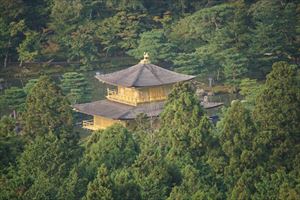 金閣寺(きんかく-じ)は、北に大北山(おおきたやま、左大文字山)、南西に衣笠山を望む。境内は4万坪(132 231.4㎡)の広さがある。 正式には北山鹿苑禅寺(ほくざん-ろくおんぜんじ)と呼ばれている。金閣寺の寺名は、釈迦の骨(舎利)を祀る建物、舎利殿「金閣」に因む。山号の北山(ほくざん/きたやま)は、一帯の山が北山(きたやま)と呼ばれることに因んでいる。 臨済宗相国寺派山外塔頭、特別別格本山(特例別格地)。本尊は1面2臂の聖観世音菩薩坐像。 1994年、「古都京都の文化財」の一つとして世界文化遺産に登録された。「ミシュラン・グリーンガイド・ジャポン 3つ星観光地」(改訂第4版)に選ばれている。鹿苑寺(金閣寺)・鹿苑寺庭園は、「美しき日本-いちどは訪れたい日本の観光遺産」(日本交通公社、1999年)の一つに認定された。 石不動明王は、首から上の病平癒、眼病平癒の信仰を集める。 ◆歴史年表 平安時代中期、この地は伯家(初代、花園天皇孫・延信親王)が所有していた。 鎌倉時代、1220年、公卿・西園寺公経が尾張の家領と交換し、この地を仲資王より手に入れ、寺院を営んだという。 1224年、西園寺公経の別荘「北山第(ほくさんだい/きたやまだい)」が建てられた。広大な境内を持つ別荘・氏寺である浄土宗の西園寺があった。さらに、複数の院坊、善積院、功徳蔵院、妙音堂、不動堂、五大堂、成就心院、法水院、化水院、無量光院などが建てられ、寝殿、滝、池も造られた。 1224年、西園寺で公経が亡くなる。 1225年、『明月記』に西園寺の記述がある。 1285年、北山第で西園寺実氏の妻・貞子の九十の賀が行われる。後宇多天皇、後深草院、亀山院が参加した。 南北朝時代、1335年、西園寺公宗が北条氏と謀反を起こしたとして処刑され、以後、西園寺家は衰微し、寺も荒廃する。 1362年、北朝第4代・後光厳天皇が北山に滞在する。境内は荒廃した。 室町時代、1394年、足利義満は、西園寺家の山荘を譲り受けたともいう。 1397年、義満は、河内国の領地との交換により、西園寺家から別荘を譲り受け大改修した。「北山第/北山殿(きたやまだい)」と名づけ、立柱、上棟になる。敷地には、義満のための北御所、夫人・日野康子の南御所、祟賢門院(後光厳天皇典侍)の御所、舎利殿の金閣、金閣と二層の廊下で繋がっていたという会所の天鏡閣、泉殿などが数多くの建物が建ち並んだ。西園寺は、室町頭(上京区)に移った。守護大名・大内義弘は、義満が造営に際して諸大名に人数の供出を求めたことに対し、唯一拒否し不評を買う。 1398年、金閣が建立される。義満は北山第に移り住み本邸にした。以後、亡くなるまでの10年間は、この地が政治の中心として機能した。義満は寝殿で安鎮法を修する。室町の邸は義持に委ねられた。 1399年、義満は相国寺に完成した七重大塔供養に、北山殿より出かけた。この頃より義満は定住する。義満は北御所、正室・日野康子は南御所、後円融天皇母・崇賢門院の御所という三御所が建てられていた。 1401年、北山第で沙汰始が行われる。政務が始まる。 1402年、義満は明よりの使者を北山殿に迎え歓待する。明の建文帝は、「爾日本国王源道義(義満)」の返書を送っている。以後、1407年まで明よりの使者を北山殿で歓待する。 1403年、義満は北山殿で受戒する。 1404年、義満は明よりの使者(正使・副使)と会う。使者は「日本国王之印」、永楽勘合を携える。前年に焼失した相国寺の七重塔の再建が企図され、北山殿で立柱式が行われた。北山第2期工事が始まる。 1408年、南北朝統一後、北朝第6代・歴代第100代・後小松天皇が、21日間にわたり行幸(北山殿行幸)し、「三舟三席の会」が催される。義満は次男・義嗣を親王として披露する。(『北山殿行幸記』)。世阿弥らは、2日間に渡り猿楽能を演じた。その宴の2カ月後、旧5月、義満は死去する。遺体は等持院に移され荼毘に付された。義満没後、康子はしばらく暮らした。父・義満に反感を抱く子・4代将軍・義持は、北御所に入る。 1409年、義持は三条坊門殿に移る。北山殿の建物が破却され、新御所に移された。北山殿は日野康子の居所になる。 1414年/1416年、北山殿の造営中の相国寺七重塔(北山大塔)が落雷により焼失したともいう。 1419年、康子が逝去する。北山殿の破却が行われる。舎利殿、護摩堂、法水院は残ったともいう。 1420年、義持は、紫宸殿(南禅院へ移築)、天鏡閣(南禅寺へ移築)、懺法堂(等持寺へ移築)、公卿間(建仁寺へ移築)などを解体した。この年以前、残された舎利殿は、禅寺の北山鹿苑寺とされる。勧請開山は臨済宗の禅僧・夢窓疎石(但し1351年没)による。開基は義満による。鹿苑寺の寺号は、義満の法号「鹿苑院殿」による。 1422年、義持が参詣する。文献初出の「北山鹿苑寺」があり、室町殿が渡御したという。(『兼宣公記』) 1438年、禅寺になる。 1439年、それまでの度弟院(つちえん)から十方刹(じっぽうさつ)に変わり、大愚性智が就いた。 1441年、「籤引き将軍」といわれた6代将軍・義教が暗殺された「嘉