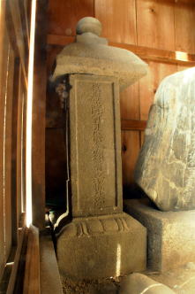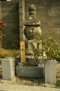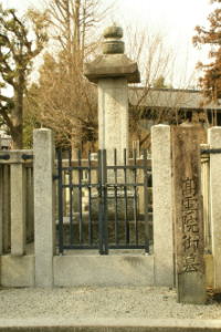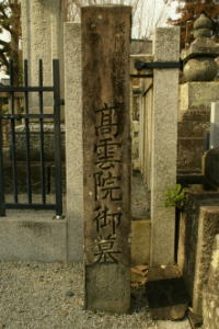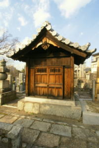 ![]() 施薬院全宗の墓、木堂に覆われた複数の墓石の一つ。 |