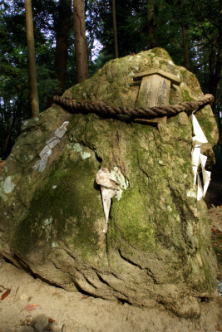 ![]() 【参照】比叡山中の横高山(767m)近くの垂釣岩(鯛釣岩)という大岩、磐座という。 |