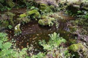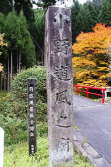 洛北・杉坂に道風神社(とうふう-じんじゃ)はある。「とうふう-さん」「武(たけ)神社」とも呼ばれている。小野道風(おの-の-みちかぜ/とうふう)の書栄達に因み、氏神として当社に祀られたという。一帯の産土神として信仰されてきた。 祭神は小野道風を祀る。 ◆歴史年表 創建、変遷の詳細は不明。 平安時代、920年、創建されたともいう。(社伝) 安土・桃山時代、1563年、放火により焼失し、古文書などを失う。 江戸時代、境内の下にあった明王寺の管理下に置かれたという。 ◆小野道風 平安時代前期-中期の貴族・能書家・小野道風(おの-の-みちかぜ/とうふう、894-967/964)。男性。本名は「みちかぜ」、「とうふう」は後世に尊び音読みされた。尾張(愛知県)の生まれ。父・大宰大弐・小野葛絃(くずお)。祖父・漢学者・歌人・小野篁(たかむら)、好古(よしふる)の弟。官途は右衛門少尉、中務省の少内記で、宮中で用いる屏風に書をしたため、公文書の清書などの執務を行う。内蔵権助、右衛門佐、木工頭、正四位下・内蔵頭を歴任した。第60代・醍醐天皇、第61代・朱雀天皇、第62代・村上天皇に仕えた。真跡とされるものに「智証大師諡号勅書」「屏風土代」「玉泉帖」など。『後撰和歌集』に入集。73歳。 書道に優れ、中国の「書聖」・王羲之の書風を基礎とし、平安時代初期の唐様に対し、優雅な和様書風の基礎を築く。書風は「道風様」と呼ばれ、後世「野蹟(やせき)と称された。10世紀頃活躍した「三蹟(ほかに、藤原佐理[すけまさ]、藤原行成))」の一人。村上天皇・朱雀天皇の大嘗会に悠紀主基(ゆきすき)屏風の色紙形(しきしがた)を清書し、願文・上表文の清書・門額揮毫、紫宸殿賢聖障子銘の執筆など行う。朝廷は書を唐に送り国の誉れとした。『源氏物語』の「絵合」に「今めかしう」と評される。平安時代後期、『江談抄』『今昔物語集』に語られる。鎌倉時代に、弘法大師と並び称せられ、江戸時代に、柳に飛びつく蛙を見て書道に精進したという訓話が生まれ、歌舞伎「小野道風青柳硯」にもみえる。 ◆社号 かつて、武明神社、武宮、道風武大明神、瀑ノ社とも称された。 これらの「武」の字とは、この地にあった滝の滝大明神の「タキ」が「タケ」に転訛したことに因むともいう。 また、境内に「和香(わこう)水」が湧水し、和香社とも呼ばれたという。 ◆杉坂八景 かつて「杉坂八景」という呼称があった。季子山(境内裏山)、積翠池、武神祠(本殿)、長公川(杉坂川)、盃瀬井(手洗い場)、明王堂、思君橋、和香水の八景になる。 ◆明王寺 かつて社の下(上宿)に神宮寺の明王寺という寺があり、宮僧の宿舎だったという。小野道風も明王寺で業を修めたとされる。 江戸時代、社はその所管となったという。その後、1869年に廃寺になる。 現在、境内に明王寺跡があり、境内の明王堂には不動明王が祀られている。寺宝の一部は、近くの地蔵院に移されたという。 ◆名水 ◈現在も境内には、「和香(わこう)水」「積翠池」で知られる名水の井戸が残されている。水は、かつて禁中御修法(みしほ)用として献上されていたという。平安時代の第63代・冷泉天皇(950-1011)が御所まで運ばせていたという。以後、歴代天皇がこれに倣った。 ◈小野道風(894-967/964)は、杉坂、産土神の和香社より湧出した雲水を所望し、明王寺で業を修めたという。 水は、硯の水に使うと書道上達するとされた。道風も用い、「道風水」と呼ばれた。道風に倣い人々も研滴としても用いたという。 ◆樹木 ◈境内には、サカキの大木が4本ある。京都市の巨木に指定されている。幹周り1.4m/1.5m、高さ10m以上。ほかにも3本ある。 ◈スギ林がある。 ◆文化財 ◈「道風宮雅録」「道風朝巨画像」。 ◈道風の遺品と伝えられる唐鏡、青い硯、唐筆、硯屏、筆立、卦算、粉状になった着物などがある。 ◈後水尾院御点作朗詠集、霊元法皇御寄附葉菊御紋附幕及提灯など。 ◆年間行事 歳旦祭(1月11日)、秋季例大祭(10月15日)、お火焚まつり(11月3日)。 *年間行事は中止・日時・内容変更の場合があります。 *年号は原則として西暦を、近代以前の月日は旧暦を使用しています。 *参考文献・資料 『京都・山城寺院神社大事典』、『京都大事典』、『京都の寺社505を歩く 下』、『京都隠れた史跡の100選』、『京都 神社と寺院の森』、『京都発見三 洛北の夢』、『昭和京都名所図会 3 洛北』 、ウェブサイト「コトバンク」 ![]() ![]() ![]() ![]() ![]() |