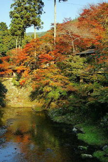 高雄山の西、清滝川に架かる指月橋を渡り、石段を上がったところに西明寺(さいみょう-じ)はある。 「三尾(さんび)の名刹」(ほかに高雄[尾]山神護寺、栂尾山高山寺)の一つに数えられた。山号は槙尾(まきのお/まきお)山、院号は平等心王院(びょうどう-しんのういん)という。 古義真言宗大覚寺派の準別格本山、本尊は釈迦如来像。 金運のお守り、「倍返り御守」が授けられる。 ◆歴史年表 平安時代、天長年間(824-834)、空海の弟子・甥の智泉大徳(789-825)が開創したという。当初は、神護寺の別院だったという。その後、荒廃する。 鎌倉時代、建治年間(1275-1278)、和泉国槙尾山寺(施福寺)の我宝自証(自性上人)が再興し、比丘(出家者)の律院とした。 1288年/1290年、第91代・後宇多天皇の発願により、平等心王院の院号になり、神護寺より独立している。堂塔が建てられる。 室町時代、永禄年間(1558-1570)、兵火により焼失する。その後、神護寺に合併になり、別院とされた。 安土・桃山時代、1602年、明忍律師(1576-1610)により再興され、真言有部律の本寺になった。 江戸時代、1700年/1699年/元禄年間(1688-1704)、第5代将軍・徳川綱吉の母・桂昌院(1627-1705)の帰依により再建されたという。また、第108代・後水尾天皇中宮・東福門院(1607-16782)の寄進ともいう。 近代、1868年、神仏分離令後の廃仏毀釈により、明忍の開創した戒律道場は廃止された。 ◆智泉大徳 奈良時代-平安時代前期の僧・智泉大徳(ちせん-だいとく、789?-825?)。男性。智泉。讃岐国(香川県)の生れ。父・滝宮龍燈院の姓は菅原氏、母・阿刀氏(後・智縁尼)で弘法大師の姉という。797年、9歳で空海の弟子になった。また、空海に連れられ、大安寺・勤操に預けられたともいう。802年、空海の近士になる。804年、受戒し、空海の乗る遣唐使に侍者として同行したという。大同年間(806-810)、空海から両部灌頂を受けたという。806年、岩船寺の報恩院を建立する。809年、第52代・嵯峨天皇の勅命により、空海が高雄山寺に入る。智泉も随行したという。812年、最澄から書簡と進物を受け、空海へのとりなしを依頼される。弘仁年間(810-824)、空海に随い高野山に上り、草庵(後・東南院)を建て伽藍整備を行う。高野山東南院で没した。智泉大徳廟がある。37歳。 空海門下第一の秀才と評され、十大弟子、四哲の一人とされた。空海は「密教のことは智泉に任す」と称えた。空海は若くして亡くなった智泉を悼み「為亡弟子智泉達嚫文」(『性霊集』巻8)を残している。嵯峨天皇皇后・橘嘉智子(檀林皇后)が帰依したる。空海より「うどんの祖」を伝授され、故郷滝宮の両親をもてなしたのが、讃岐にうどんが伝わった最初という。 ◆我宝自性 鎌倉時代後期の僧・我宝自性(がほう-じせい/じしょう、?-1317)。詳細不明。男性。字は自性、自性上人と尊称された。自証。顕密の学に通じ、学徒が多く集まる。和泉国槙尾山寺(施福寺)の僧という。西明寺中興の祖という。 ◆明忍律師 安土・桃山時代-江戸時代前期の僧・明忍律師(みょうにん-りっし、1576-1610)。男性。俗姓は中原、字は俊正。京都の生れ。父・少内記康雄。7歳で高雄山・晋海僧正の弟子になる。21歳で出家した。西大寺の寥海(りょうかい)、友尊と廃れていた律の復興を志した。奈良・西大寺で学ぶ。高山寺で戒師なしで自誓(じせい)受戒した。廃寺になっていた槙尾・西明寺に庵を結び、律宗を中興する。1607年、明に渡るために対馬に滞在中に病死した。35歳。 真言律宗は、律と真言宗を統合している。槇尾山平等心王院を復興した。5代将軍・徳川綱吉の母・桂昌院が帰依した。 ◆仏像 ◈本堂の本尊「釈迦如来立像」(51.5/52㎝)(重文)は、鎌倉時代、仏師・運慶作ともいう。唐様須弥壇上厨子内に安置されている。本尊は、鎌倉時代前期、1204年に釈迦を深く慕った明恵が造らせたともいう。厨子は成忍筆という。(『山城名勝志』)。本尊は、明恵の自刻とも、明恵が像を縮小、模刻させたともいう。 清凉寺式釈迦如来像であり、生前の釈迦如来の面影を伝える。木造、素地。 厨子両扉に文殊菩薩・普賢菩薩が描かれており、本尊と合わせて釈迦三尊像になる。 ◈ 脇陣、脇待の「十一面千手観世音菩薩立像」(重文)(175㎝)は、平安時代の作、鎌倉時代作ともいう。頭上に十面を敷き、宝冠、四十二手になる。子授けの信仰がある。木造。 ◈ 脇陣、「愛染明王像」は、鎌倉時代後期の慶派の仏師作になる。三つの目をもち、五鈷の獅子冠、開口して牙先を現わし、六臂の手に法具や弓箭などを持つ。中興の祖・我宝自性上人の念持本尊という。 ◆建築 ◈ 「本堂」(京都市指定有形文化財)は、江戸時代前期、1700年に桂昌院(徳川5代将軍・徳川綱吉の母)の寄進により再建された。中央間に内陣、後方に四天柱を建てる。唐様須弥壇に厨子が安置されている。両横の脇陣が外陣になる。桁行7間、梁行4間。 ◈ 「客殿」は、江戸時代前期に移築された。当時は食堂(じきどう)として使われていた。前列二室、後列三室からなり、前列南室には、安土・桃山時