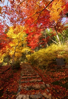 嵯峨野北ノ段町に直指庵(じきし-あん)はある。山号は祥鳳山という。 浄土宗系単立、本堂に本尊の阿弥陀如来像を安置する。 文殊菩薩は知恵の寺めぐり(京都文殊霊場)の第6番。 ◆歴史年表 江戸時代初期、1646年、黄檗宗の独照性円(どくしょう-しょうえん)が、草庵「没蹤(もっしょう)庵」をこの地に営んだのが起こりという。隠元(1592-1673)も滞在し、この地に黄檗本山を創立しようとした。だが、大覚寺領だったため果たせなかったという。独照は、枯れ松の枝が池に落ちるのを見て悟った。黄檗宗の正統を「直指人心」したことにより、庵号「直指庵」と名付けた。当初、寺号はなかった。 その後、隆盛し大寺になる。 弟子・月譚が跡を引継ぐ。その後、荒廃する。独照の墓堂を残すだけになった。 幕末、尊皇攘夷運動家・津崎村岡局(1786-1873)が、無住の寺を兄の孫・寿仙尼とともに再興した。浄土宗に改める。薩摩藩の西郷隆盛(1828-1877)、野村望東尼(のむら もとに/ぼうとうに、1806-1867)、志士らも寺を訪れたという。 近代、1880年/1879年、賊侵入により放火され焼失する。倉は焼失を免れた。 1899年、有志により再興され、現在の寺観を整える。 現代、1962年、広瀬善順尼が庵主になり、再興した。 ◆独照 性円 江戸時代前期の黄檗(おうばく)宗僧・独照 性円(どくしょう-しょうえん、1617-1694)。男性。俗姓は富田。近江(滋賀県)の生まれ。臨済宗の沢庵宗彭(たくあん-そうほう)、一糸文守(いっし-ぶんしゅ)、日本黄檗宗の祖・隠元隆琦(いんげん-りゅうき)に師事する。1671年、隠元の法を継ぐ。遺命により法衣を付与された。直指庵を中心に布教し、「嵯峨の古仏」と称された。78歳。 ◆津崎 村岡の局 江戸時代末-近代の女性・津崎村岡局(つぎき-むらおか-の-つぼね、1786-1873)。女性。規子(のりこ、距子)ね村岡局。北嵯峨の大覚寺宮の家来・津崎左京の家に生まれた。1798年、13歳で公卿・近衛忠熈(ただひろ)に侍女として仕えた。その長である老女になり、「村岡」姓に改める。「近衛家(陽明家)の清少納言」(梅田雲浜)といわれた。1856年、篤姫(天璋院、島津斉彬養女)は、忠熈の養女資格で家定の室になる。局は養母格で江戸に下る。尊攘派の志士、近衛家、公卿との間の連絡に当たる。僧・月照、西郷隆盛らとも親しくし、2人を西国に逃がしたともいう。1858年、密勅(戊午の密勅)が徳川斉昭に降下した際に尽力した。1858年-1859年、安政の大獄に連座し、1859年、京都西町奉行所、その後、江戸町奉行所に投獄される。尋問の末、30日の永押込(ながおしこみ)の刑になる。天璋院の親代わりだったことから、その援助により釈放された。その後、一度帰京し、1863年、再び逮捕された。1864年、蛤御門の変で庵を出て主家に出仕する。以後、直指庵に隠棲し、付近の子女の教育に努めた。1872年、太政官より終身米を下賜される。安政の大獄の殉死者らの冥福を祈った。没後、1891年、贈従四位。「勤皇女傑」と称えられた。88歳。 直指庵で「雨あられ激しく降れど軒深きわが家はそれと聞えざりけり」「すなおなる竹のはやしを朝夕に み都(つ)るこころのなとゆかむらん」と詠んだ。 直指庵の本堂北、竹林の中に局の墓がある。嵯峨大沢池畔(右京区)に顕彰碑が立つ。嵐山の亀山公園(右京区)に銅像が立つ。 ◆広瀬 善順 近現代の浄土宗の尼僧・広瀬 善順(ひろせ-ぜんじゅん、1900-1984)。女性。はな。京都の生まれ。1926年、15歳の時、京都・光照院で得度した。その後、京都、岐阜の寺で修行した。1941年より、宇治田原・阿弥陀寺住職になる。1962年、直指庵の庵主になる。庵を訪れた人の悩み相談にのり、思いを綴った『想い出草』が出版された。1980年、直指庵を退き、洛西に長教寺を開き、女性、老人の相談を続けた。自伝『陽炎の記』。84歳。 ◆仏像・木像 ◈本堂に本尊の「阿弥陀如来像」、右に「文殊菩薩坐像」(40cm)が安置されている。 ◈開山堂に「独照木像」、「月譚木像」を安置している。 ◆直指人心 「直指人心」とは「直指人心見性成仏」という仏語になる。人の持つ生来の仏性を直接に体得することを諭す。禅宗の悟道を示している。 ◆文化財 富永楓谷筆「村岡局の肖像画」、愛用した煙草入れなどが残されている。 村岡局が将軍家より贈られた「三ツ葉葵の打掛」がある。 ◆庭園 境内には楓の木があり、紅葉で知られている。「二河白道の庭」がある。 ◆自然 境内の池では、日本固有主の天然記念物・モリアオガエル(森青蛙、両生綱無尾目アオガエル科アオガエル属)が生息している。初夏から夏にかけて池周囲の樹上に産卵する。 卵は「延命小袋」といわれ、一目見ると寿命が延びるといわれている。 ◆花暦 一本の木に紅白の花が開く桃(3月)、石楠花(4月)、秋明菊(9月末)などの花が咲く。秋に200本の楓が紅葉する。 ◆墓 境内背後の開山堂には、独照禅師の無縫塔がある。 村岡局の墓は、本堂の北にある。 ◆年間行事 水子供養(毎月23日)。 *年間行事は中止・日時・内容変更の場合があります。 *年号は原則として西暦を