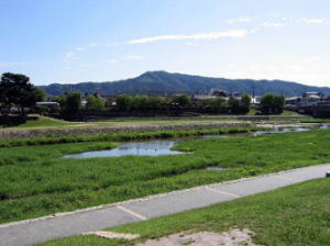 鴨川と高野川の合流する糺の森の三角州付近、鴨川に架かる出町橋(でまちばし)は、京都御所を出発した葵祭の行列が下鴨神社に向かう道筋にあたる。出町とは京の出口の意味という。 橋の周辺は、東山、大文字山の眺望がきき親水公園がある。 ◆歴史年表 古く、鴨川と高野川の合流部にある鴨川デルタ(三角州)は、「糺河原(ただす-がわら)」として知られた。 南北朝時代-室町時代、糺河原では勧進猿楽が催されている。 江戸時代-近代以前、付近で加茂川と高野川が合流し、中洲に板を渡した1本の長大な仮橋「今出川口橋」が渡されていた。また、個人所有の一本橋が架かり、橋銭を徴収していた。 近代、明治期(1868-1912)、今出川口にも、本格的な木造の橋が架けられ、「出町橋」と名付けられた。 1885年、鴨川洪水により出町橋が流出する。 1890年、府が橋を買い取る。 1918年、建築家・武田五一の設計により、旧出町橋の分割工事が行われる。「新出町橋(現在の出町橋)」と呼ばれた。9月、一つ上流に架かる葵橋が台風により一部が陥没する。新出町橋は一時期に「葵橋」と呼ばれた。旧葵橋は廃される。この頃、出町に私設市場が開設された。(『市場の沿革』) 1934年、室戸台風により橋の西詰にあった柳(樹齢60-70年)が折れ、伐採された。 現代、1954年、現在の橋が架けられた。出町橋に戻されている。 2018年、台風21号により、柳の木の幹半分が折れる。 ◆出町橋 現在の出町橋の架設年は、現代、1954年になる。 橋種は鋼橋、3径間連続鋼プレートガーター、橋長82.9m/83m、幅員12m/12.6m。路線名は柳通になる。 ◆出町界隈 出町橋の鴨川西岸には、安土・桃山時代、1591年に豊臣秀吉による御土居が築かれ、出入り口が設けられていた。現在残る桝形通という地名は、江戸時代中期、この御土居(寛文新堤とも)の出入り口(虎口)が桝の形だったことによるという。川岸には、堤防の強化をするために柳が植えられていた。高野川の東岸付近には、柳に因み「柳の茶屋」があった。 出町は、現在では河原町今出川付近のことをいう。河原町通が拡張工事される大正期(1912-1926)以前は、寺町今出川の大原口付近のことを指した。今出川口、出町口とも呼ばれた。江戸時代には、この旧出町の通りの東は行き止まりで、一度北へ上がり、東へ入って鴨川に出ていた。 ◆三角州 鴨川と高野川の合流点である出町三角州は、「糺河原」、「出町剣先」、「鴨川デルタ」などとも呼ばれる。 ◆鯖街道 出町橋西のたもとに「鯖街道口(さばかいどうぐち)」の碑が立つ。鯖街道(若狭街道)は、若狭の国(現在の福井県小浜)から、北前船で陸揚げされた魚、海産物などを九里半街道、若狭街道を経て京都まで運んだ道をいう。「魚道」の別称もある。 ただ、鯖街道という呼び名については、戦後になって使われた俗称とされる。古くより若狭から運ばれてきたのは塩であり、海産物(塩干しのむし鰈、小鯛)、ほかに、木炭、油粕、穀類、下駄、菜種などの特産品も運ばれていた。 若狭街道は、若狭からいくつもの道筋があった。たとえば、小浜市と高浜町から美山、京北、宇多野、鷹峯、上賀茂に通じていた西の道があった。さらに、京都だけではなく、奈良、飛鳥、丹波篠山などへも通じていた。平城宮跡から出土した木簡にも記録が残るという。千数百年以前に、すでに若狭との交易が始まり、道は海産物や塩のみならず大陸文化も伝えた。 鯖は滋賀県を経由し終点の出町柳まで18里(約80km)を、人手により運ばれた。若狭湾で早朝に取れた鯖は一塩され、熊川までは女性が運ぶ。さらに午後から、「街道稼ぎ」といわれた男たちが夜を徹して峠を越え、翌日の早朝に入洛した。10貫(37.5㎏)、15貫(56㎏)の荷を負縄一本で担ぎ、一昼夜のうちに運び入れた。 都に着く頃にはいい塩加減になっており、「若狭の一塩もん」は、塩鯖、刺鯖、鯖寿司などに加工された。 ◆鯖寿司 鯖寿司は、若狭の鯖と米どころ近江米により生まれる。酢と昆布でしめ、竹の皮で包んだ押し寿司であり、京都では、葵祭、祇園祭などのハレの日に食されてきた。 鯖寿司の始原は、弥生時代の「なれずし」にある。魚、獣肉、野菜などを米飯で乳酸発酵させ保存した。奈良時代には、近江に「フナずし」が生まれる。鯖寿司は、江戸時代に京都で生まれた。若狭の小浜より運ばれた塩鯖は、京都でさらに酢でしめて味を整えた。 ◆出町柳 鴨川東岸、出町柳付近は古くから広場の役割を担った。長徳寺付近では、西三条、柳原とともに米騒動(1918)の舞台になる。この時、鎮圧のために全国初の軍隊が出動する騒ぎになる。 橋の西詰には、商屋、餅屋、種苗屋などがあった。江戸時代後期、天保年間(1830-1843)創業という種苗店「タネゲン」はいまも店を開く。河原町通に面した餅屋「出町ふたば」(1895-)は、豆餅が名物になっている。 西詰の「枡形広場」には、近代、1895年に開業した京都電気鉄道の終点駅が、1901年に青竜町(出町柳西詰)まで延伸した。駅は昭和初期まであった。この枡形は
