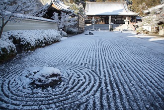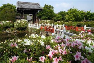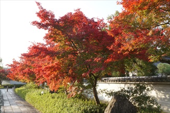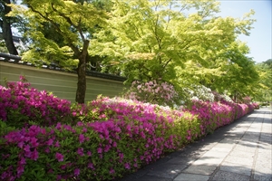 洛北岩倉の妙満寺(みょうまん-じ)は、東に比叡山の山容を望む地にある。「安珍・清姫の道成寺の鐘」ゆかりの寺として知られている。山号は妙塔山(みょうとう-ざん)という。 顕本法華宗(けんぽん-ほっけしゅう)総本山、本尊は釈迦多宝仏。 日蓮宗京都16本山の一つ。京都洛北・森と水の会。 ◆歴史年表 室町時代、1383年、日什(にちじゅう)が、六条坊門室町(下京区烏丸五条)の富商・天王寺屋通妙の寄付を得て、その屋敷内に法華堂を建立した。 1389年、室町坊門に、妙塔山妙満寺を建立する。天王寺屋通妙の帰依を受ける。以後、根本道場とした。 1395年、焼失し、綾小路東洞院北東に移転する。 1398年、日仁、日実による幕府諌暁(かんぎょう、諫め諭すこと)では、拷問にも屈せず、法華受持を時の3代将軍・足利義満に迫った。 応仁・文明の乱(1467-1477)で焼失する。その後、四条綾小路の間(下京区妙満寺)に移転した。 1532年、第105代・後奈良天皇の勅願所になる。 1537年の、叡山宗徒による「天文法華の乱」で焼かれ、一時、堺に逃れた。 1543年、旧地に再建されている。 1547年、綾小路堀川西に再建したともいう。 安土・桃山時代、1579年、安土・浄厳院で行われた法華経と浄土宗の宗論に敗れる。 1583年、羽柴秀吉の命により、京極銅駝坊(榎木町)に移転し、「寺町二条の妙満寺」(寺町二条下町)と親しまれる。当時は、14塔頭があった。 江戸時代、1608年、尾張熱田で浄土宗と対立する。強義折伏が徳川幕府の怒りを買い、徳川家康の命による江戸城での宗論になる。だが、その前夜に、27世・日経(にっきょう)は襲撃され、半死半生の身で当日、一言も発することが出来なかった。この「敗北」により投獄される。 1609年、日経と6人の弟子は、六条河原で耳鼻を削がれた。(「慶長法難」) 1628年、焼失する。 1633年、直末、孫末296カ寺があった。(「妙満寺末寺帳」) 1788年、天明の大火により焼失した。 1864年、蛤御門の変(禁門の変)の兵火で焼失する。その後、再建される。 近代、1870年、上知令により、寺領の大半を失う。 1945年、第二次世界大戦時の強制疎開により塔頭4院、境内地を失う。 現代、1968年、「昭和の大遷堂」により、旧地(中京区)から現在地(左京区)に移転している。 1970年、遷座落慶供養が行われた。 1973年、インドブッタガヤ型としては日本初という仏舎利塔が建立された。 2022年、春、松永貞徳が作庭したという「令和の雪月花の洛中三名園(三庭苑)」が公開になる。 ◆日什 南北朝時代の日蓮宗の僧・日什(にちじゅう、1332-1391)。男性。通称は玄妙阿闍梨(あじゃり)。陸奥会津(福島県)の生まれ。19歳で比叡山横川上智院の慈偏に師事し、出家し、玄妙と称した。38歳で比叡山三千の学頭になる。67歳で法華宗に改宗し、日什と改称した。当初は中山門流だった。関東、東海、京都での折伏伝道を行う。1489年、位僧都と「洛中弘法の綸旨」を北朝5代・後円融天皇の口宣(くぜん、口頭の勅旨)で受けた。将軍・足利義満への折伏は、効しなかった 一冊の書物も残さなかった。「経巻相承(きょうかんそうしょう)・直受法水(じきじゅほっすい)」といい、書物により、仏と日蓮の教えが誤解されることを懼(おそ)れた。釈迦牟尼仏が経文に説いた教えをそのまま受け継ぐことを掟にした。著『治国策』など。79歳。 ◆日経 室町時代-江戸時代の日蓮宗の僧・日経(にっきょう/にちきょう、1551-1620)。男性。字は善海、号は常楽院、常談義院。上総(千葉県)二ノ宮の生まれ。1608年、「慶長法難」では投獄され、1609年、出師6人とともに六条河原で耳鼻を削がれた。その後も各地で布教を続け、富山に没する。著『浄土日蓮宗論記録』など。61歳。 ◆松永 貞徳 室町時代後期-江戸時代前期の俳人・歌人・歌学者・松永 貞徳(まつなが-ていとく、1571-1654)。男性。幼名は小熊、名は勝熊、別号は逍遊、長頭丸、明心、延陀丸、延陀王丸、逍遊軒、五条の翁、花咲の翁など多い。京都の生まれ。父・連歌師・松永永種、母・藤原惺窩の姉。幼くして里村紹巴(じょうは)より連歌、九条稙通(たねみち)・細川幽斎より和歌、歌学を学ぶ。20歳頃、豊臣秀吉の佑筆(ゆうひつ、代筆)になる。1597年、朝廷より花咲翁の称を賜る。俳諧宗匠の免許を許され、「花の本」の号を得た。 1603年、林羅山、遠藤宗務らと古典公開講座に参加し『徒然草』を講じた。慶長・元和年間(1615-1624)、俳諧で知られる。慶長年間(1596-1615)末、三条衣棚の自宅に私塾を開き、庶民の子弟に教えた。私塾からは木下順庵、伊藤仁斎、林春斎、林守勝、貞室、西武(さいむ)らが輩出した。寛永年間(1624-1644)中頃、俳諧史上初の貞門を形成した。晩年、花咲亭(花咲の宿、下京区間之町通松原上ル西側稲荷町)に隠居した。俳書『新増犬筑波集』 、歌集『逍遊愚抄』 、歌学書『九六古新注』 など多数。83歳。 貞門派の始祖であり、近世初期地下(じげ)歌人歌学者の第一人者になる。俳諧(滑稽、笑い)を重視し、それまで和歌では使われなかった俳言(はいごん、俗語、日常語、漢語)を使う