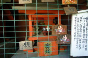 ◈脇に「宇賀神将(うがしんしょう)像」も祀る。「うがじんさん」と呼ばれ、体は蛇、顔は老人になっている。豊臣秀吉の顔を模したともいう。12年に一度の干支の巳年に開帳される。