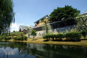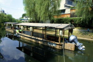 【参照】山門前には東濠川が近接している。観光船の十石舟の発着場がある。