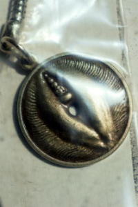 御守りの宝貝守りは、「古代大河の流れ」の中に、宝貝内上部に五輪塔(五大の空、風、火、水、地)が埋め込まれ、「水」の部分に梵字の「阿」が刻まれている。貝は開運、通貨、生命の根源に通じるという。開運、愛、平和の信仰がある。