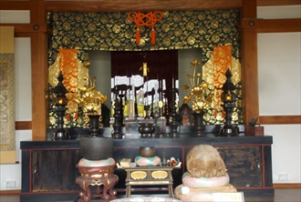 天龍寺境内、総門から入る参道の北側、中ほどに塔頭・弘源寺(こうげんじ)がある。 臨済宗天龍寺派、本尊は観世音菩薩を安置する。 天龍寺七福神めぐりのひとつ、2番、毘沙門天(三国伝来毘沙門天)を祀る。商売繁盛、入試合格の信仰がある。御朱印が授けられる。 ◆歴史年表 室町時代、1446年/1429年、幕府管領・細川持之が、玉岫英種(ぎょくしゅう えいしゅ)を開山として創建した。寺名は、持之の院号による。当初は、小倉山の麓(落柿舎の地とも)に位置していた。北は二尊院、南は亀山に及ぶ広大な寺領を有したという。 その後、幾度かの火災により焼失し、衰微した。 近代、1884年/1883年、末庵である維北軒(いほくけん)と合し、落柿舎の地より現在地に移る。寺号を弘源寺と改める。 ◆玉岫英種 鎌倉時代の僧・玉岫英種(ぎょくしゅう-えいしゅ、 ?-?)。詳細不明。天龍寺開山・夢窓国師(1275-1351)の孫弟子になる。弘源寺の開山になる。 ◆細川持之 室町時代前期-中期の武将・細川持之(ほそかわ-もちゆき、1400-1442)。通称は九郎、中務少輔、右京大夫。満元の子、子に勝元。清和源氏の一家系。1429年、兄の早世により家督を継ぎ、摂津、丹波、土佐・讃岐などの守護になる。1432年、管領になった。6代将軍・足利義教に追従した。1438年、永享の乱では鎌倉公方・足利持氏が幕府に背き討滅した。1441年、赤松邸で赤松満祐により義教が暗殺された嘉吉(かきつ)の変で、赤松邸から逃げた。義教に弾圧された人々を赦免し、義教の遺児・義勝を8代将軍として擁立し、満祐の討伐軍を派遣し播磨で討った。1442年、病により管領を辞した。 43歳。 ◆木像 江戸時代、1667年、京仏師・藤原種久作の「玉岫英種像」がある。 ◆毘沙門堂・毘沙門天 境内の毘沙門堂には、平安時代の毘沙門天立像(三国伝来毘沙門天)(重文)を祀る。身に甲冑、体を傾け、左手に宝塔、右手に檄(げき)を持つ。足元に赤鬼、青鬼を踏む。古く、武神として崇められた。 インドの仏師・毘首羯磨(びしゅかつま)の作という。像は、インド、中国を経て比叡山・無動寺、般舟院(はんじゅいん)に伝えられる。その後、玉岫により当寺に迎えられた。また、室町時代、1442年、玉岫が嘉祥寺より当寺に遷したともいう。天龍寺七福神めぐりの一つになる。 伏見人形の七福神は、伏見人形としては最大という。麩屋町の市村家に伝わった。 天上画は、日本画家の初代・藤原孚石(ふせき)筆による四季草木48面の絵がある。 堂正面の扁額は弘法大師筆という。 ◆建築 本堂は客殿形式になる。江戸時代、寛永年間(1624-1645)の造営による。正面中央には本尊・観世音菩薩、右側に開山の玉岫禅師木像、左側に開基・細川右京太夫持之の位牌を安置する。 柱に残る複数の刀傷跡は、幕末、1864年の蛤御門の変に際し、天龍寺に陣を敷いた長州藩兵が、血気に逸り試し斬りしたものという。 ◆庭園 枯山水式庭園の「虎嘯(こしょう)の庭」がある。かつて塔頭・妙智院が所有し、その後、当寺に移された。苔の築山、白砂、石が据えられている。西の嵐山を借景とし、山を彩る春の山桜、秋の紅葉の景色が望める。 虎嘯とは、「龍吟雲起、虎嘯風生」という『碧巌録九十九則』に因る。龍が声をあげると雲がわき、虎が唸ると風が生じる。「龍吟」とは、枯れ枝の間を抜ける風の音、「虎嘯」とは大地の響きを表すといい、禅の悟りの境涯を表すものという。 ◆文化財 「玉岫禅師画像」、「開基細川右京太夫持之画像」、その和歌、後水尾天皇和歌。 「十六羅漢像」。 京都四条派・竹内栖鳳(たけうち せいほう、1864- 1942)、一門(上村松園・西山翠嶂・徳岡神泉・小野竹喬ほか)による作品など。 ◆天龍寺七福神 天龍寺七福神めぐりの一つ、毘沙門堂に毘沙門天(三国伝来毘沙門天)を祀る。 天龍寺七福神めぐりは、節分(2月3日)に天龍寺の総門前、法堂前で福笹を受け、境内塔頭7か寺を巡る。七福神が開扉され、お札を授かり一年の幸福を祈願する。 三秀院(東向大黒天)、慈済院(水摺大弁財天)、弘源寺(三国伝来毘沙門天)、松厳寺(福禄寿)、妙智院(宝徳稲荷)、寿寧院(赤不動明王)、永明院(恵比寿)の7塔頭になる。 ◆墓 当寺の小倉山墓地には、向井去来の墓、西行法師ゆかりの井戸、小倉百人一首に因む100基の句碑歌碑(1988)もある。 ◆修行体験 市民座禅会(毎月第3日曜日17:30-20:00、坐禅・茶・法話・懇談)。 ◆年間行事 初寅(1月)、天龍寺七福神めぐり(節分、2月3日)。春秋に特別拝観。 *普段は非公開。 *年間行事は中止・日時・内容変更の場合があります。 *年号は原則として西暦を、近代以前の月日は旧暦を使用しています。 *参考文献・資料 『天龍寺』、『京都の禅寺散歩』、『京都・山城寺院神社大事典』、『京都・世界遺産手帳 天龍寺』、『京の福神めぐり』、「山城国葛野郡天龍寺の境内地処 と関係資料」、『京都の隠れた御朱印ブック』 、ウェブサイト「コトバンク」 ![]() ![]() ![]() ![]() ![]() ![]() ![]() ![]() ![]() ![]() ![]() ![]() ![]() |
