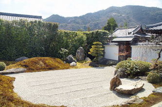 ![]() 枯山水式「虎嘯(こしょう)の庭」、山は嵐山 |