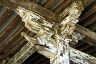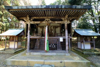 法界寺の北東に萱尾神社(かやお-じんじゃ)はある。かつて法界寺の鎮守社として祀られたともいう。(『雍州府志』) 祭神は、大己貴命(おおなむちのみこと、大国主命)。 ◆歴史年表 創建の詳細は不明。 飛鳥時代、655年、政治家・中臣(藤原)鎌足により社殿が造営されたともいう。 室町時代、応仁・文明の乱(1467-1477)により焼失した。 江戸時代、1652年/1650年、再興された。現在の本殿が建立される。(『宇治郡名勝誌』)。以後、法界寺の鎮守社、日野村の産土神として崇敬を集めた。 現代、1985年、本殿は京都市指定有形文化財に指定された。 ◆藤原鎌足 飛鳥時代の中央豪族・政治家・藤原(中臣)鎌足(ふじわら-の-かまたり、614-669)。男性。大和国(奈良県)の生まれ。父は中臣御食子、母は大伴智仙娘。妻は鏡王女。南淵請安の塾で儒教を学び、蘇我入鹿とともに秀才とされた。644年、祭官に就くことを固辞し、 摂津国三島の別邸に退く。645年、中大兄皇子(後の第38代・天智天皇)・石川麻呂らと協力し、飛鳥板蓋宮で蘇我入鹿を暗殺し、入鹿の父・蝦夷も自殺に追う。(乙巳の変)。この功により内臣に任じられる。646年、大化の改新を進めた中大兄皇子の側近として、左大臣・阿部倉梯麻呂、右大臣・蘇我倉山田石川麻呂らと対立した。647年、新冠位制度で大錦冠を授与された。649年、梯麻呂・石川麻呂の逝去・失脚後は勢力拡大し、654年頃、大紫冠に昇格した。669年、天智天皇より大織冠を授けられ、内大臣に任じられる。藤原の姓を贈られ、翌日に亡くなる。 最大氏族の藤原氏の始祖とされる。邸宅は「山科の陶原館(すえはらのやかた)」ともいわれている。56歳。 ◆建築 現在の本殿は、大型の一間社流造になる。江戸時代前期、1652年に、法界寺坊中、在所年寄、近在の氏子などにより再建され、その後も修理が繰り返されている。 軸部は丹塗り、柱上部・蟇股などは極彩色、板壁・軒裏は胡粉塗になっている。彩色装飾は、醍醐清滝宮本殿(重文)に通底するという。 現代、1985年に京都市指定有形文化財に指定された。 ◆燈籠 本殿正面に、キリシタン灯籠という一基が立つ。「マリア観音」とも伝えられ、丸く膨らんだ十字の下に立像が彫られている。 ◆末社 若宮社の祭神は若宮大神、柳社は柳大神、田中社は田中大神、稲荷社は稲荷大神を祀る。 ◆年間行事 元旦祭(1月)、とんど(1月)、春季千度祭(4月)、八朔祭(8月)、大祭(11月)、お火焚祭(12月)。 *年間行事は中止・日時・内容変更の場合があります。 *年号は原則として西暦を、近代以前の月日は旧暦を使用しています。 *参考文献・資料 『京都・山城寺院神社大事典』、『京都市の地名』 、ウェブサイト「コトバンク」 ![]() ![]() ![]() ![]() ![]() |