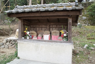 山科西野の岩屋寺(いわや-じ/いわや-でら)は、江戸時代の赤穂義士首領・大石良雄(内蔵助)の閑居跡として知られ、「大石寺」とも呼ばれている。山号は神遊山(しんゆうさん)金地院という。 曹洞宗永平寺派天寧寺の末寺、本尊は大聖(だいしょう)不動明王。 尼寺霊場の一つ。 ◆歴史年表 創建の詳細は不明。 平安時代、897年、第59代・宇多天皇の勅命により山科神社が創建されたという。その北に隣接する岩屋寺は、社の神宮寺として開かれたという。当初は天台宗に属し、「比叡山三千坊」の一つだったという。 その後、長間にわたり荒廃する。 室町時代、1571年、織田信長の焼討ちにより焼失した。 江戸時代初期、1656年、再興される。その後、再び衰微する。 1701年、旧7月、大石良雄の親戚で郷士・進藤源四郎が保証人になり大石は西野山村に移る。家屋は新築であり、永住を偽装したためという。 1702年、大石宅に同志が集まる。旧9月頃、江戸に出発した。 1703年、討入り成功後に大石は、邸宅、田畑などを岩屋寺に寄進したという。 その後、荒廃する。 嘉永年間(1848-1854)、京都町奉行・浅野長祚(ながよし)らの寄付を受け、堅譲尼(けんじょうに)が再興した。 文久年間(1861-1864)、現在の本堂が建てられた。 ◆堅譲尼 江戸時代後期の僧・堅譲尼(けんじょう-に、?-?)。詳細不明。女性。嘉永年間(1848-1854)、岩屋寺を再興した。 ◆大石 良雄 江戸時代前期の武士・大石 良雄(おおいし-よしお/よしたか、1659-1703)。男性。幼名は喜内、内蔵助(くらのすけ)。父・播磨国(兵庫県)赤穂藩の重臣・権内良昭。父没後、祖父・内蔵助良欽の家督を嗣ぐ。若くして赤穂藩の家老職になる。山鹿素行に軍学、伊藤仁斎に漢学を学んだ。1701年旧3月14日、主君・浅野長矩(あさの-ながのり、浅野内匠頭)は江戸城松之大廊下で、高家(こうけ)・吉良義央(きら-よしなか、上野介) に対し、遺恨による刃傷事件を起こした。将軍・徳川綱吉の意向により、長矩は即日切腹、浅野家はお家断絶、領地没収になる。義央に咎めはなかった。旧赤穂藩内には、義央への仇討を主張する急進派と、御家再興の穏健派の対立が起こる。城代家老・良雄は、藩内の急進派を抑え、幕府に義央処分、長矩の弟・大学による浅野家再興を嘆願した。1701年旧4月11日、良雄は、藩家中をまとめ赤穂城を明渡した。旧6月25日、赤穂・花岳寺で長矩の百カ日法要を行う。旧6月27日、山科西野山村に隠棲した。屋敷は一町四方だったという。山科には、大石家親族・進藤長之(近衛家家臣)の土地があり、支援があった。(山科閑居)。1702年旧1月11日、山科会議が行われる。旧2月15日、良雄宅に同志が集まり重要決定が行われた。4月15日、良雄は長男・主税(ちから)を残し、懐胎している妻・理玖(りく)と離縁する。理玖は、子・くう、吉千代を連れて但馬豊岡の実家に戻った。良雄は伏見・島原などに遊ぶ。旧7月、大学は広島・浅野本家に御預けになり浅野家再興は頓挫する。良雄は、京都・円山に同志を集め、吉良邸討入を確認した。旧8月1日、山科の閑居を引き上げ、四条道場塔頭・梅林庵(四条河原町)に移ったともいう。旧10月まで、旧赤穂藩士と連絡をとる。旧10月7日、江戸に向かう。旧12月14日未明、良雄ら総勢47人の赤穂浪士は、江戸本所(ほんじょ)・吉良屋敷に討入る。浪士は、義央の首を取り主君の仇を討った。その後、幕命により良雄は、熊本藩主・細川綱利の邸に預けられる。1703年旧2月4日、良雄以下46士は切腹を命じられ自刃した。浪士の遺骸は高輪・泉岳寺の長矩墓の傍らに葬られた。45歳。(赤穂事件)。 浪士は「義士」と称えられた。浄瑠璃、歌舞伎の題材になり、事件は「忠臣蔵」といわれた。 墓は高輪・泉岳寺(東京都)にある。 ◆進藤 源四郎 江戸時代前期-中期の武士・進藤 源四郎(しんどう-げんしろう、1647-1730)。男性。山科西野山の生まれ。父・進藤俊順、母・大石良勝女。大石内蔵助の父方の従兄弟。播州赤穂藩浅野家の鉄砲頭、知行高400石。妻との死別後、内蔵助の妻・理玖の姪・田村瀬兵衛の娘を後添えにした。内蔵助の娘・るりを養女にする。1701年、刃傷事件後、討入りの義盟に加わる。江戸の浪士との連絡係になる。討入りには加わらなかった。内蔵助に山科西野山村の住居を提供する。1702年、伯父・進藤八郎右衛門から、義盟よりの脱盟を説得され隠棲した。83歳。 ◆浅野 長祚 江戸時代後期-近代の武士・浅野 長祚(あさの-ながよし、1816-1880)。男性。江戸の生まれ。父・旗本・浅野長泰。浅野家の親戚になる。1839年、使番、1841年、目付。1842年、甲府勤番支配。1845年、先手鉄砲頭、浦賀奉行。1849年、相模湾にイギリス船マリナー号が停泊した件を奉行として処理する。1852年、京都西町奉行に転任になり、山陵調査し「歴代廟陵考補遺」を著す。1854年、禁裏造営掛、1858年、日米修好通商条約締結に際し、対公家工作を行う。大老・井伊直弼に疎まれ、小普請奉行に左遷され、1859年、免職になる。1862年、寄合から寄合肝煎、江戸北町奉行、1863年、作事奉