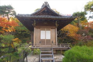 嵯峨野の竹林(歴史的風土特別保護区)を通る坂道を上りつめると、大河内山荘(おおこうち-さんそう)がある。 山荘は、小倉山南面の高台に建ち、京都市の市街地が一望できる。6000坪(2000万㎡)の広大な敷地が広がる。 大河内山荘からの景色は、「ミシュラン・グリーンガイド・ジャポン 1つ星観光地(嵯峨野・嵐山の竹林は2つ星)」(改訂第4版)に選ばれている。 ◆歴史年表 近代、この地はかつて、映画俳優・大河内傳次郎(1898-1962)の邸宅だった。 1931年、山荘建設は、当初は1000坪から始まった。大河内は熱心な仏教徒であり、参禅堂で仏間のある「持仏堂」から着手される。途中、戦争を挟み、亡くなるまでの約30年間にわたり、山荘、作庭が続けられた。 1932年、「滴水庵」が移築される。 1942年、「中門」、「大乗閣」が建てられた。 現代、1962年、大河内が亡くなる。その後、山荘は一般公開される。 2002年、国の登録文化財に指定された。 ◆大河内傳次郎 近代の映画俳優・大河内傳次郎(おおこうち-でんじろう、1898-1962)。本名は大辺男(おおべ-ますお)。福岡県の医業の家に生まれた。母方は中津藩儒者の家。実家没落後、兄を頼り、苦学して大阪商業学校(大阪商業高校)入学、1918年、上京し「明治屋」に就職した。「新国劇」創設者の一人・澤田正二郎に憧れ、1924年、堺市の民衆劇学校(後の第二新国劇)に入り役者になる。1926年、日活入社し、大河内傳次郎と改名した。その後、 1947年、新東宝、1949年、大映、1957年、東映に移籍する。当時の傾向映画「槍供養」(1927)を皮切りに、不朽の名作といわれる「忠次郎日記」3部作(1927)、 伊藤大輔監督「素浪人忠弥」、トーキーの「怪剣士・丹下左膳」(1933)は当たり役になる。黒澤明監督「姿三四郎」(1943)、内田吐夢監督「大菩薩峠」、最後の作品「赤い影法師」(1961)まで、生涯280本の映画に出演し、反逆ニヒリズムを演じた。 禅に傾倒した。1931年以来、京都の山荘に居を構え、映画出演料の大半を山荘建設の資金に注いだ。最期は母屋、大乗閣、寝殿の間で没した。64歳。 ◆笛吹嘉一郎 近現代の数寄屋師・笛吹嘉一郎(うすい-かいちろう、1898-1969)。父は表千家の数寄屋大工も務めた笛吹嘉三郎。「数寄屋造りの巨匠」といわれた。茶人であり、茶室も手掛ける。伝統建築学研究会会長に任じられた。71歳。 大河内山荘の建築も手掛ける。 ◆広瀬利兵衛 近代の庭師・広瀬利兵衛( ?-?)。詳細不明。大河内山荘庭園の作庭を、大河内傳次郎とともに30年にわたり続けた。 現在も、子孫の庭師が山荘庭園の維持に関わる。 ◆建築 建物は、大河内の構想により、数寄屋大工の笛吹嘉一郎が設計した。 ◈ 「持仏堂」(登録有形文化財)は、近代、1931年に建てられた。最初に造られた高床式になる。2畳の部屋と奥に1畳の仏間がある。二尊院、九条家の位牌堂を写した。正側面3方に刎(はね)高欄付切目縁、円柱を頭貫(かしらぬき)、内法長押(うちのり)で固め、台輪上に三斗組、中備蟇股(なかぞなえかえるまた)がある。 1間2間、入母屋造、桟瓦葺、妻入。 ◈ 「中門」(登録有形文化財)は、近代、1941年に建てられた。間口1.7m、親柱、控柱、冠木の軸部、弓形に曲げた垂木により、迫持(せりもち)状(曲面天井)の檜皮葺屋根。木造数寄屋風。 ◈ 母屋の「大乗閣」(登録有形文化財)は、近代、1941年に建てられた。寝殿造、書院造、数寄屋造、民家などのさまざまな様式を集めた意匠になっている。数寄屋風の書院、寝殿、如庵写しの小間の茶室、民家風の勝手と土間などを一体化させている。 木造、平屋建、檜皮葺一部茅葺、柿葺、瓦葺。 ◆茶室 茶室「滴水庵」「静雲亭」「月下亭」などがある。 ◈ 「滴水庵」(登録有形文化財)は、近代、明治期(1868-1912)に建てられ、1937年に移築された。2室の広間の茶室と土間のある水屋になる。 木造、平屋建、入母屋造、茅葺、瓦葺、柿葺、5間2間、南面西半に切妻造、土庇付。水屋は数寄屋風。 ◆庭園 小倉山南面に造営された回遊式借景庭園は、山の傾斜地の高低を巧みに利用している。西に嵐山、保津峡の渓谷も見下ろせる。東の遠景に比叡山、東山などの雄大な山並み、京都市街地も一望できる。 庭は、大河内の作庭により、庭師・広瀬利兵衛とともに、30年にわたり作庭した。大河内は、当時、長期保存が難しかった映画フィルムを念頭に入れ、それに反して「永く残る美」として作庭に傾注したという。 主庭は大乗閣の広い芝生に、かつてあった赤松、ミツバツツジの群生を生かし、桜、楓なども植栽されている。庭の景色は、経年とともに変化することを当初から想定していた。 茶室「滴水庵」の露地庭もしつらえられている。苔地に緩やかな曲線で描いた飛び石、楓が配置される。それぞれの建物、庭の間も、さまざま意匠で凝らした飛び石、歩道で結ばれる。足を進めるにつれ、趣の異なる足元の景色が変化する。「霰(あられ)こぼし」は、小さな自然石を丁寧に敷き詰めている。借景も、高度差、東西で全く違う変化が楽しめる。 この古典的な回遊式