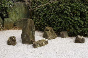 光明院(こうみょう-いん)は、東福寺塔頭のひとつであり、東福寺の南にある。作庭家・重森三玲の庭で知られ、「苔の寺」とも呼ばれている。 臨済宗東福寺派。 ◆歴史年表 創建、変遷の詳細は不明。 南北朝時代、1391年、金山明昶(きんざん-みんしょう、明祖禅師)の開創による。 近代、1868年、神仏分離令後の廃仏毀釈により荒廃する。 1911年、横幕滴泉(よこまく-てきせん)住持の入寺により再興された。20年以上にわたる托鉢が続けられ、現在の本堂が建立された。 1939年、作庭家・重森三玲により、方丈前に「波心の庭(波心庭)」が作庭された。 現代、1962年、重森三玲により「雲嶺庭」の作庭が完成する。 ◆金山 明昶 南北朝時代-室町時代中期の僧・金山 明昶(きんざん-めいしょう/みょうしょう、?-?)。男性。諡号は明祖禅師。詳細不明。大道一以の法嗣。明より帰国後、播磨・円応寺、淡路・安国寺、駿河・清見寺、但馬・宗鏡寺などを創建した。応永年間(1394-1427)、城崎・極楽寺を開基したという。 ◆重森 三玲 近現代の作庭家・重森 三玲(しげもり-みれい、1896-1975)。男性。本名は計夫。岡山の生まれ。1911年、15歳で茶道、華道を学ぶ。1914年、18歳で茶室・露地を設計する。1917年、日本美術学校で日本画を学び、生花、茶道を習得、文化・芸術、宗教・哲学にも関心をもつ。1922年、文化大学院の創設を企図する。1923年、関東大震災に被災し岡山に還る。1926年、フランスのミレーに憧れ、自ら三玲と改名した。1929年、京都に移る。1931年、日本花道芸術学園を設立する。1932年、日本庭園の研究団体「京都林泉協会」会長となる。華道草月流の創始者、勅使河原蒼風(1900-1979)らと生花の革新を唱え、1933年、「新興いけばな宣言」を起草した。1936年-1938年、全国の庭園の実測調査を行う。1949年、前衛的な生花の創作集団「白東社」を主宰し、前衛生花作家・華道家の中川幸夫(1918-2012)も参加した。1950年頃より、アメリカ合衆国の彫刻家、画家のイサム・ノグチ(Isamu Noguchi、1904-1988)と交流を深めた。78歳。 全国200あまりの作庭に関り、本格的に作庭した京都では、東福寺方丈庭園(1943)に始まり、京都林泉協会30周年記念の瑞峯院庭園(1961)、最後の作品は松尾大社庭園(1975)になった。1936年以来、独自に全国の庭園実地調査を行う。それらの結果をまとめた第一次調査『日本庭園史図鑑』(1939年完、全26巻)、1971年よりの第二次調査『日本庭園史大系』(1976年完、全35巻)が刊行されている。 ◆庭園 ◈ 方丈前の庭園(1150㎡)は、近現代の作庭家で庭園研究家・重森三玲の近代、1939年作による。池泉式の枯山水庭園で、「波心の庭(波心庭)」といわれる。「虹の苔寺」「東山の苔寺」とも呼ばれる。 白砂は海を表し、苔に配置された小石は波飛沫を表す。波心とは、禅語の「無雲生嶺上。有月落波心」に由来する。「雲は嶺上(りょうじょう)に生ずることなくんば、月の波心に落つる有り」。煩悩がなければ、月(仏心)は波に映るの意味という。 主に立石で構成され、大小75石配されている。苔の低い築山と州浜型の白砂の枯池、3組の石組(三尊石組)がある。それぞれの3つの石柱が、釈迦三尊、阿弥陀三尊、薬師三尊を表す。さらに、3組の三尊石が庭全体としても三尊石を構成する。また、三尊石の主石から放射状に、すべての石が並べられている。これは光明(後光)が放たれる様を石で表したという。石は滋賀県南郷の洗堰産による。 苔庭の美しさから、「虹の苔寺」とも呼ばれる。州浜は、平安時代の毛越寺(岩手県平泉)、また天龍寺の影響が見られるという。枯山水式に州浜を取り入れた初めての例とされる。州浜に囲まれた白砂は海を表し、海洋を表した初例という。州浜の緩やかな曲線と法面には、古典的な手法である飛沫に見立てた栗石(丸い小石)が打ち込まれている。 庭園背後(東)には全国から集められたサツキ、ツツジの大刈り込みがあり、これらは雲紋を表している。 石庭は、本堂、書院、茶室各室のいずれの方角からも鑑賞できるような石組に凝らされている。さらに、東の高台雲上には、茶亭「蘿月(らげつ)庵」が建つ。高台からも庭園全体を俯瞰することが考慮されている。茶室それ自体が月を意味し、丸窓は月が昇る姿を象る。茶室には露地がある。 ◈ 山門入り口付近に、重森三玲が現代、1962年作庭した前庭「雲嶺庭」がある。白砂、苔地、青石の三尊石、鶴島、青石の破片の敷石、インカ風の敷石などで構成されている。 ◆茶室 高台の雲上には茶亭「蘿月(らげつ)庵」(1963)が建てられ、庭を見下ろす。重森三玲の設計による。禅語の「雲は嶺上に生ずることなく、月は波心に落つること有り」に因むとものという。 窓、壁、障子すべてが月を表し、土壁に白い線で大きな円が描かれている。庭園より眺めると、東の空に月昇る様を表す。露地がある。 ◆文化財 ◈「固山一鞏墨蹟 清源寺家訓 観応三年(1352年)六月廿七日」1巻 (重文)、南北朝時代、1352年がある。京都国立博物館寄託。 ◆桜楓 春に桜、ツツジ、サツキ、秋に