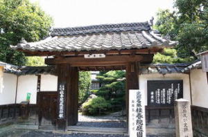 桂春院 (けいしゅんいん)は、妙心寺塔頭の一つであり、境内の北東に位置する。 臨済宗東海派、本尊は薬師如来像を安置する。 御朱印が授けられる。 ◆歴史年表 安土・桃山時代、1598年、武将・津田秀則により、見性院(けんしょういん、見性庵)として創建されたともいう。開祖は妙心寺73世・水庵宗掬(すいあん-そうきく)による。 江戸時代、1625年、秀則の没後は無住になる。 1631年/1632年、美濃の豪族・石河壹岐守(いしこ-いきのかみ)貞政が、水庵宗掬を開祖として創建したともいう。本堂が再建される。この際に、近江・長浜城から茶室・書院などが移築されたともいう。(寺伝)。貞政は、亡父・光政の50年忌の追善供養のために見性院を得る。中興開祖・桂南守仙を請じて創建し、「桂春院」に改めたという。(『妙心寺史』)。院号は両親の法名「天仙守桂大禅定門」の「桂」、「裳院妙春大姉」の「春」に由来し「桂春院」にしたという。勧請開祖は、桂南の師・心華霊明禅師(水庵宗掬)による。(寺伝、「寺院明細書」)。以後、石河氏の菩提所になった。現在の方丈、庫裡、書院、茶室などが建てられた。 ◆津田秀則 安土・桃山時代-江戸時代前期の武将・津田(織田)秀則(つだ-ひでのり、1581-1625)。美濃岐阜城主・織田信忠の次男。キリシタン大名・織田秀信は異母兄。1596年頃、キリスト教に入信し、洗礼名はパウロと称した。1600年、関ヶ原の戦では、兄・秀信と共に西軍に与し、美濃岐阜城に籠城する。戦後、豊臣家を頼り大坂城下に移る。豊臣家滅亡により京都に移った。晩年は剃髪し、宗爾と称した。44歳。 ◆水庵宗掬 室町時代後期-江戸時代前期の僧・水庵宗掬(すいあん-そうきく、1533-1612)。美濃(岐阜県)鏡島城主石川光成の二男。養徳院2世、妙心寺73世。心華霊明禅師とも称した。79歳。 ◆桂南守仙 安土・桃山時代-江戸時代前期の僧・桂南守仙(けいなん-しゅせん、1589-1664)。石河(石川)光成の二男。1631年/1632年、桂春院の中興開山になる。75歳。 ◆石河貞政 安土・桃山時代-江戸時代前期の武将・石河(石川)貞政(いしかわ/いしこ-さだまさ、1575-1657)。石川杢兵衛光政の子。幼くして豊臣秀吉に馬廻衆として仕えた。1600年、徳川家康の会津征伐に従軍する。同年、関ヶ原の戦いで戦功をあげる。豊臣秀頼に仕えた。1614年、片桐且元の暗殺の命を受けるが、高野山に上り剃髪した。大坂の役(1614-1615)で徳川方として戦い、その後旗本になる。晩年は、京都の北野今小路に住み、茶道に親しんだ。83歳。 本人、歴代の墓は桂春院にある。法名は「桂春院殿前壱州大守安叟禅石大居士」。 ◆狩野山雪 安土・桃山時代-江戸時代前期の画家・狩野山雪(かのう-さんせつ、1589-1651)。名は光家、別号は蛇足軒、桃源子、松柏山人など。肥前(佐賀県)に生まれる。父は千賀道元。一家で大坂に移り、16歳で父没後、狩野山楽の門人になる。山楽の娘婿になり、狩野氏を継いだ。1629年頃、山楽とともに「当麻寺縁起絵巻」を制作した。1631年、山楽に代わり妙心寺・天球院の障壁画を手掛ける。1632年、林羅山の依頼で、林氏学問所先聖殿「歴聖大儒像」を描く。1635年、山楽没後京狩野2代を継ぐ。1639年、清水寺の「繋馬図絵馬」、1647年、九条家の命により東福寺蔵の伝明兆筆「三十三観音像」中の2幅を補作、法橋に叙せられる。同年、泉涌寺舎利殿の天井画雲竜図を制作した。1649年、何らかの理由により投獄され、没した。63歳。泉涌寺に葬られた。 400人の画人伝『本朝画史』(1691)は草稿段階で山雪が亡くなり、後に子の狩野永納が引き継いで刊行した。 ◆仏像 方丈に本尊「薬師如来像」を安置している。 ◆建築 ◈「方丈」は、江戸時代、1631年に建立された。内部中央に仏間、室中の間がある。単層、入母屋造、桟瓦葺。 「桂春院」の額は黄檗僧・天間独立(独立性易、1596- 1672)の筆による。 ◆庭園 方丈の東南に築山があり、三方に四つの庭がある。庭は国の史跡名勝(1931)に指定されている。 ◈方丈北の坪庭「清浄(しょうじょう)の庭」は、西に井筒を配し、紀州産の石、巨石による枯滝、白砂で渓流を表している。 ◈東庭「思惟(しい)の庭」は、方丈下の窪地を利用して造られた苔庭になっている。茶室「既白庵(きはくあん)」の外露地にもなっており、飛石は「侘の庭」に続く。低地には七尊石、茶の水井戸、蒼竜池が配されている。十六羅漢石、礎石を座禅石に見立てた石も配置されている。 ◈南庭「真如の庭」は、低地に造られている。縁先から南に低くなる斜面がある。方丈手前、犬走りツツジの刈り込み、さらにその先に段差があり杉苔庭が広がる。その先の段差をツツジ(サツキ)の大刈り込みで隠している。杉苔の中には、椿、紅葉などの低木が植えられ、さらに小さな石組が七五三形式に配置されている。これらは「十五夜満月」を表しているという。 ◈方丈の北に書院前庭がある。茶室「既白庵(きはくあん)」の露地庭の「侘(わび)の庭」は、作庭者不詳という。江戸時代初期の作庭とみられ、小堀遠州の高弟・玉淵坊(玉淵