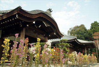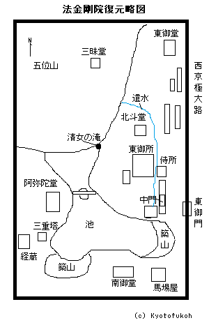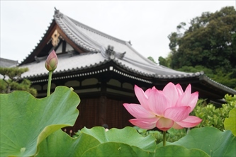 双ヶ岡(ならびがおか、双ヶ丘)の南東、五位山(ごいさん)の南に法金剛院(ほうこんごう-いん)はある。山号を五位山(ごいざん)という。 世界中の蓮を境内に集めており「蓮の寺」ともいわれている。四季を通じて「花の寺」としても知られる。 京都には数少ない律宗・唐招提寺に属する。本尊は阿弥陀如来坐像。戌年、亥年生まれの守護仏の信仰がある。 阿弥陀如来(三回忌)は京都十三仏霊場めぐりの第10番札所、関西花の寺第13番霊場。 ◆歴史年表 平安時代初期、830年頃/天長年間(824-834)、この地には、右大臣・清原夏野(きよはら-の-なつの)の山荘が営まれていた。830年、第53代・淳和天皇を招いている。 834年、嵯峨上皇(第52代)が臨幸し詩宴が催される。夏野の妻・葛井庭子、子・滝雄らが叙爵されている。 837年、夏野の没後、寺に改められ「双丘寺(ならびがおかでら/そうきゅうじ)」と称した。境内には珍花奇花が植えられ、「花園」の地名の由来になったという。第52代・嵯峨天皇、第53代・淳和天皇、第54代・仁明天皇などの行幸が相次ぐ。(『日本紀略』) 847年、仁明天皇は、遊猟に際して内山に登る。景勝地であったため、山に従五位下を授けたことから、以後、山は「五位山」と呼ばれるようになる。 858年/857年、第55代・文徳天皇の勅願により大伽藍が建てられる。定額寺に列せられ、寺号は「天安寺」に改められた。858年、10月、文徳天皇没後、追善菩提の法儀が執り行われる。山陵は、天安寺近くに営まれた。以後、寺には僧80人を常住させたという。 879年、第57代・陽成天皇は、応天門事件で失脚した大納言・伴善男の荘園を没収し、当寺に施入れした。以後、 寺運隆盛になる。 974年/994年、宝蔵を焼失する。以来、次第に荒廃する。 1129年、9月、第74代・鳥羽天皇の中宮・待賢(たいけん)門院は、仁和寺に御堂建立のために、境内を占わせたところ天安寺跡に決まる。(『長秋記』) 1130年、待賢門院は、「仁和寺の御堂」として復興した。修理大夫・藤原基隆が造営を行う。養父で寵愛を受けた白河法皇追善のためであり、寺号も「法金剛院」に改めた。仁和寺・覚法法親王を導師として、盛大な落慶法要が行われる。境内には池、滝があり、御堂、東岸に女院の御所が建てられた。(『中右記』『長秋記』)。10月、西岸に阿弥陀堂(3間4面、檜皮葺)が建てられる。待賢門院は晩年をこの地で過ごした。再建時の境内は現在地の北、北東、南、南東にも広がり、現在の2倍を超える境内地を有していた。 1133年、待賢門院は徳大寺法眼・静意に命じ、滝を5、6尺余り高くした。(『長秋記』) 1135年、北斗堂が建てられた。(『百錬抄』) 1136年、三重塔、八角経蔵が建つ。(『百錬抄』) 1139年、3月、南御堂(9間4面)、11月、三昧堂(1間4面)が建つ。(『百錬抄』)。丈六阿弥陀坐像・等身阿弥陀坐像8体が安置されていたという。 1142年、待賢門院は院で落飾し、真如法と号した。 1145年、8月、待賢門院は三条高倉邸で亡くなり、遺言により三昧堂(法華堂)下(現在の五位山東山麓中腹、花園西陵)に葬られた。 1158年、大修理が行われる。 1160年/1158年、上西門院も生母・待賢門院を慕い入寺する。 1172年/1171年、上西門院(統子内親王)により東御堂(阿弥陀堂、1間4面)が建立され、周丈六の阿弥陀仏を安置する。 1181年、東御所が焼失した。(『吉記』)。その後、衰微する。 鎌倉時代、1189年、上西門院統子が亡くなり、東御堂(現在の花園東陵)の傍らに葬られる。寺運は衰微する。 1276年/1282年、円覚(導御)が奈良・唐招提寺より入寺し再興する。中興の祖になる。以後、八宗兼学の道場、融通念仏の根本道場になった。 1316年、円覚の徳行により厨子入十一面観世音菩薩を造立している。 室町時代、応仁・文明の乱(1467-1477)により焼失した。 安土・桃山時代、1586年、天正大地震により被災した。 江戸時代、朱印地65石を有し、塔頭・亭子院(ていじいん)があった。 1605年、慶長地震で被災した。 1617年/1619年、泉涌寺長老・宝囿照珍(ほうゆう-しょうちん)和尚により、本堂、経蔵、鐘楼などが再建された。 1695年、亭子院(ていじのいん、下京区)は、法金剛院内に子院として移された。 近代、奈良・唐招提寺を例外とし、律宗寺院はすべて真言宗に所轄された。 1868年、亭子院は廃絶している。 1899年頃、京都鉄道山陰線開通に伴い、境内が二分され南部分を失い、以後は縮小した。 1900年、律宗として独立した。 現代、1964年以来、仁和寺所有の双ヶ丘の観光開発を巡り紛糾する。最終的には京都市が買収し、景観保全される。 1968年、丸太町通の拡幅工事により、本堂、地蔵院を移築、釣殿、仏殿(収蔵庫)が新造された。庭園の発掘復元、整備も行われる。 1970年、本堂が建立された。地蔵堂が現在地に移された。庭園を発掘し復元される。 1971年、庭園が名勝指定になる。 1996年、JR花園駅周辺整備工事に伴い駅南で発掘調査が行われた。池跡、三重塔跡の基壇が発見された。 ◆清原夏野 奈良時代-平安時代前期の貴族・漢学者・政治家・清原夏野(きよはら-