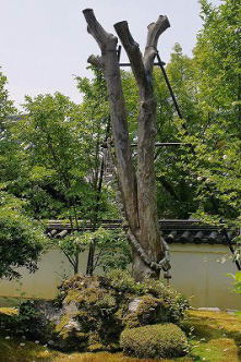 妙心寺塔頭の一つ、妙心寺境内一角にある宿坊の東林院 (とうりん-いん)は、「沙羅双樹(さらそうじゅ)の寺」とも呼ばれている。 臨済宗妙心寺派、本尊は観世音菩薩。 京の通称寺霊場37番、沙羅双樹の寺。 ◆歴史年表 室町時代、1531年、武将・細川氏綱(ほそかわ-うじつな)が、父・細川高国(三友院殿)の菩提のために建立した。寺名は、当初、三友院と称し、上京清蔵口の細川家邸宅付近にあった。この三友院が前身になる。 1556年、武将・山名豊国(やまな-とよくに)が開基になり再興した。中興開山は直指宗諤(じきし-そうがく)による。妙心寺山内に移され、東林院と改められた。以来、山名家の菩提寺になる。 江戸時代、1626年、山名豊国が亡くなり、山名家菩提所として維持される。 1832年、堂宇が大破する。その後、山名家により本堂、庫裏が再建された。 現代、2004年、沙羅の大木が枯死する。 2016年、食堂(じきどう)が建てられる。 ◆細川 氏綱 室町時代後期の武将・細川 氏綱(ほそかわ-うじつな、1514?-1564)。男性。右京大夫。通称は二郎。父・細川尹賢(これかた)、細川高国の嫡子・稙国が早世し養子になる。1543年、高国は細川晴元に対抗し、晴元派・三好長慶(みよし-ながよし、範長)に敗れ、自刃した。氏綱は、その残党に擁立され和泉で挙兵した。長慶に敗れる。遊佐長教(ゆさ-ながのり)らと結び、三好政長(宗三)と戦う。1548年、政長との確執から晴元に反旗を翻した長慶に擁立され、1549年、江口の戦い以後、管領・晴元、前将軍・足利義晴、将軍・足利義藤(義輝)を京都から追う。1552年、上洛し、義輝と和解し右京大夫、室町幕府最後の管領になる。長慶の傀儡でしかなく、1559年、長慶により淀城に監視付きで居城になった。同城で没した。 50歳。 ◆直指 宗諤 室町時代中期-後期の僧・直指 宗諤(じきし-そうがく、?-?)。詳細不明。男性。細川高国の猶子。亀年禅愉の法嗣、妙心寺51世。1462年、妙心寺・如是院(にょぜいん)、1556年、妙心寺・東林院を中興する。 ◆山名 豊国 室町時代後期-江戸時代前期の大名、武将・山名 豊国(やまな-とよくに、1548-1626)。男性。初名は元豊、法名は禅高。父・但馬国大名・山名豊定、母・幕府管領・細川高国の娘の次男。1560年、父没後、敵対した兄・豊数、その家老・武田高信に鳥取城を追われ、但馬守護山名氏の祐豊の庇護を受ける。兄没後、山中幸盛ら尼子氏残党軍の支援を得て布施家(因幡山名氏)の家督を継承した。1578年より、織田信長と誼を通じる。1573年、毛利氏の武将・吉川元春に攻められ降伏した。1580年、羽柴秀吉の侵攻に籠城していた鳥取城より降伏した。1581年、秀吉と共に旧家臣が籠もる鳥取城攻めに従軍し、陥落させる。御伽衆の一人。1592年より、朝鮮出兵に肥前・名護屋城まで同行した。有職故実、和歌、茶湯など多方面の文化に精通した。著「むもん法話集」「無文全集」(全16巻 )がある。79歳。 墓は妙心寺・東林院(右京区)にある。 ◆山田 無文 近現代の僧・山田 無文(やまだ-むもん、1900-1988)。男性。俗名は長次郎、号は太室、通仙洞。愛知県の生まれ。河口慧海(えかい)に師事し、1925年、臨済宗大学(現・花園大学)仏教学科卒後、円福寺・天竜寺雲水になり禅を修得した。1949年、妙心寺霊雲院住持、1949年-1978年、花園大学学長、1978年-1982年、妙心寺派管長を歴任した。著『むもん法話集』『無文全集』(全16巻 )など。88歳。 禅文化研究所所長を務めた。平易な説法で知られ、戦没者慰霊、ハンセン病療養所の慰問などにも尽力した。 墓は妙心寺・東林院(右京区)にある。 ◆庭園 枯山水式の本堂前庭「大庭園」は、白砂と石組、苔地、植栽によりなる。水琴窟(一壺天)も据えられている。 庭には、樹齢20年ほどの木をはじめ、10本ほどの沙羅(7-8m)が植えられている。かつては、庭の中央に樹齢300数十年という沙羅の大木があり、15mほど伸びた枝は庭全体を覆っていたという。だが、現代、2004年に枯死した。その後、沙羅の樹を中心とする庭に変えられた。 沙羅(ナツツバキ)は、ツバキ科ナツツバキ属の落葉高木で、別名はシャラノキ(娑羅樹)といい、6月に白い花をつける。朝に咲いて、夕方には散る一日花であり、青い苔地の落花は、儚さの象徴にたとえられる。仏教三大聖木(菩提樹、無憂樹)のひとつに数えられる。 『平家物語』冒頭に、「祗園精舎の鐘の声、諸行無常の響きあり。娑羅双樹の花の色、盛者必衰の理をあらはす。おごれる人も久しからず、唯春の夜の夢のごとし。たけき者も遂にはほろびぬ、偏に風の前の塵に同じ」とある。この無常観を表した「沙羅双樹」も、実は沙羅の樹とみられている。 なお、釈迦入滅の際に、臥床の四辺にあったという娑羅双樹とは別種で、娑羅双樹はフタバガキ科の常緑高木、原産国はインド。春に白い花を咲かせ、落花することはなく、良い香りを放つ。 ◆両細川の乱 家督争いに端を発する「両細川の乱」(1509-1532)では、高国と細川澄元・晴元・三好氏ら阿波勢との攻防が長期にわたって繰り返されている。 高