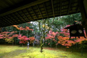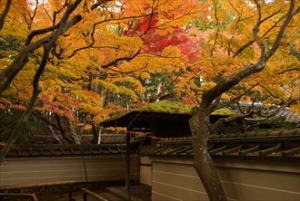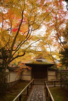 大徳寺塔頭の一つ高桐院(こうとう-いん)は、大徳寺境内西北にある。「楓の庭」で知られる。 清源院など5庵があり、高桐院派と称され、北派輪住で護持された。 臨済宗大徳寺派。本尊は釈迦如来像。 「ミシュラン・グリーンガイド・ジャポン 1つ星観光地」(改訂第4版)に選ばれている。 ◆歴史年表 創建、変遷の詳細は不明。 安土・桃山時代、1601年/1602年、細川忠興(三斎)が、父・幽斎の菩提所として建立した。開山は忠興の叔父・玉甫紹琮(ぎょくほ-じょうそう)による。以後、細川家の菩提寺になる。忠興の戒名の「松向寺殿前三議三斎宗立大居士」より、当初は「松向寺」と呼ばれたという。 江戸時代、1613年、玉甫の没後、その塔所になる。2世に賢谷宗良(けんこく-そうりょう)が就く。 1625年、清巌宗渭(せいがん-そうい)が大徳寺に入り、高桐院3世になる。 慶安年間(1648-1652)、清巌は大仙院寮舎を移築し、子院・祥林軒を建立した。 近代、1868年以後、神仏分離令後の廃仏毀釈により、子庵は破却され、什物が散逸する。高桐院客殿(本堂)も取り壊された。 明治期(1868-1912)末-大正期(1912-1926)、官僚・細川護立の寄進により現在の客殿が再建される。 現代、1971年、住職・松山剛山により、苔庭に改める。参道なども整えられた。 ◆玉甫 紹琮 室町時代後期-江戸時代前期の臨済宗の僧・玉甫 紹琮(ぎょくほ-じょうそう、1546-1613)。男性。俗姓は三淵、諡号は大悲広通禅師、別号は半泥子。山城(京都府)の生まれ。父・三淵伊賀守晴院、細川幽斎の異兄弟に当たる。大徳寺・古溪宗陳の法嗣。1586年、大徳寺130世。1588年、豊臣秀吉の命により古溪宗陳に代わり総見院2世になる。68歳。 高桐院(北区)に塔された。 ◆細川 幽斎 室町時代後期-江戸時代前期の武将・歌人・細川 幽斎(ほそかわ-ゆうさい、1534-1610)。男性。通称は万吉、与一郎、諱は藤孝(ふじたか)、別号は玄旨。藤孝、兵部大輔、法名を幽斎玄旨。父・足利幕臣・三淵晴員、母は将軍・足利義晴の側室(清原宣賢の娘)の次男、実父は義晴の4男ともいう。子に細川忠興(ただおき)。1539年、義晴の命で伯父・細川元常の養子になる。1546年、13代・義輝(よしてる)(義藤)の一字をもらい藤孝という。1553年、義晴、義藤の近江亡命に同行する。1554年、元常の死に伴い家督を相続した。1565年、将軍・義輝暗殺後、その弟・一条院覚慶(義昭)を大和興福寺より救出近江甲賀郡へ導く。1568年、織田信長の援助を得て、義昭上洛に成功した。1573年、義昭が信長に追われ、信長家臣になり西岡(長岡)を得る。長岡姓を称した。1580年、明智光秀とともに丹波、丹後平定の功により、信長より丹後一国を与えられた。宮津に居城した。1582年、本能寺の変で、姻戚・明智光秀の誘いを断わり、剃髪し嫡子・忠興に譲り、丹後田辺城に移り、隠居した。1583年、豊臣秀吉より西岡を与えられる。1586年、秀吉の九州攻め、1590年、小田原攻めに加わり、1592年、文禄の役で肥前・名護屋、薩摩などに赴く。1600年、関ヶ原の戦で徳川家康方に付き、石田三成方に攻められ田辺城に籠城した。古今伝授の廃絶を憂慮した第107代・後陽成天皇の勅命で和睦、生還する。家集『衆妙集』、著『百人一首抄』など多数。77歳。 足利義晴・義輝・義昭に仕え、織田信長、豊臣秀吉、徳川家康に重用された。有職故実、書道、千利休に茶を学ぶ。古典学者、歌人でもあり、古今伝授を三条西実枝(さねき)から受けた。二条派の正統を継承し、近世歌学の祖と称された。門下に烏丸光広、中院通勝、松永貞徳らがいる。 南禅寺・天授庵(左京区)に葬られる。 ◆細川 忠興 室町時代後期-江戸時代前期の大名・細川 忠興(ほそかわ-ただおき、1563-1646)。男性。幼名は熊千代、與一郎、号は三斎、法名は宗立(そうりゅう)、越中守。京都の生まれ。父・長岡藤孝(細川幽斎)、母・沼田上野介光兼の娘の長男。足利義輝の命により細川輝経の養子になる。1577年、織田信長に従い、雑賀(さいか)一揆に初陣する。1578年、信長の嫡子・信忠より一字をもらい忠興と名乗る。1579年、明智光秀の娘・玉(たま、細川ガラシャ)と結婚した。1580年、丹後宮津を与えられる。1582年、本能寺の変で、義父・光秀に誘われたが羽柴 (豊臣) 秀吉に従う。父と共に剃髪して弔意を示した。秀吉は玉の殺害を命じたが、忠興は玉を離別し味土野に幽閉した。後に許されて再び妻を迎える。1585年、従四位下侍従に任じられ、羽柴姓を許された。1589年、秀吉は幽斎と忠興に改めて丹後国を安堵した。1590年、小田原征伐に加わる。1593年、朝鮮に出陣、1596年、越中守になる。1598年、秀吉の死後、三男忠利を人質に出し、徳川家康に接近した。1600年、関ヶ原の戦で家康に属した。妻・玉は石田三成から人質として大坂入城を求められたが応じず、大坂玉造(たまつくり)の邸で自刃した。戦後、その功により、豊前、豊後を与えられ中津城に入る。1601年、小倉城を築き移った。1620年、病気で家督を3男・忠利譲り、中津に移り落飾して三斎宗立と号した。1632年、忠利の肥後入国に伴